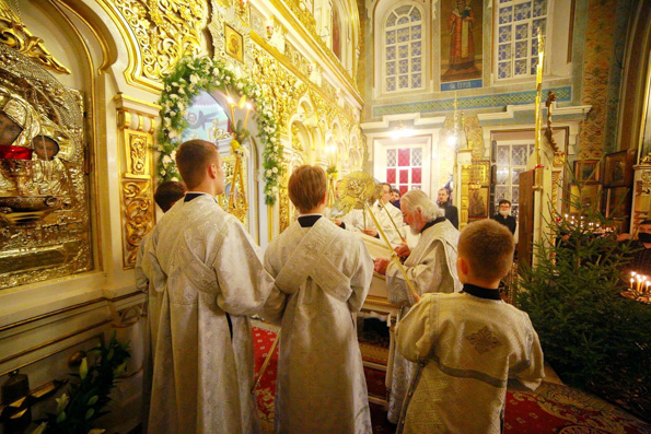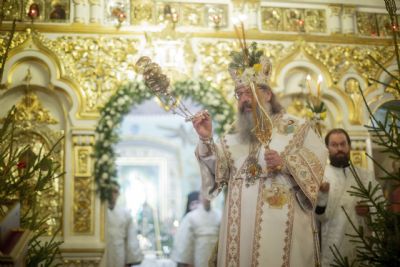 Накануне вечером правящий архиерей возглавил всенощное бдение в Петропавловском соборе города Казани.