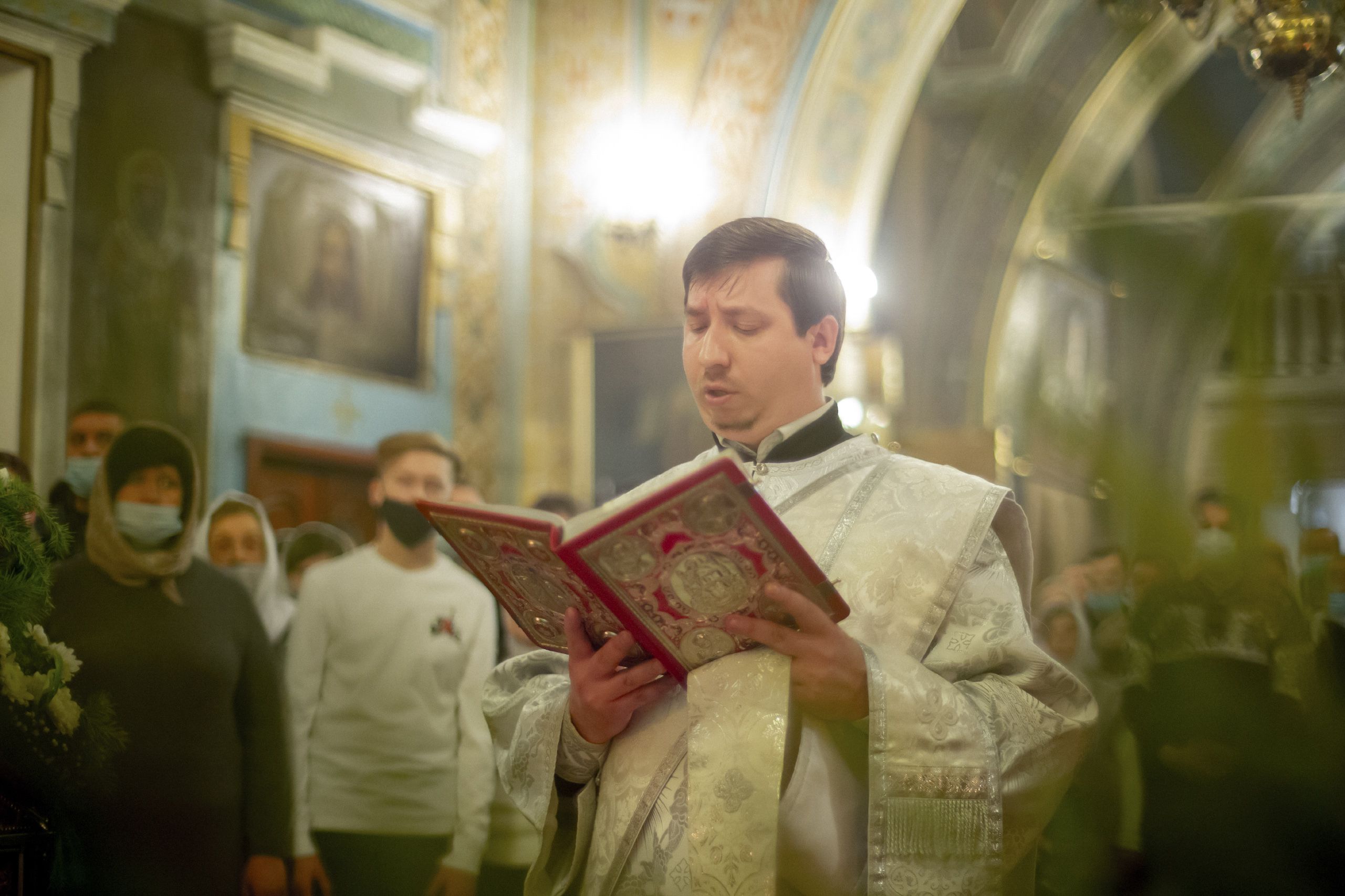 Богослужебные песнопения исполнялись смешанным хором кафедрального собора под управлением Николая Беляева.