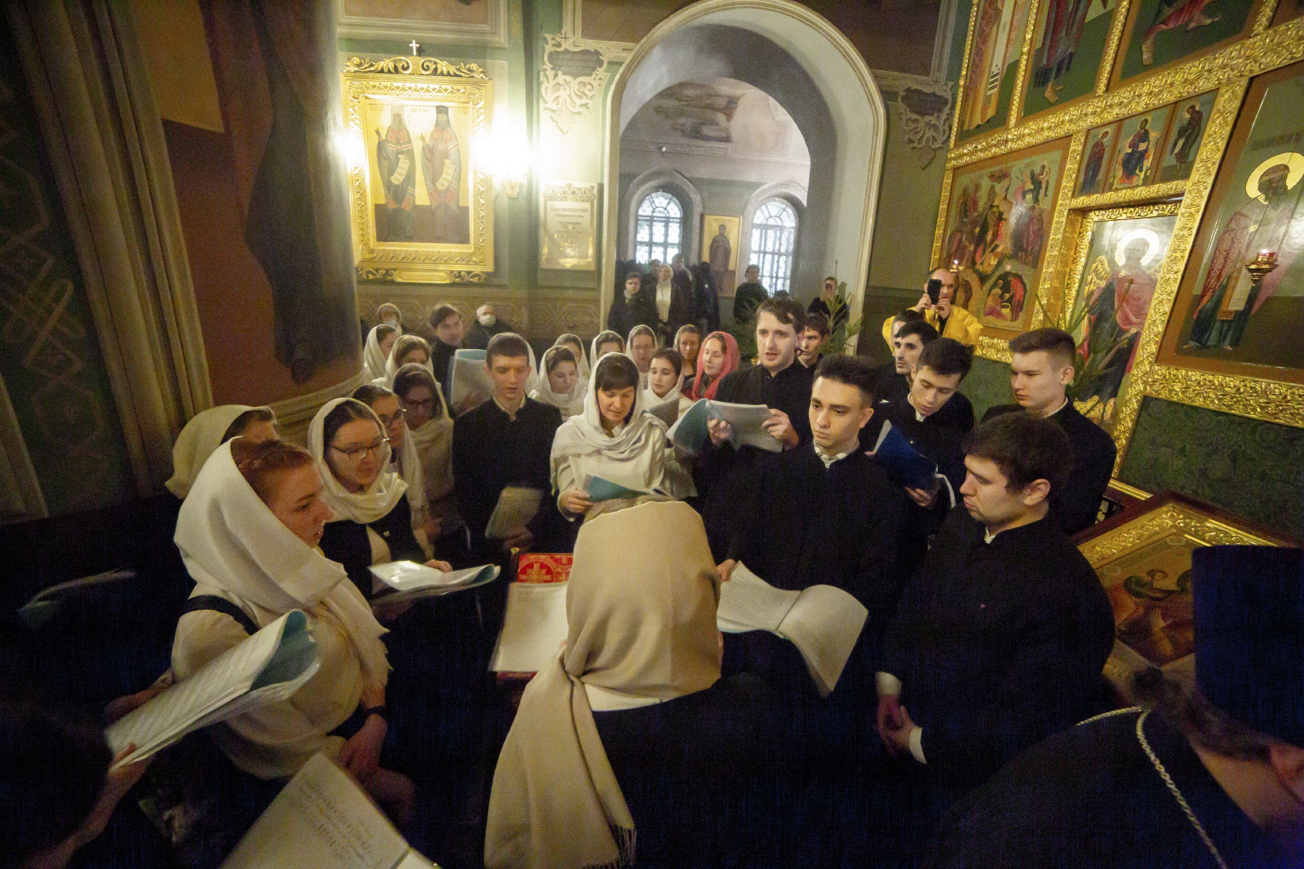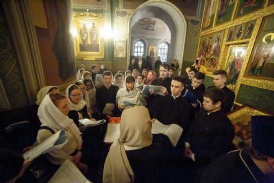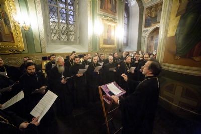 Песнопения исполнялись тремя хорами — недавно созданным хором духовенства Казанской епархии под управлением протоиерея Иоанна Барсукова, архиерейским мужским хором под управлением Дениса Рогова и смешанным хором Казанской духовной семинарии под управлением Ксении Савочкиной и Полины Минеевой.