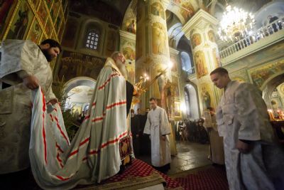 За праздничным богослужением молились священнослужители епархии, семинаристы, сотрудники епархиального управления, прихожане.