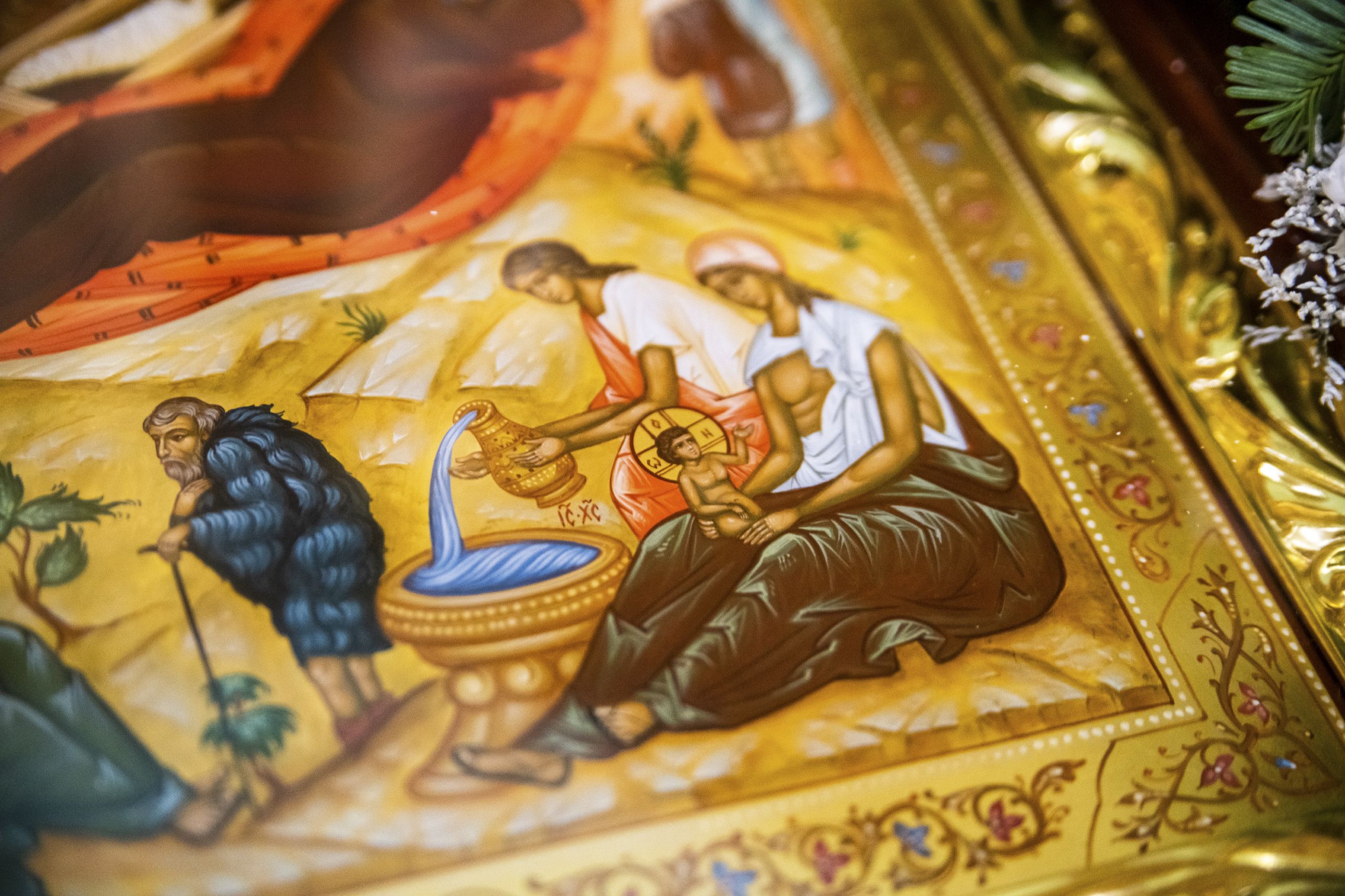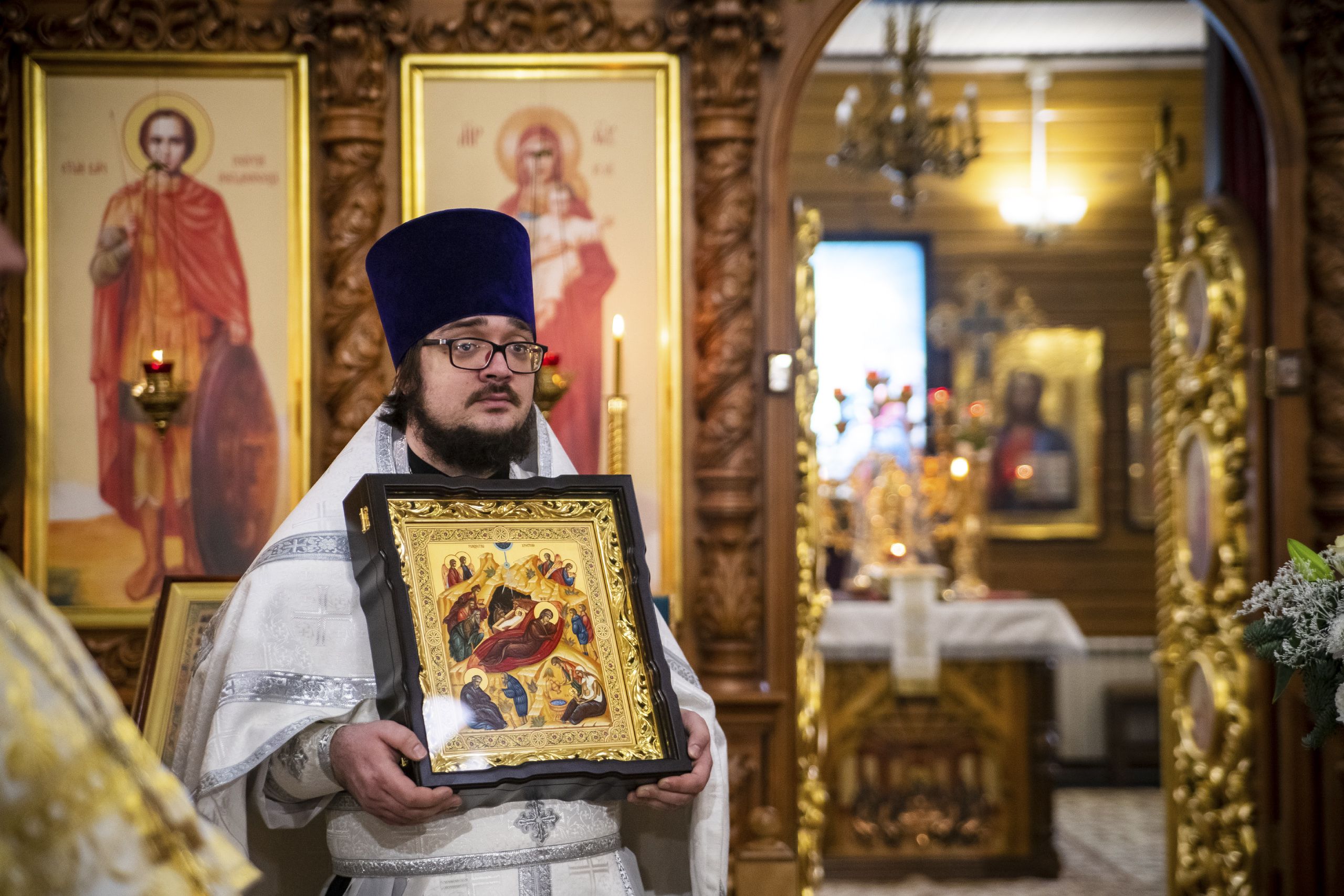Затем к Его Высокопреосвященству с приветственным словом обратился протоиерей Владимир Самойленко. На молитвенную память о первом посещении прихода от лица духовенства и прихожан настоятель церкви преподнёс владыке Кириллу икону Рождества Христова.