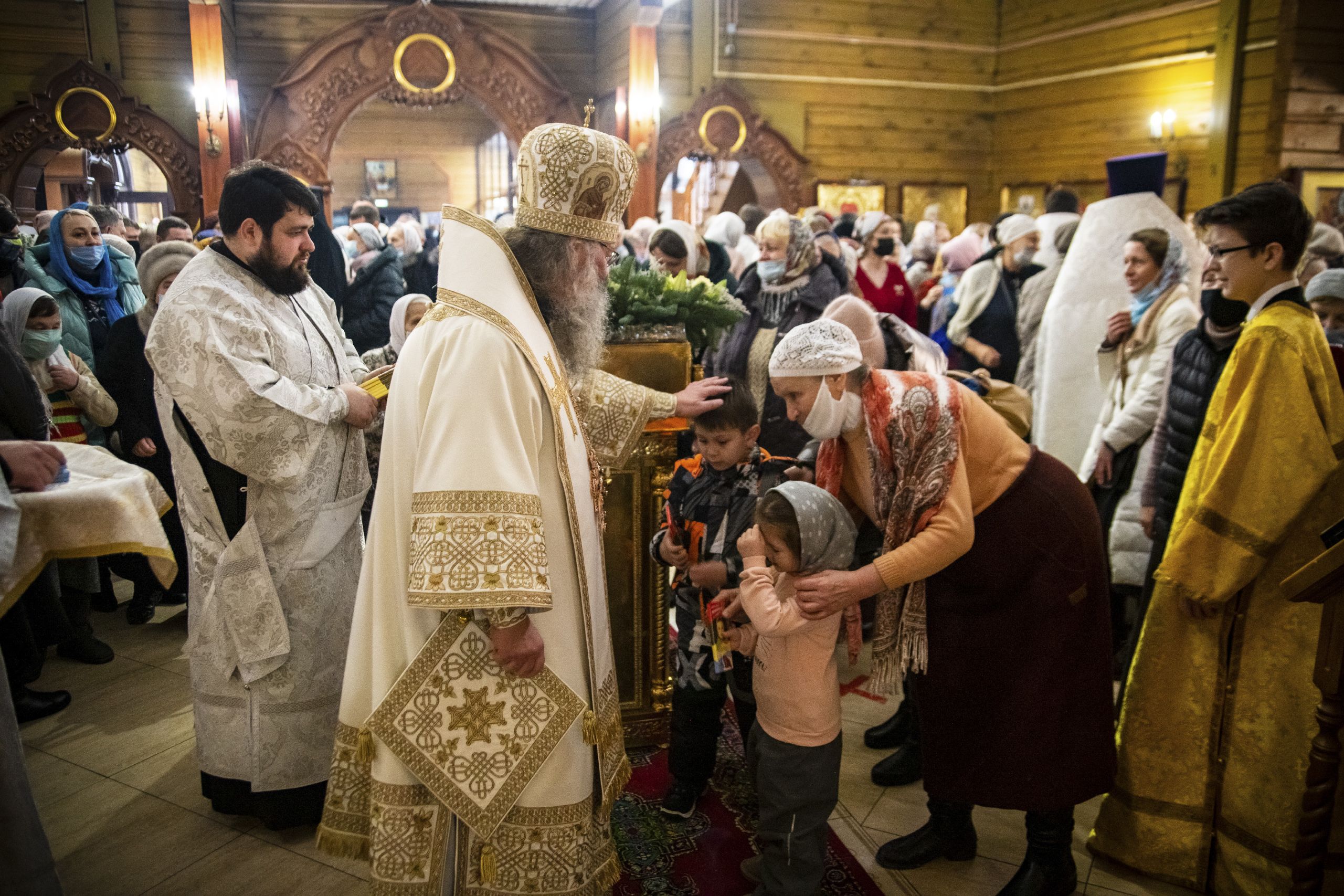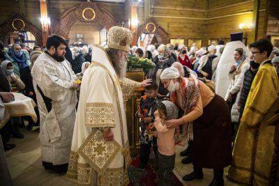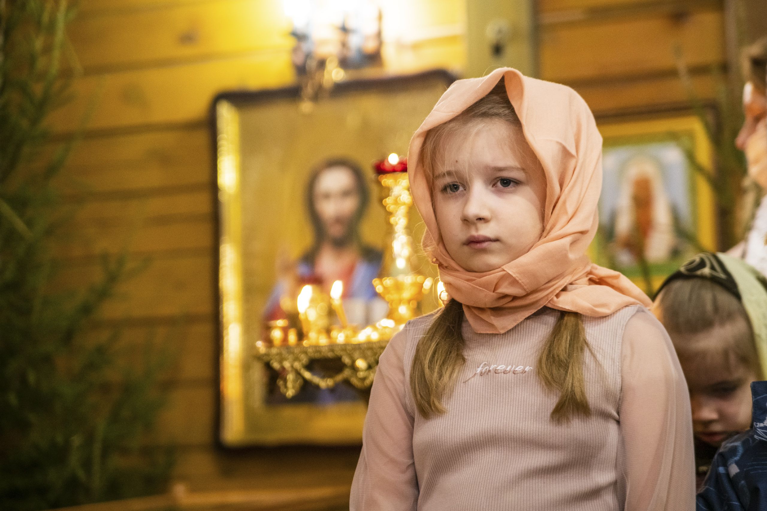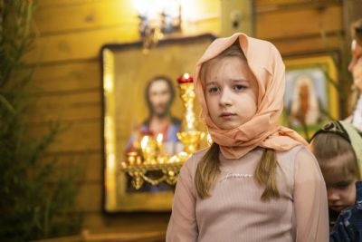 В храме правящего архиерея встретили дети — учащиеся приходской воскресной школы. Они пропели тропарь Рождества Христова и колядку и преподнесли владыке Кириллу цветы.