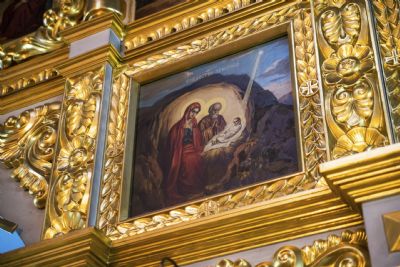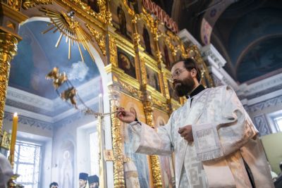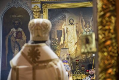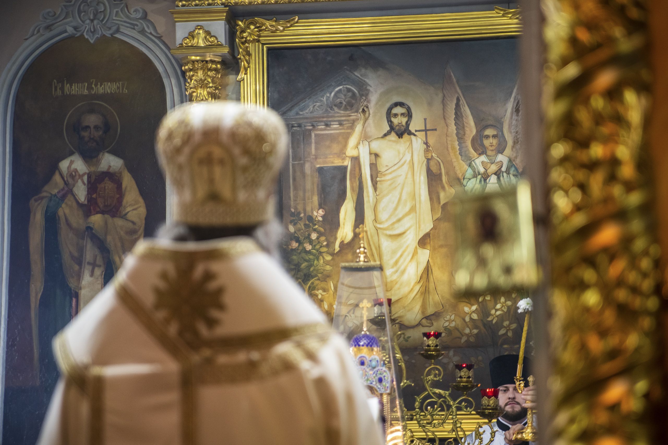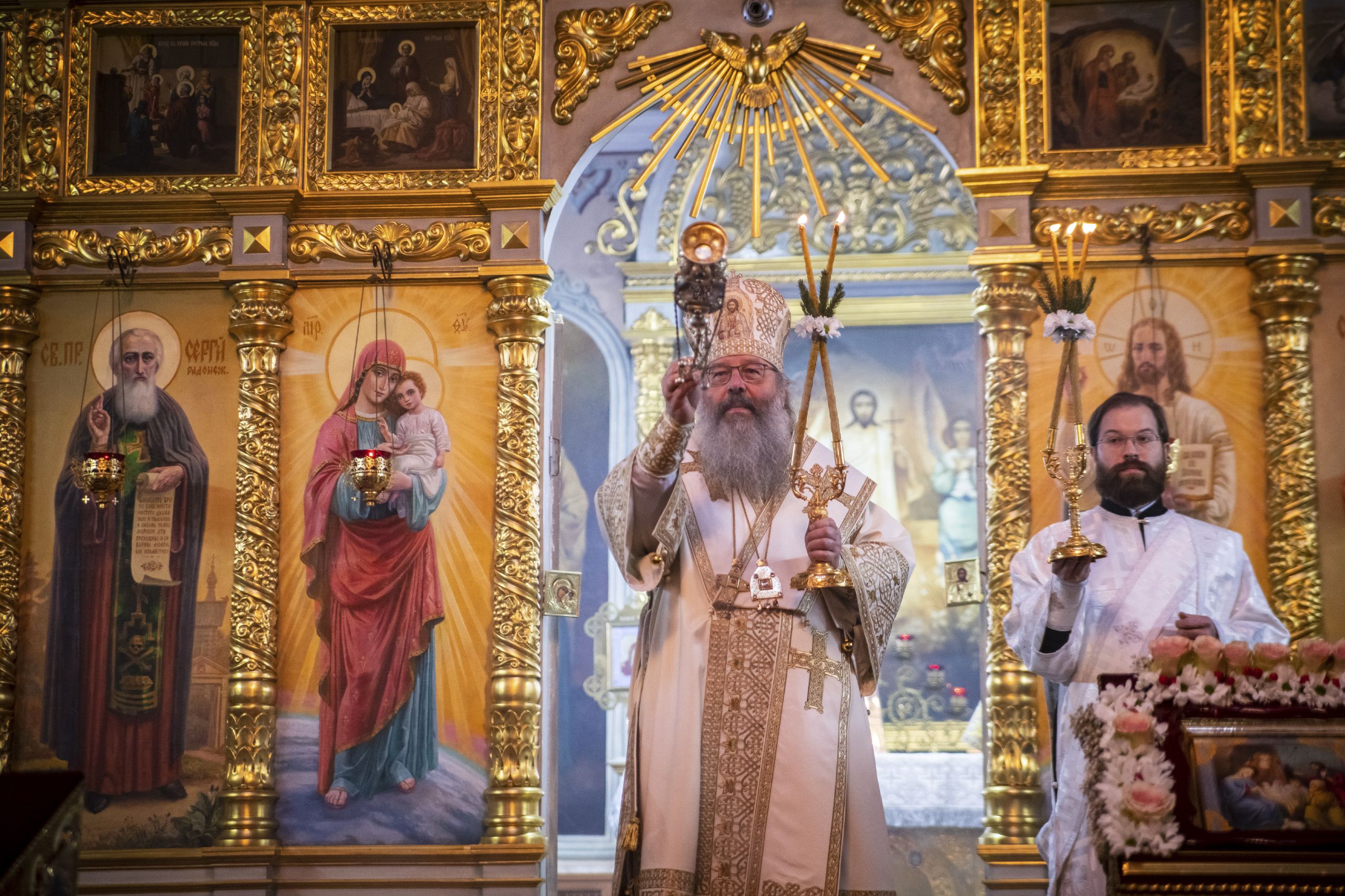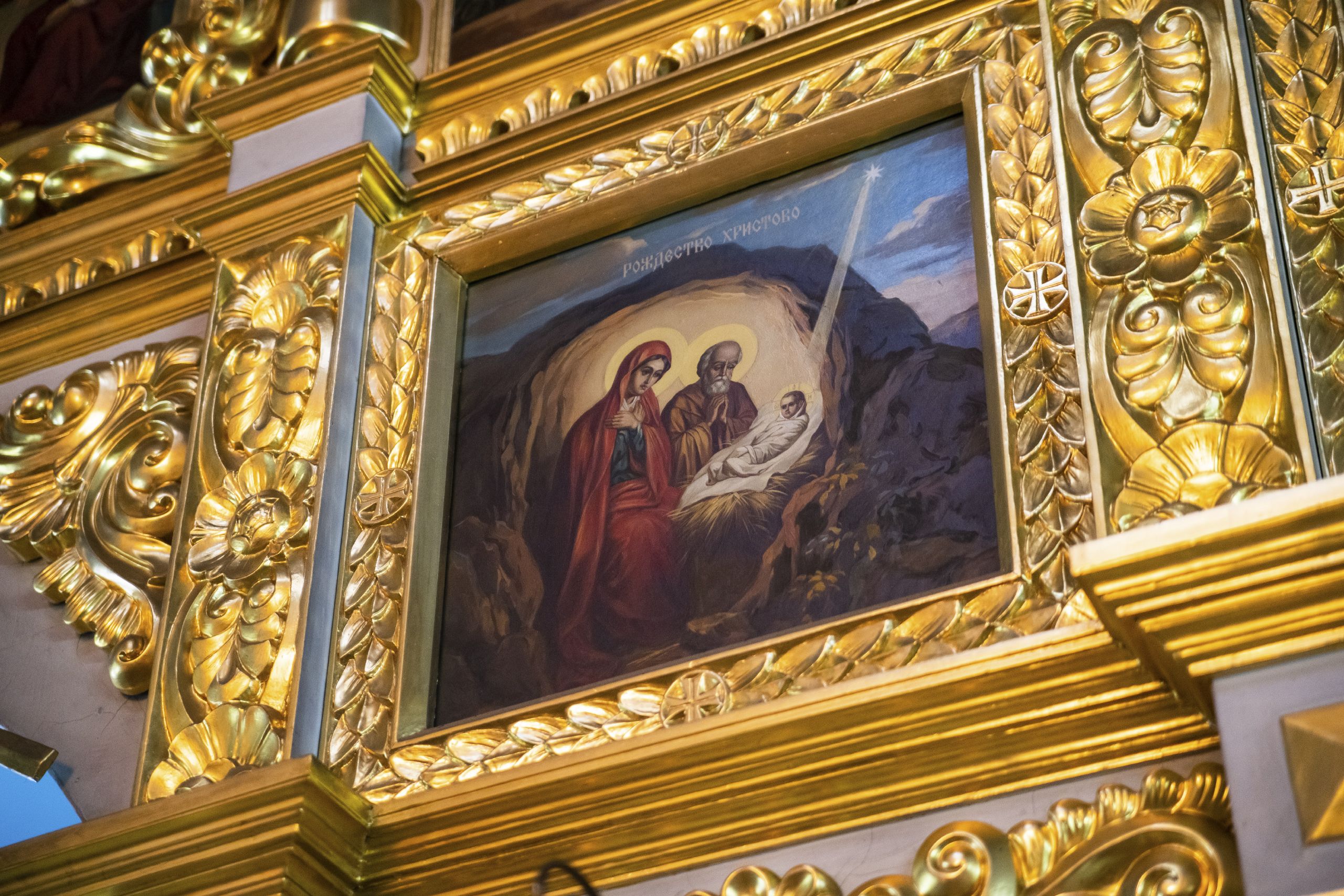 После отпуста Литургии архипастыри и духовенство пропели тропарь, кондак и величание праздника Рождества Христова. Глава митрополии окропил верующих святой водой.