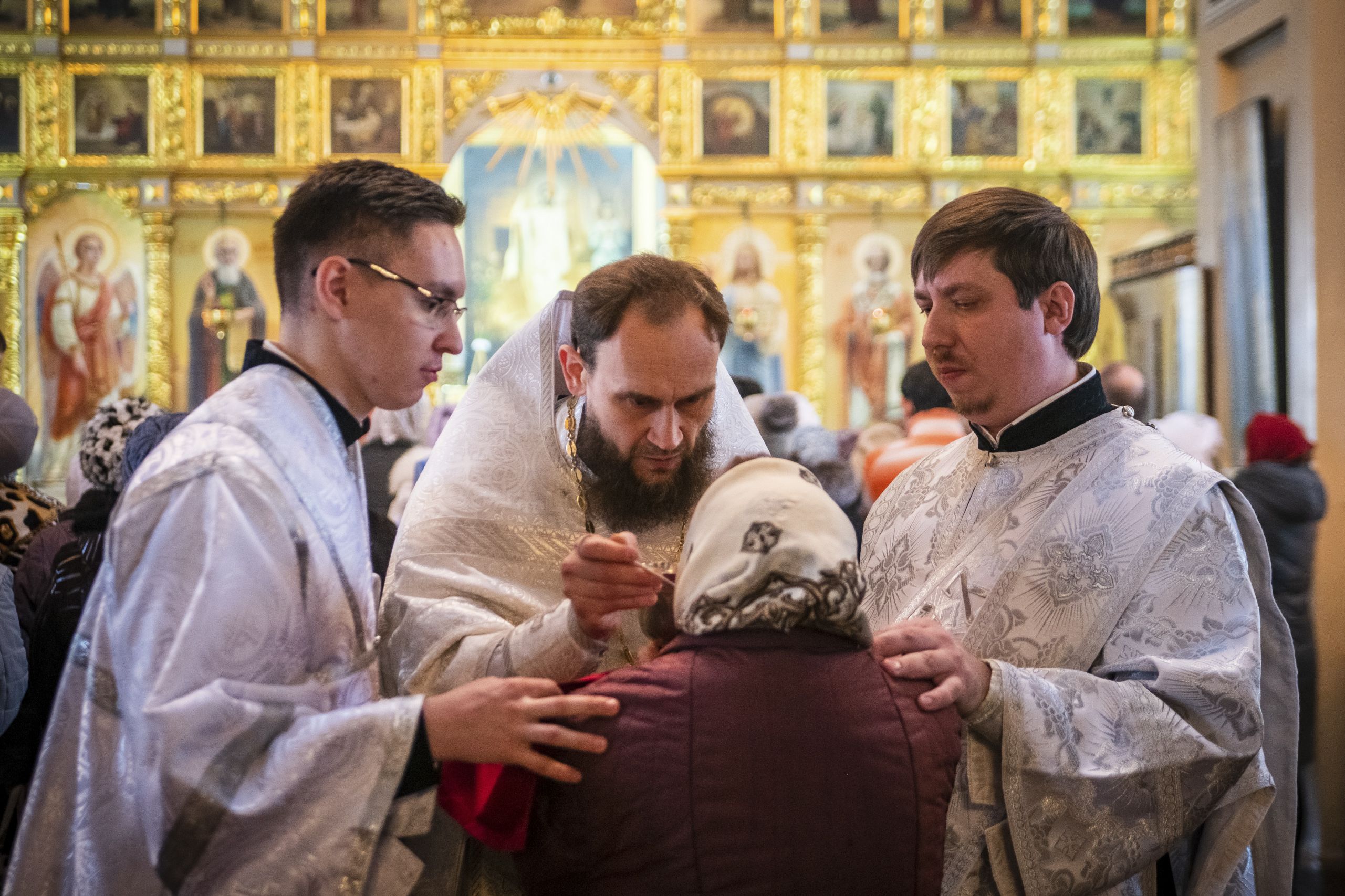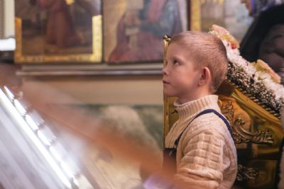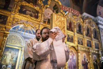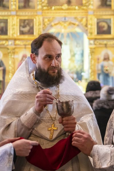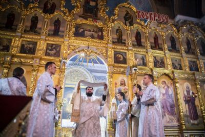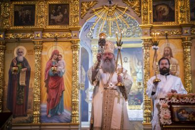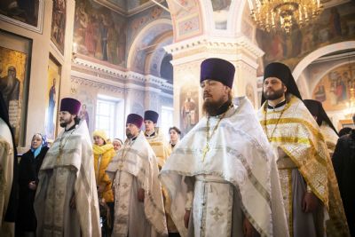 Богослужебные песнопения исполнил архиерейский смешанный хор под управлением Натальи Королёвой. За богослужением молились многочисленные прихожане. Проповедь по запричастном стихе произнёс иеромонах Николай (Страхов).