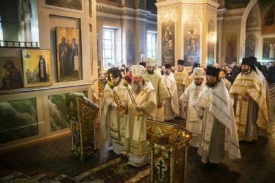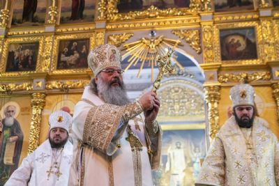 В свою очередь, митрополит Кирилл поздравил духовенство и мирян с празднованием Рождества Христова и обратился к верующим со словом проповеди. На молитвенную память о почившем митрополите Феофане он преподнёс владыке Игнатию белое архиерейское облачение приснопамятного архипастыря.
