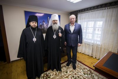 В рамках визита митрополит Кирилл посетил Чистопольское епархиальное управление. Дмитрий Иванов рассказал Его Высокопреосвященству о проектах, которые реализуются Чистопольской епархией при поддержке администрации района.