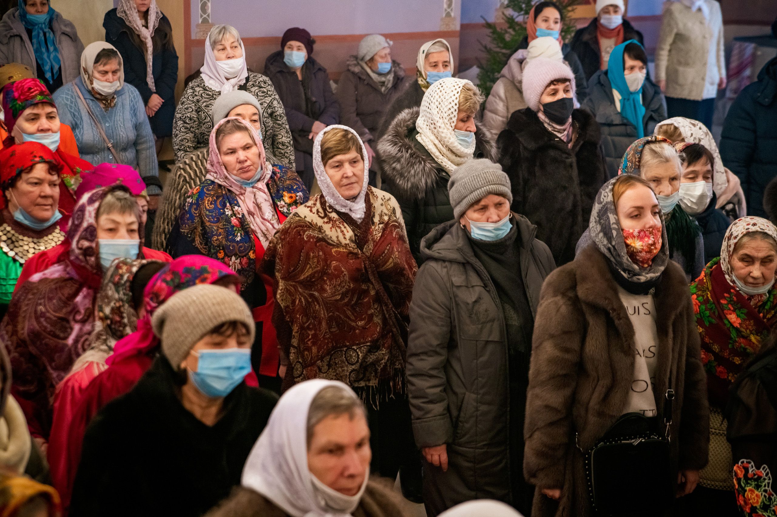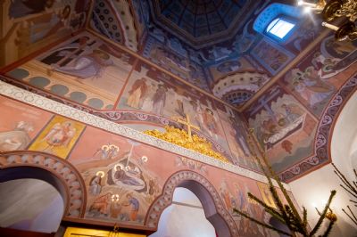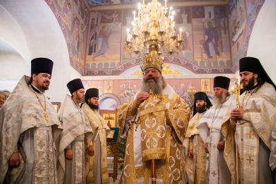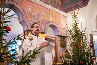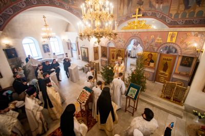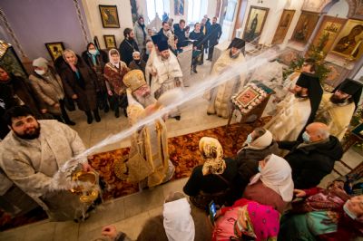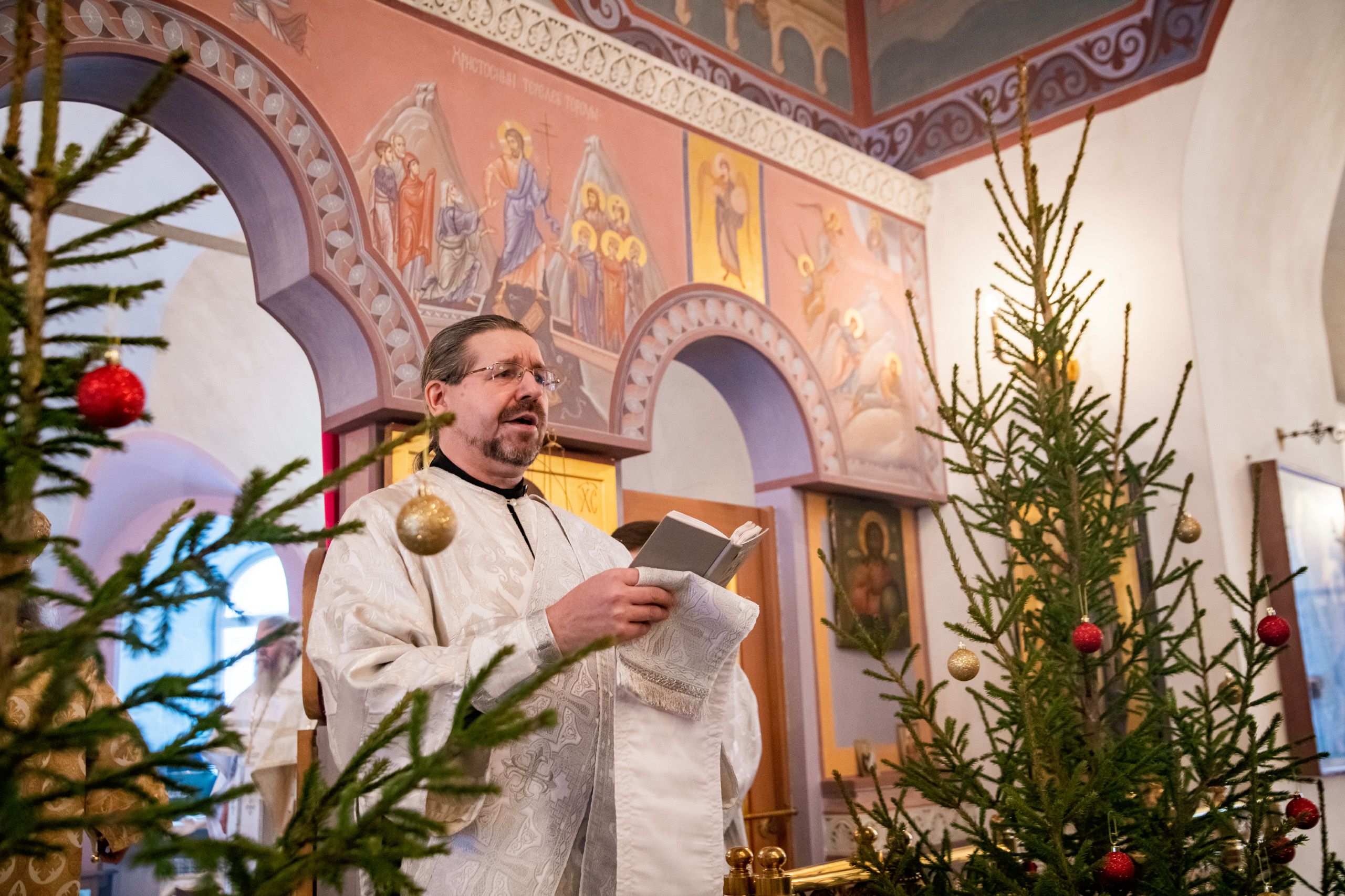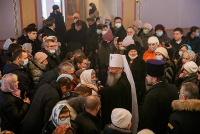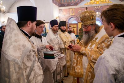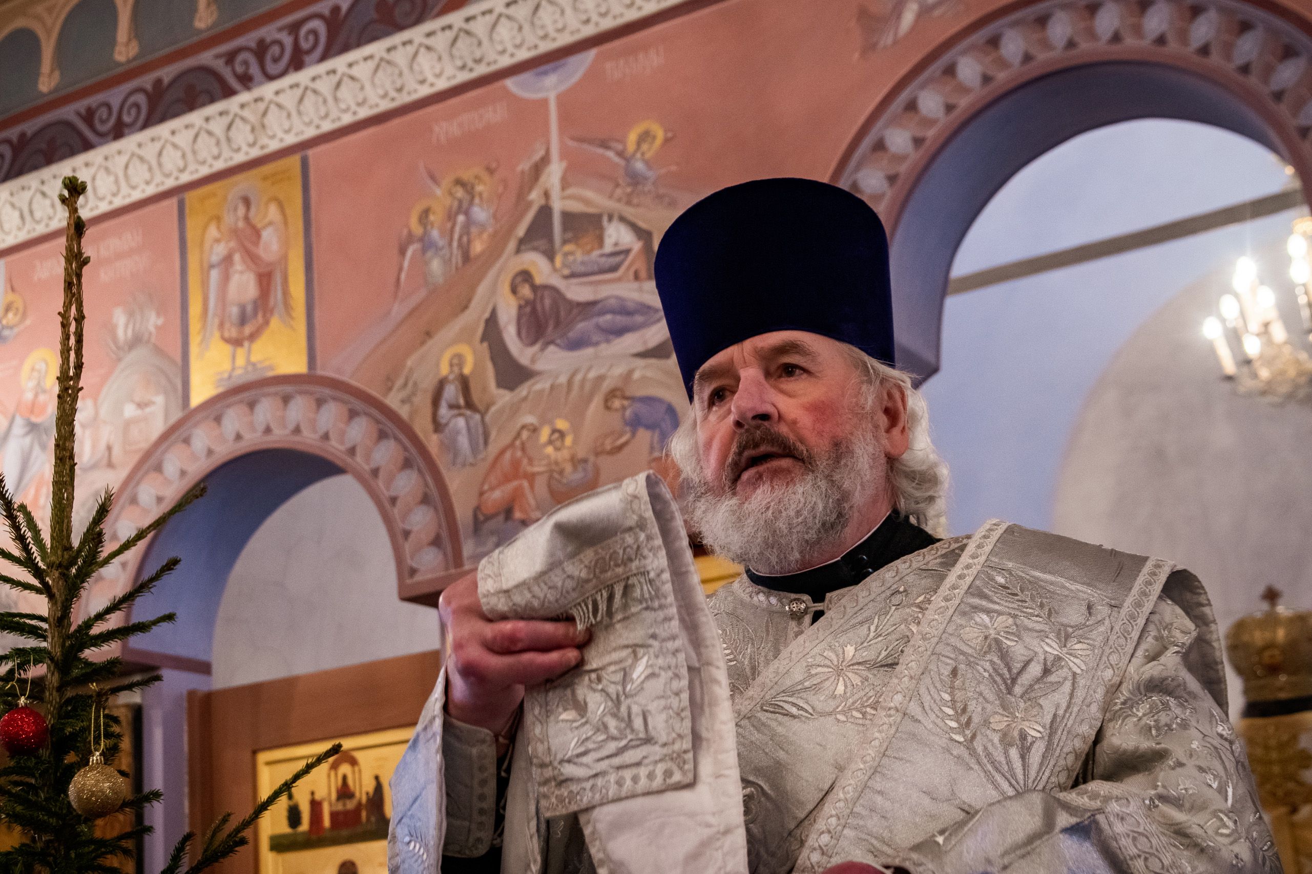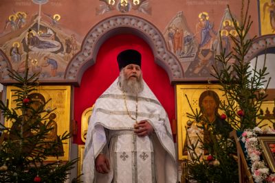 После отпуста Литургии архипастырь и духовенство пропели тропарь, кондак и величание праздника Рождества. Владыка Кирилл окропил верующих святой водой.