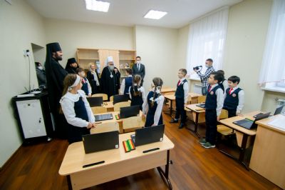 В сопровождении главы Альметьевского района и правящего архиерея митрополит Кирилл посетил православную гимназию имени равноапостольного великого князя Владимира, где познакомился с администрацией и педагогами, пообщался с учащимися младших классов. Владыка Мефодий рассказал, что православная гимназия открылась в сентябре 2018 года. Это первое учебное заведение на юго-востоке Республики Татарстан, где наряду со светскими дисциплинами преподаются духовные. В учебном процессе используется образовательная система «Русская классическая школа». В завершение визита владыка Кирилл поздравил преподавателей и учеников с началом новой учебной четверти и пожелал новых успехов в обретении новых знаний.