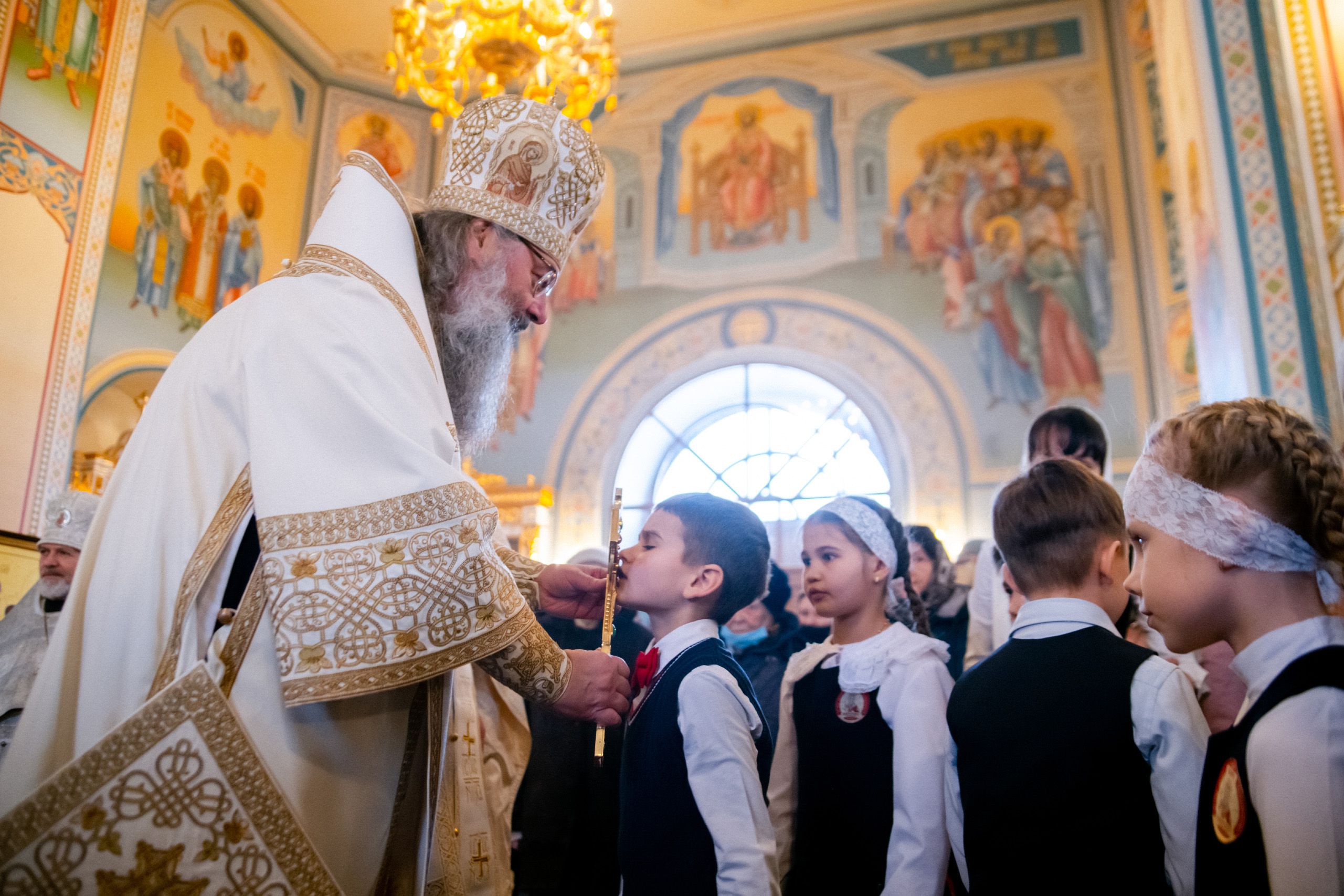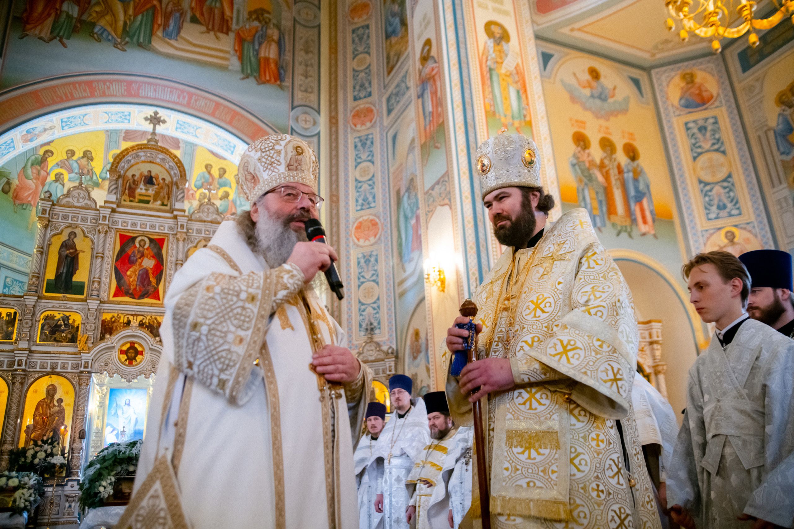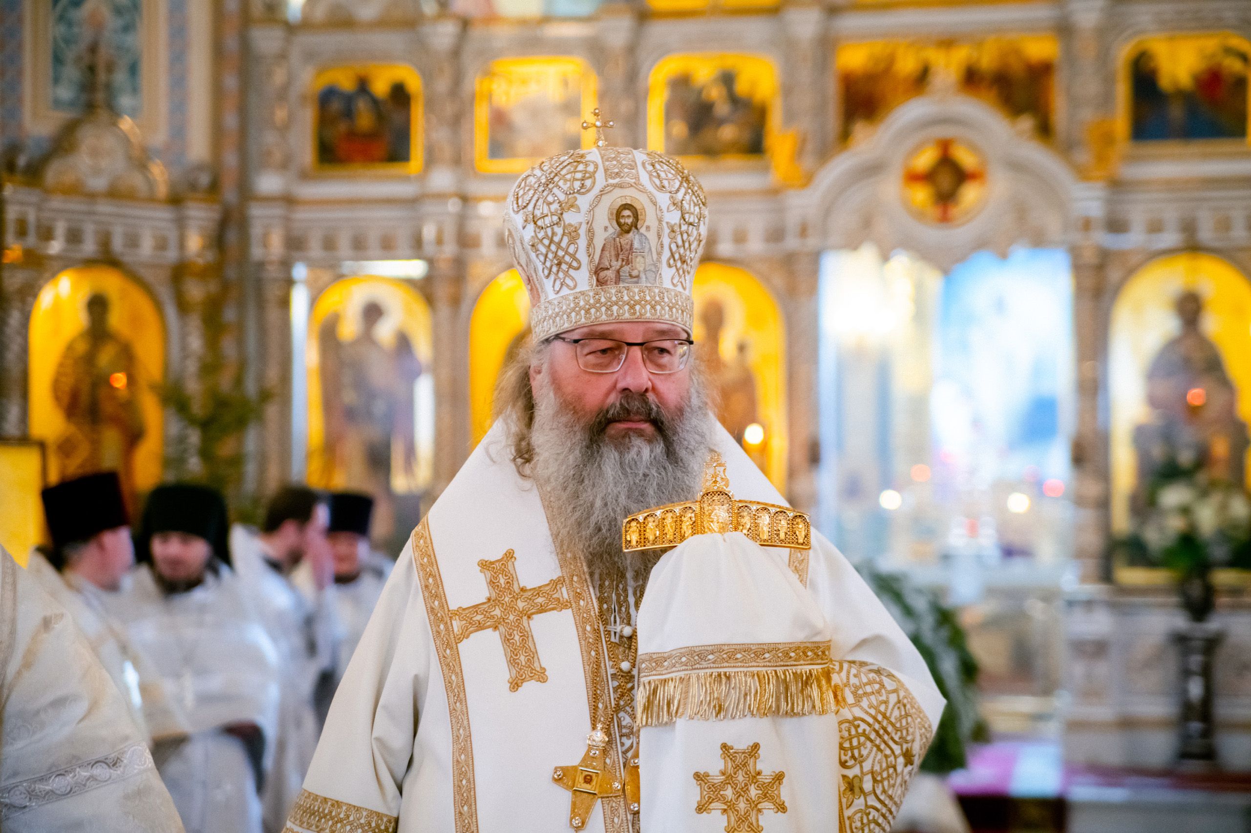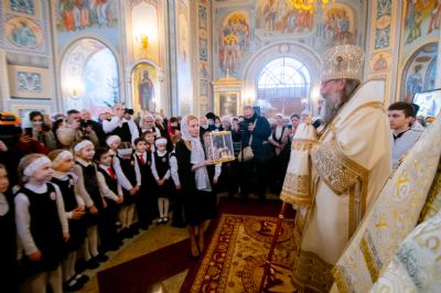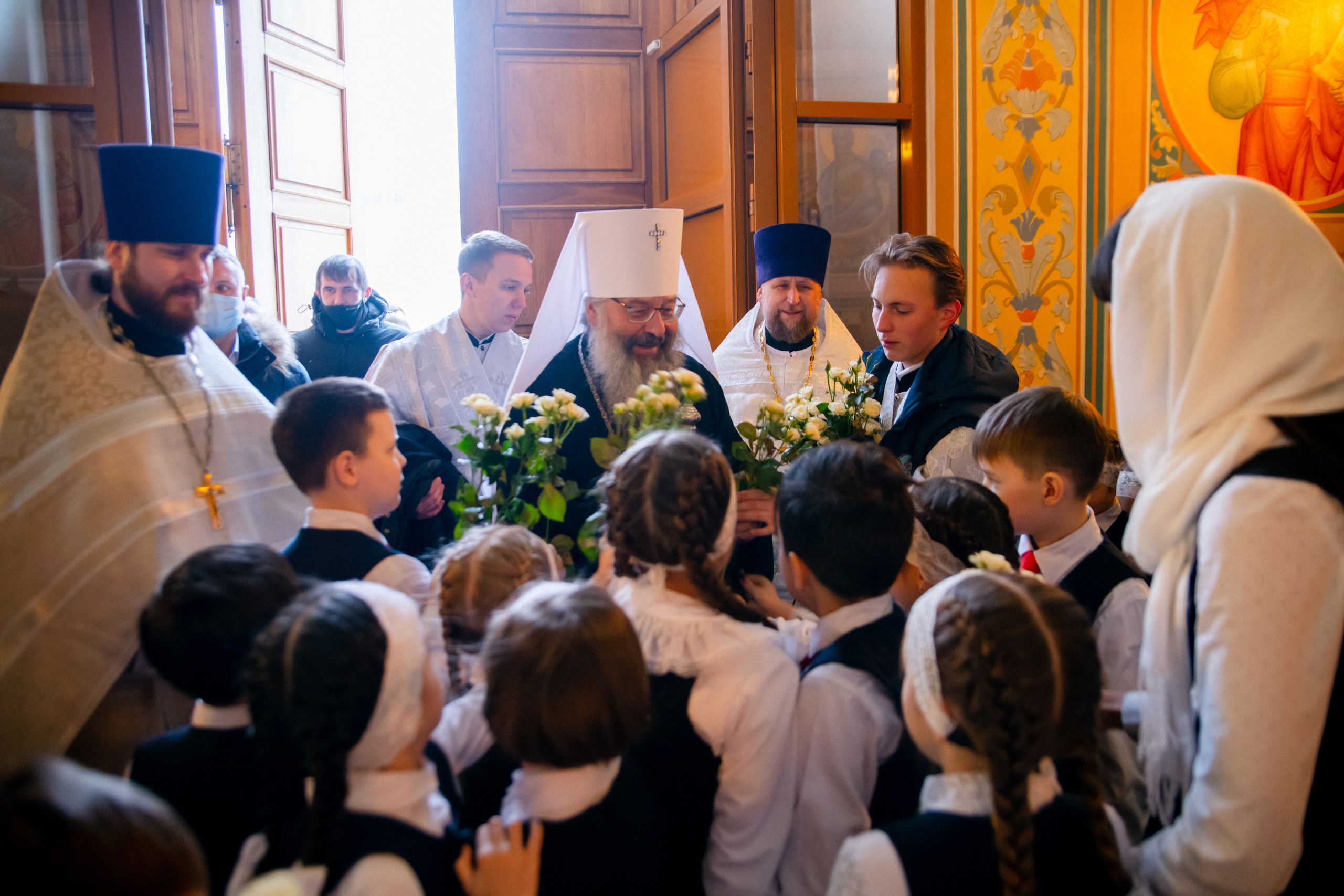 Его Высокопреосвященство выразил владыке Мефодию и воспитанникам православной гимназии сердечную благодарность за поздравление и обратился ко всем присутствующим в храме с архипастырским словом: