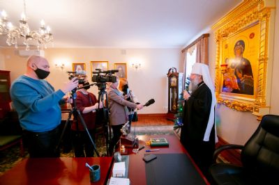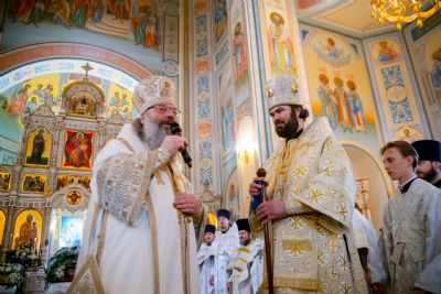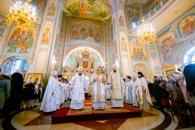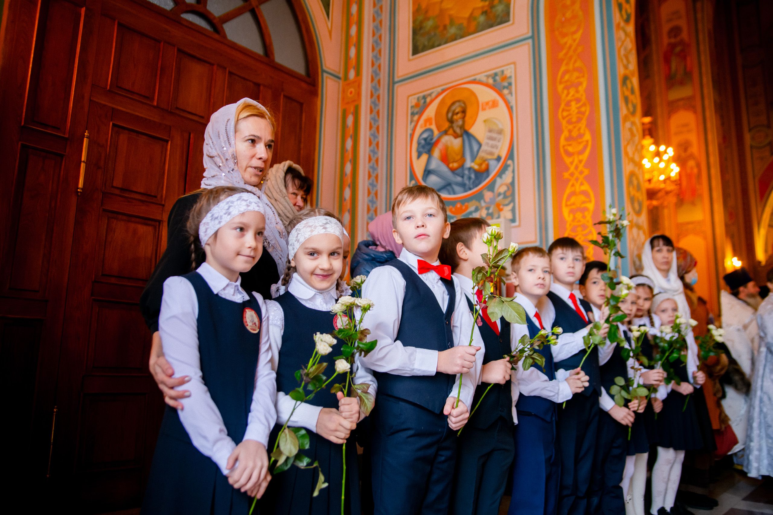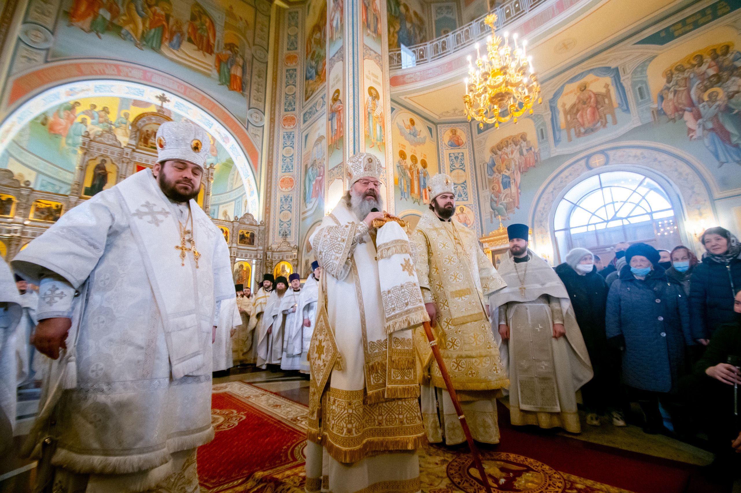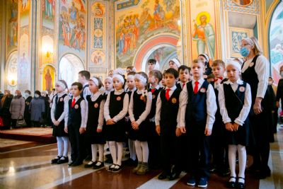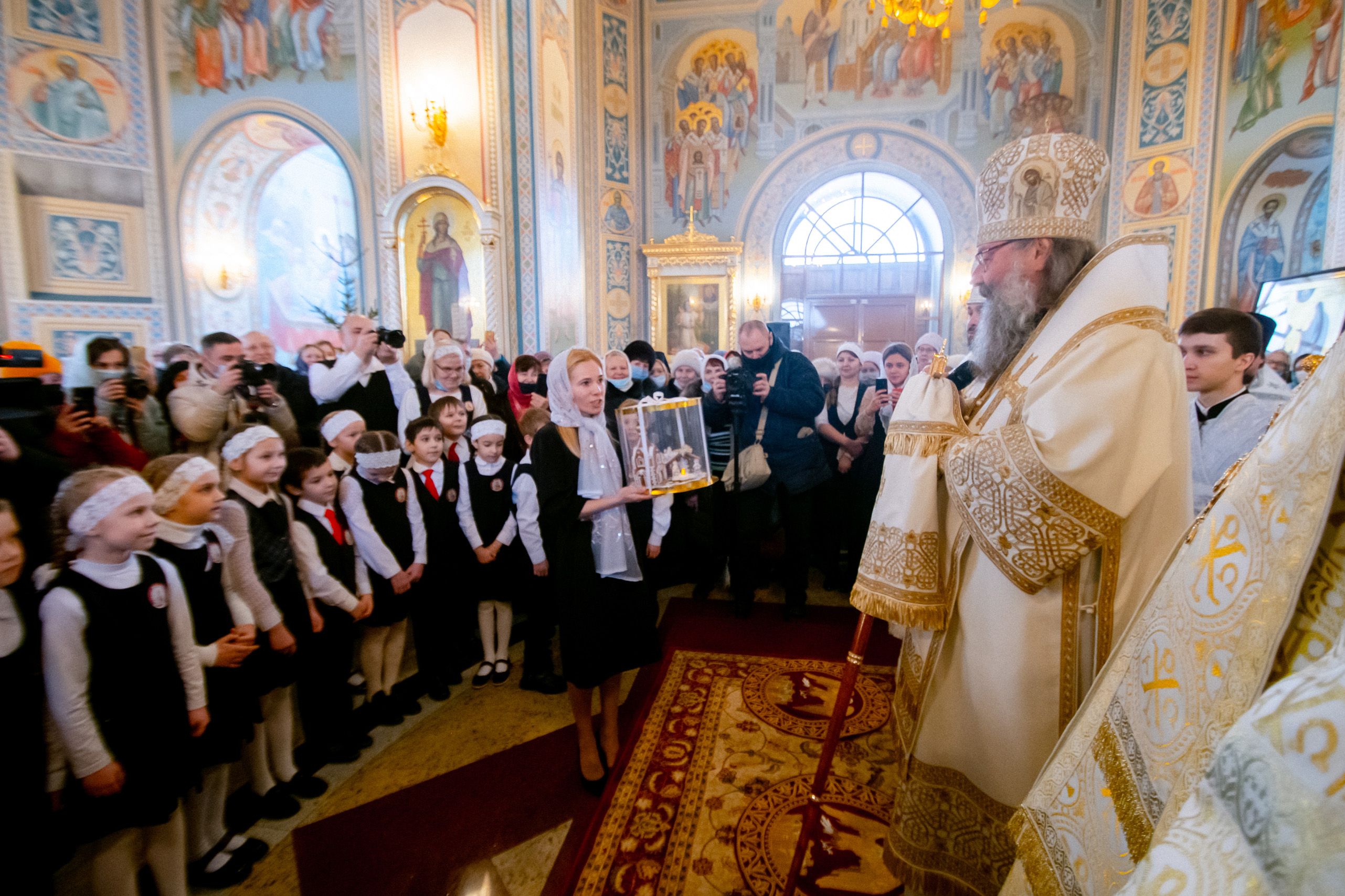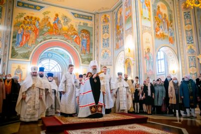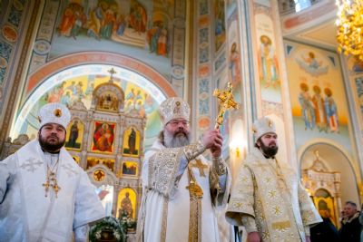Его Высокопреосвященство выразил владыке Мефодию и воспитанникам православной гимназии сердечную благодарность за поздравление и обратился ко всем присутствующим в храме с архипастырским словом:
