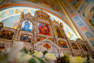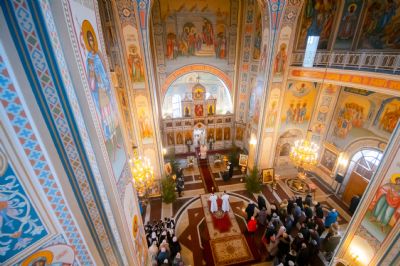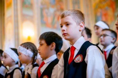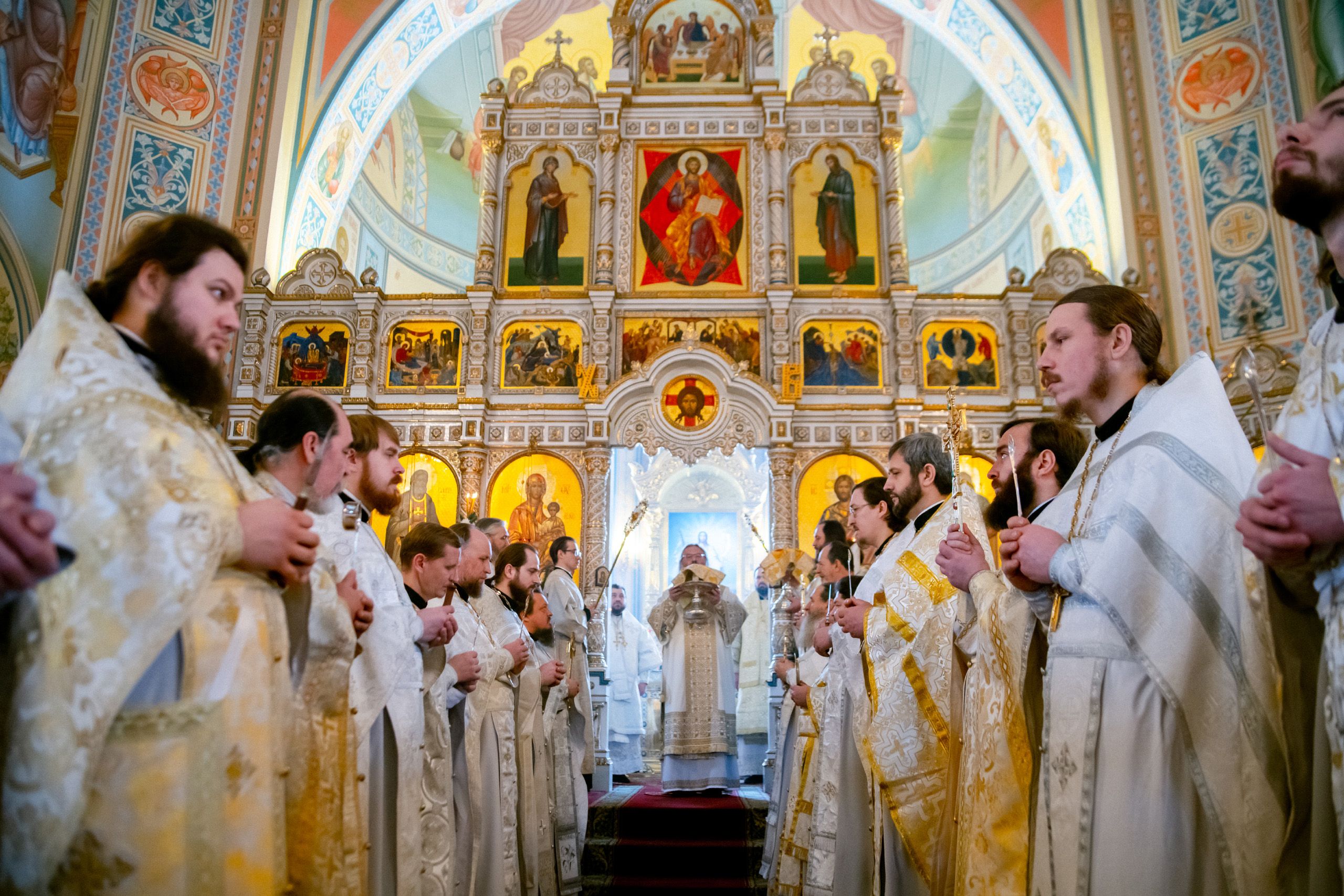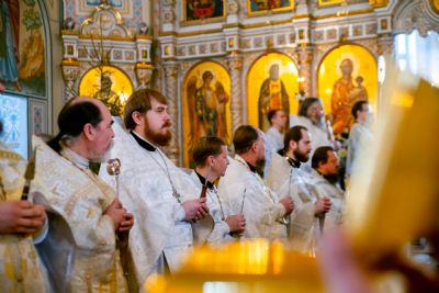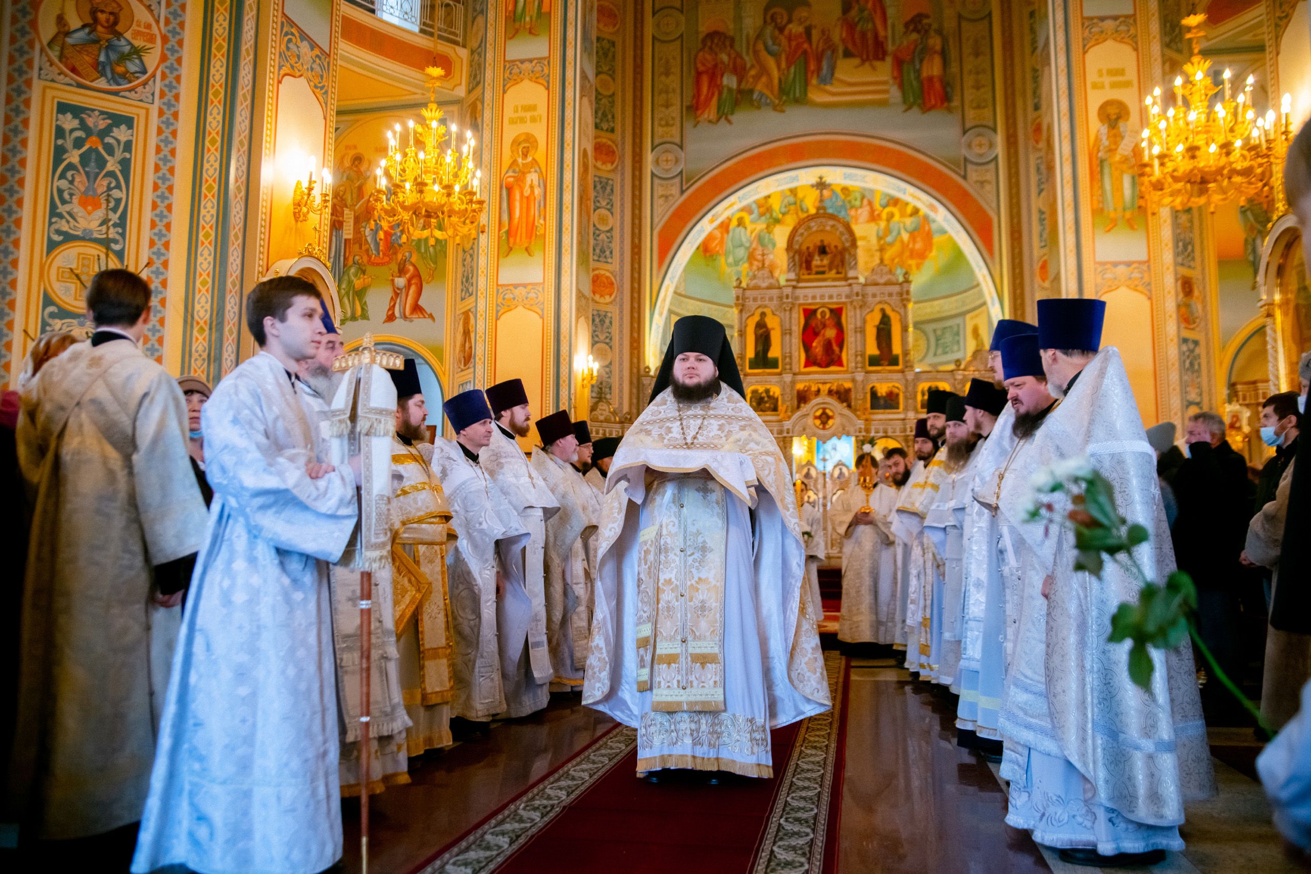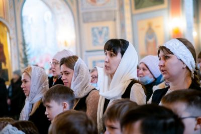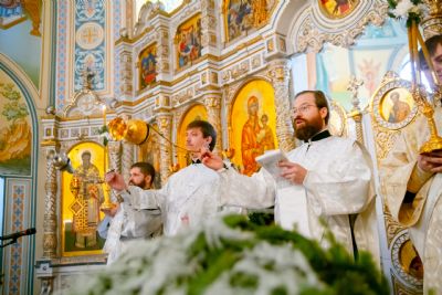 Богослужебные песнопения исполнялись архиерейским мужским хором под управлением Алексея Кропачева.