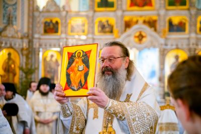 Владыка Кирилл преподал верующим архипастырское благословение. На память о молитвенном торжестве прихожанам были розданы иконы с Казанским образом Пресвятой Богородицы.