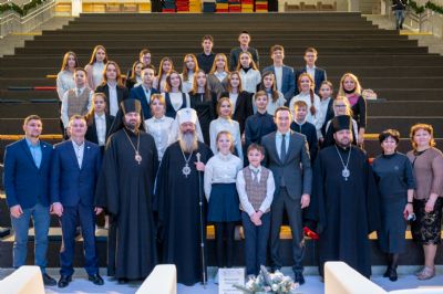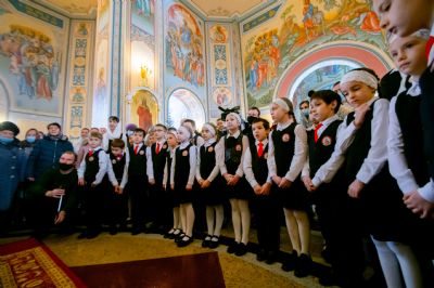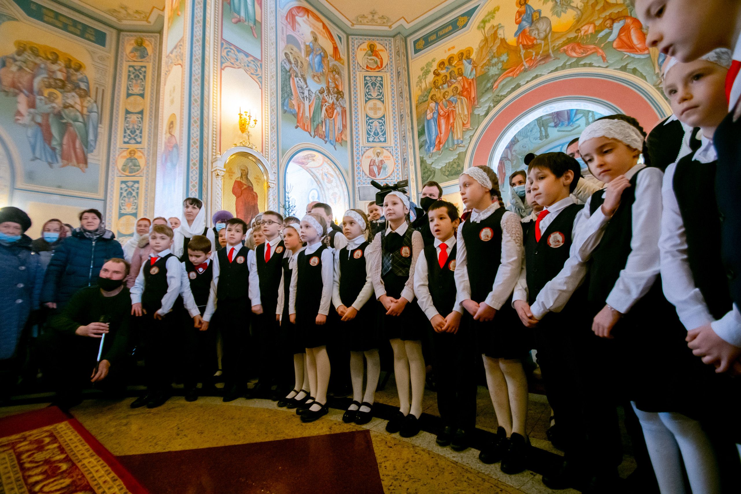 Учащиеся православной гимназии поздравили владыку Кирилла с Рождеством Христовым, исполнив рождественскую колядку.