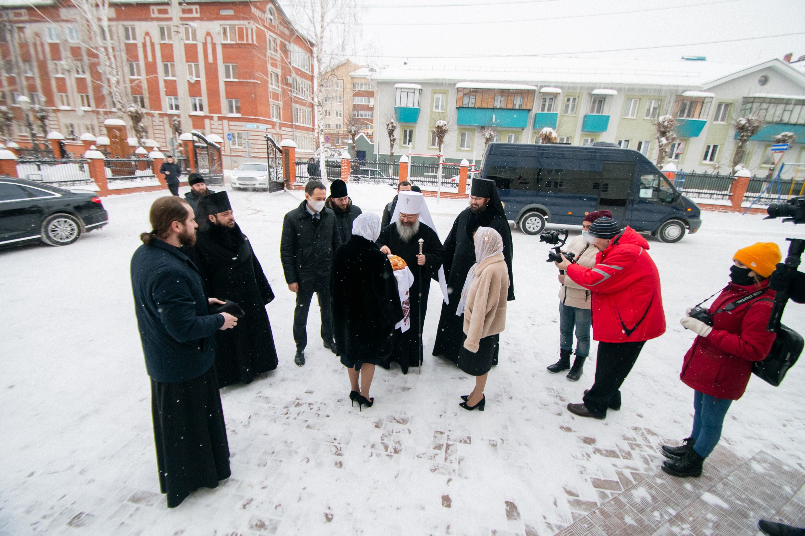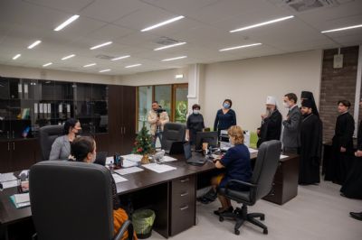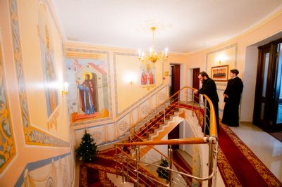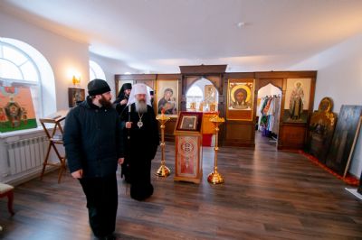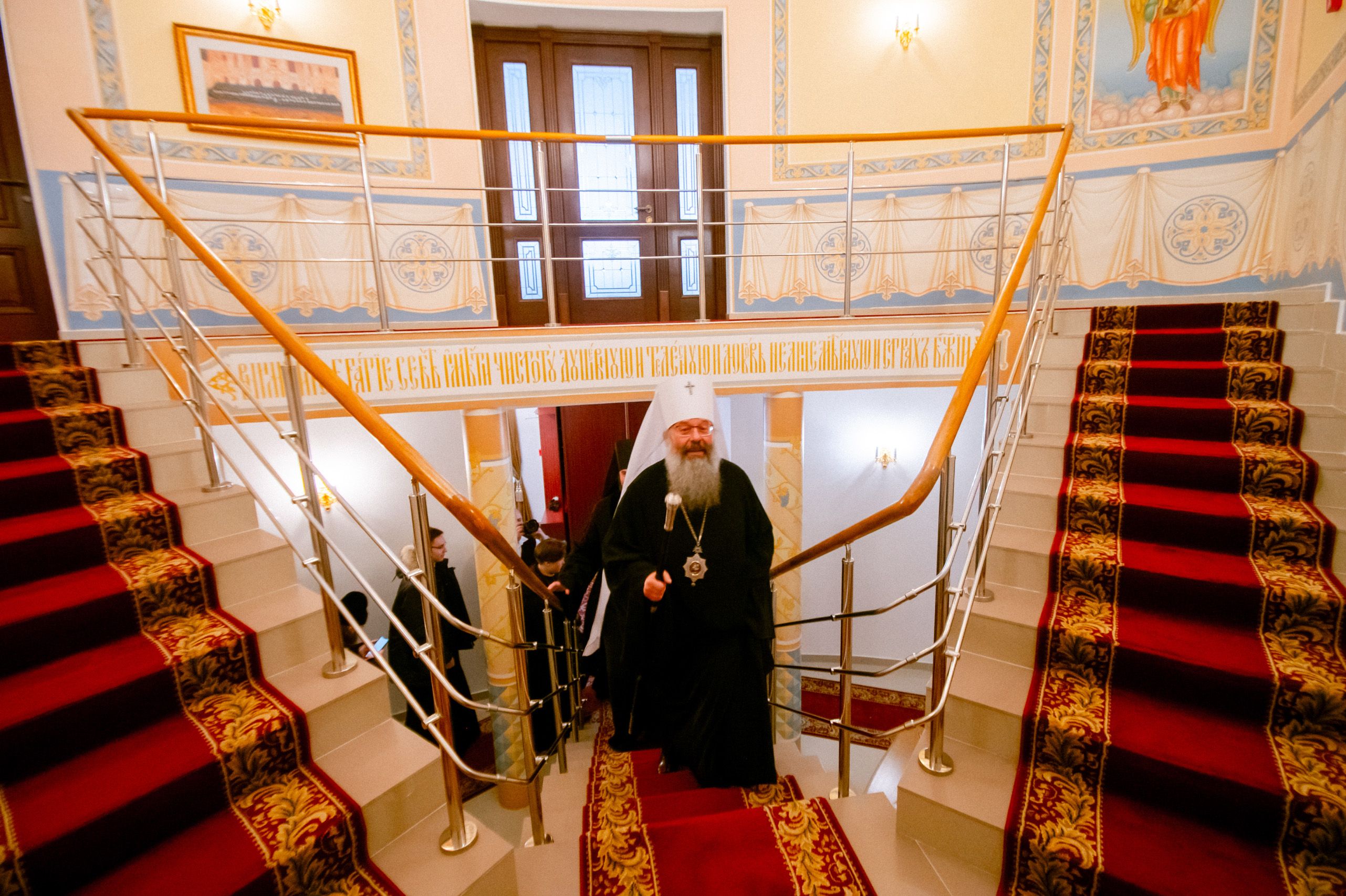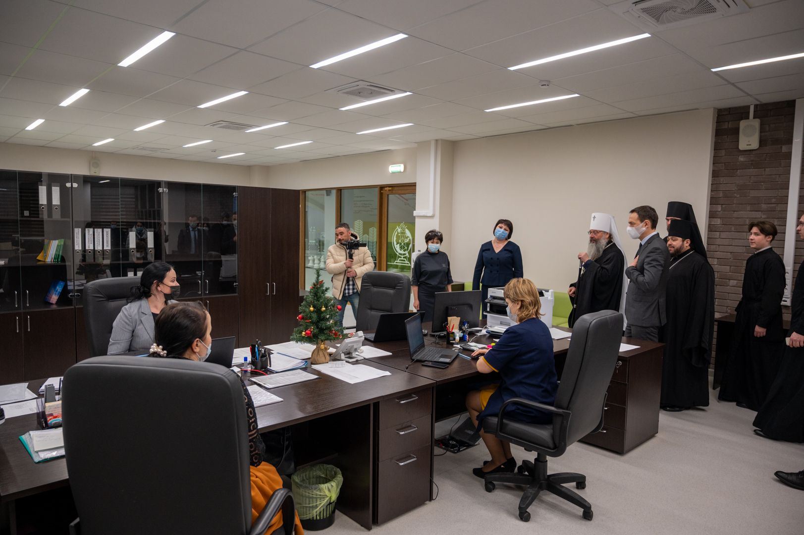 После богослужения глава Татарстанской митрополии в сопровождении епископа Мефодия направился в здание управления Альметьевской епархии, построенное при поддержке компании ОАО «Татнефть» в 2015 году. Здесь владыка осмотрел кабинеты и домовой храм, освященный в честь иконы Божией Матери «Троеручица».