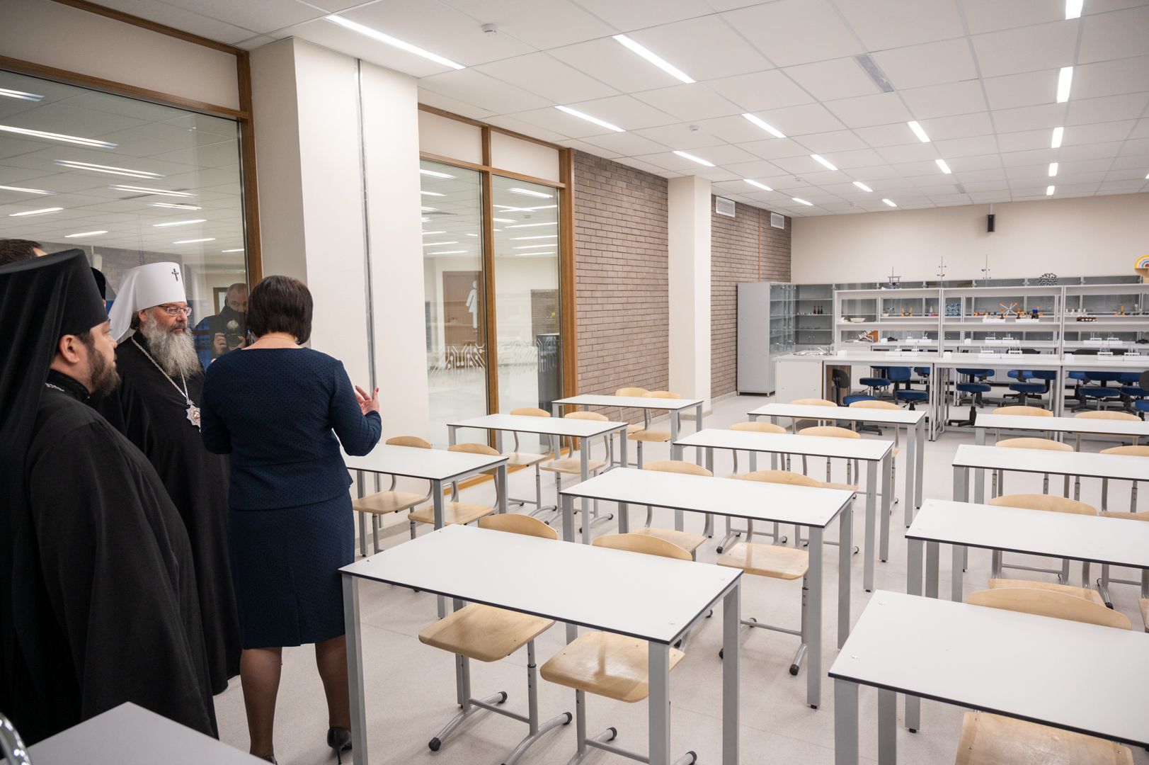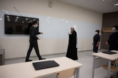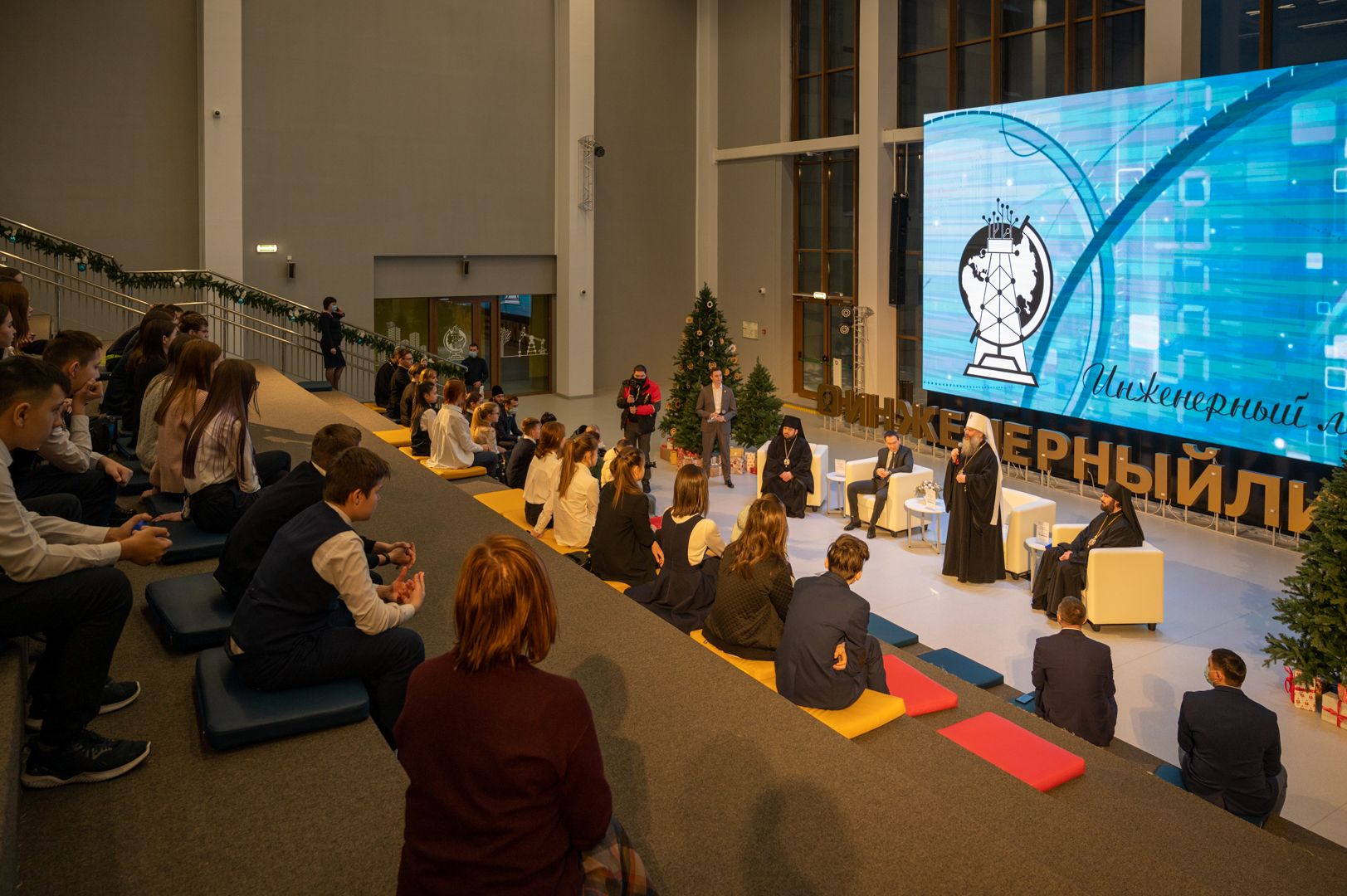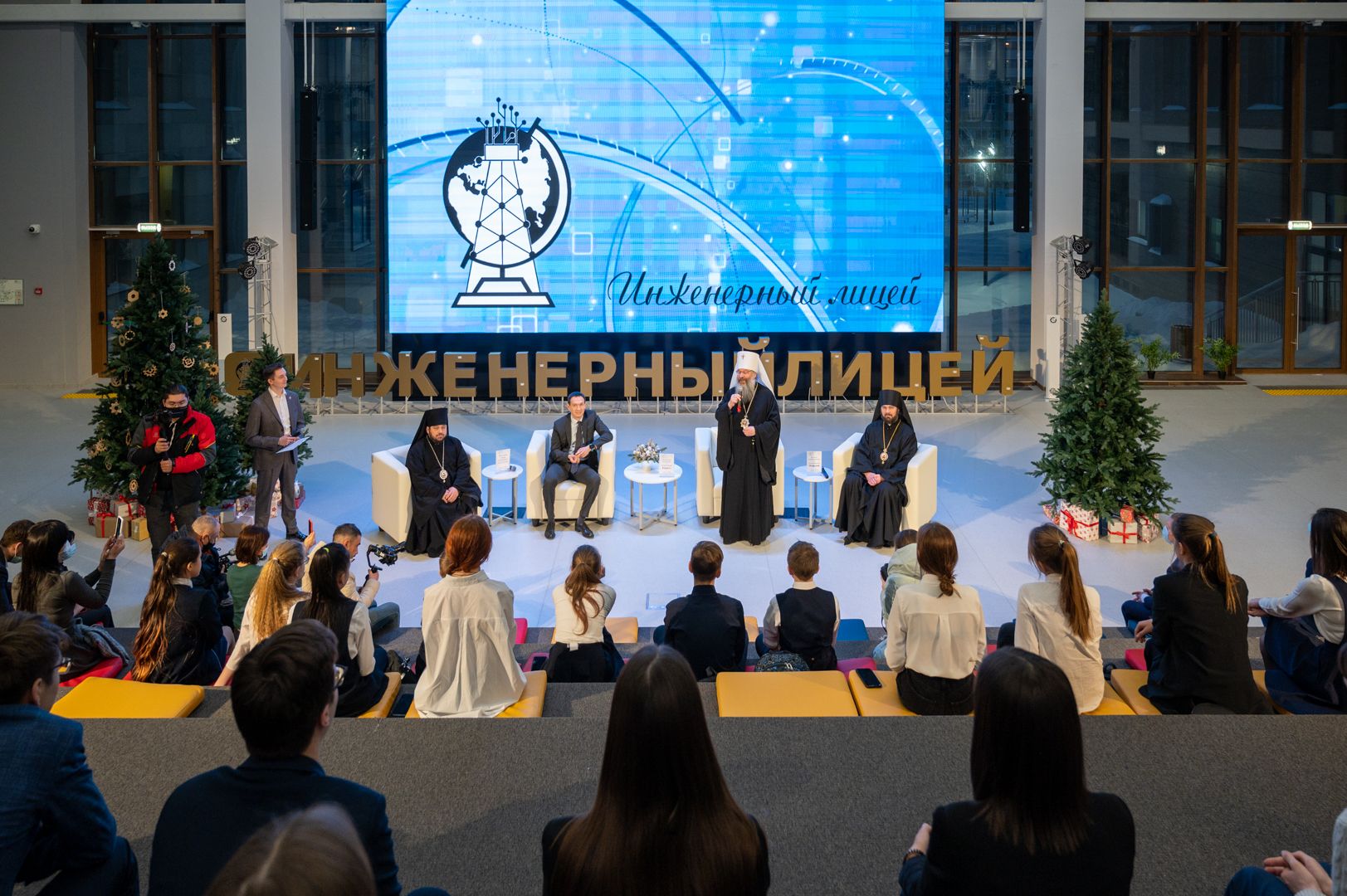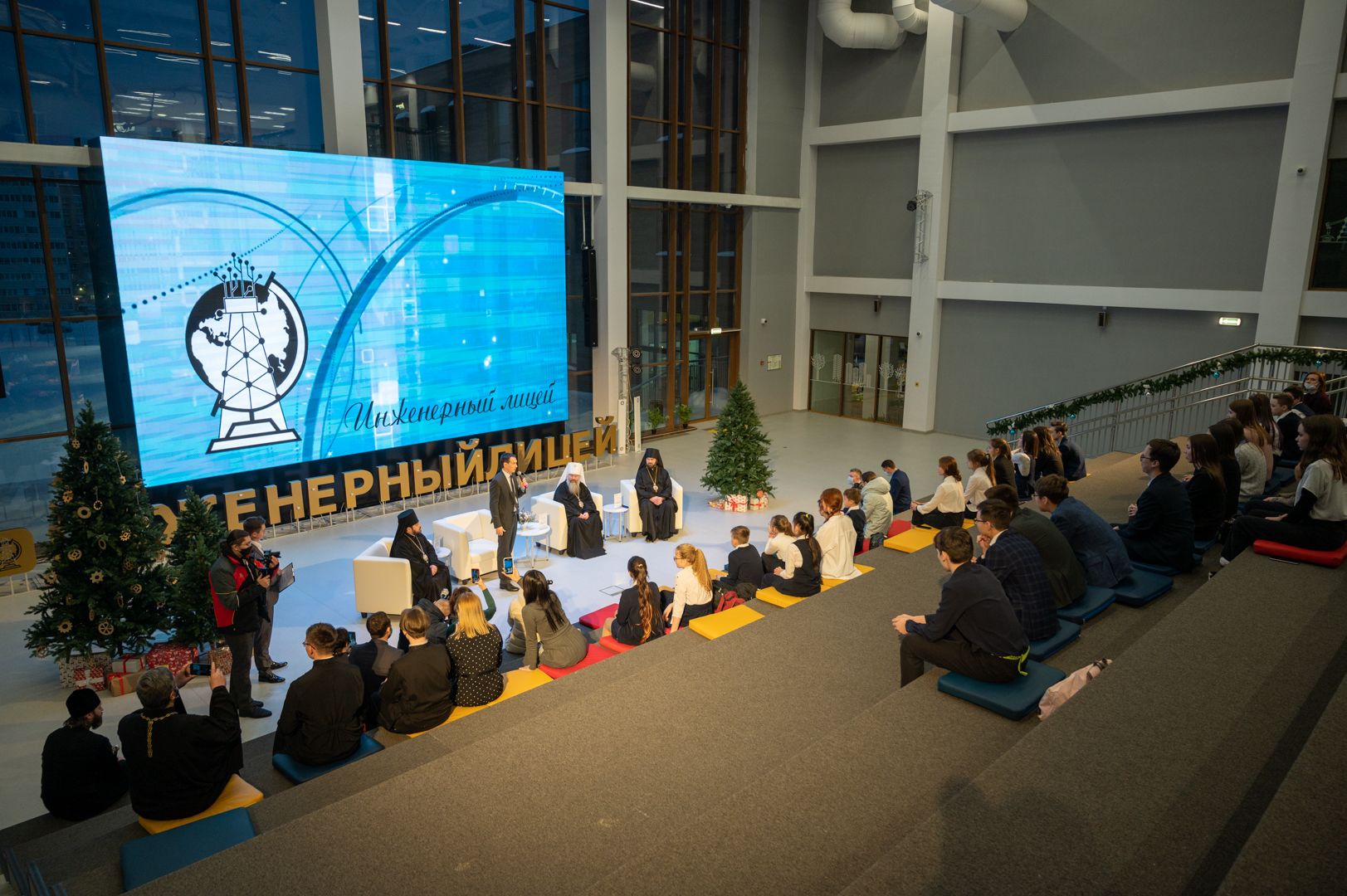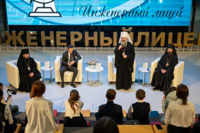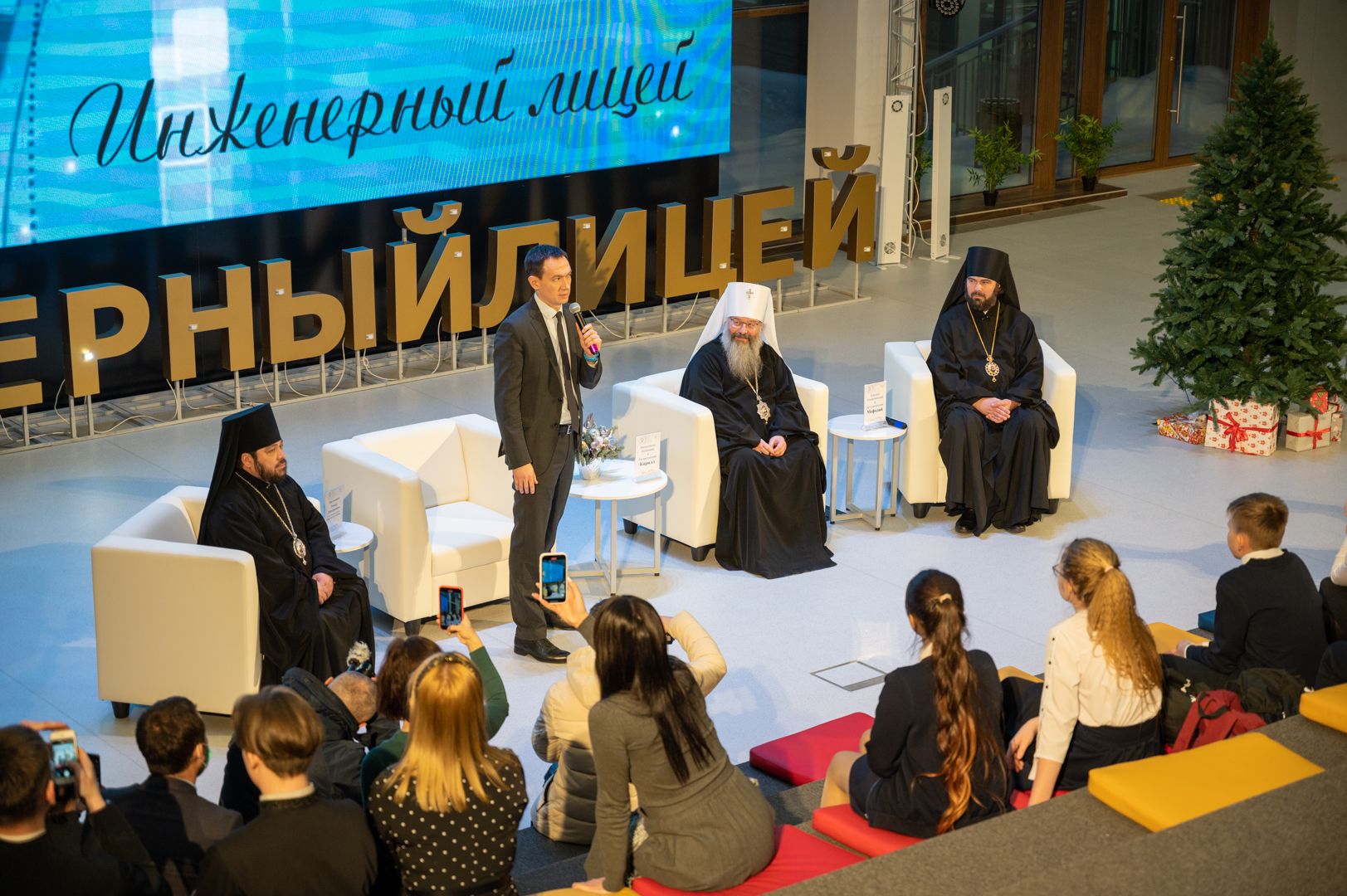 В рамках посещения Альметьевска состоялось ознакомление главы Татарстанской митрополии с работой Инженерного лицея. На площадях здания размещены 30 классов, хореографический зал, зал 3D-спорта, лаборатория робототехники, музей боевой славы, телестудия, книгохранилище, спортивный зал, бассейн, IT-полигон. С первого класса дети изучают информатику. В средней школе учебный план включает в себя наглядную физику и химию, инженерную графику и другие технологические предметы. В актовом зале лицея состоялось общение архипастыря с учащимися.