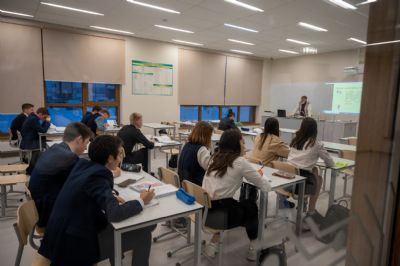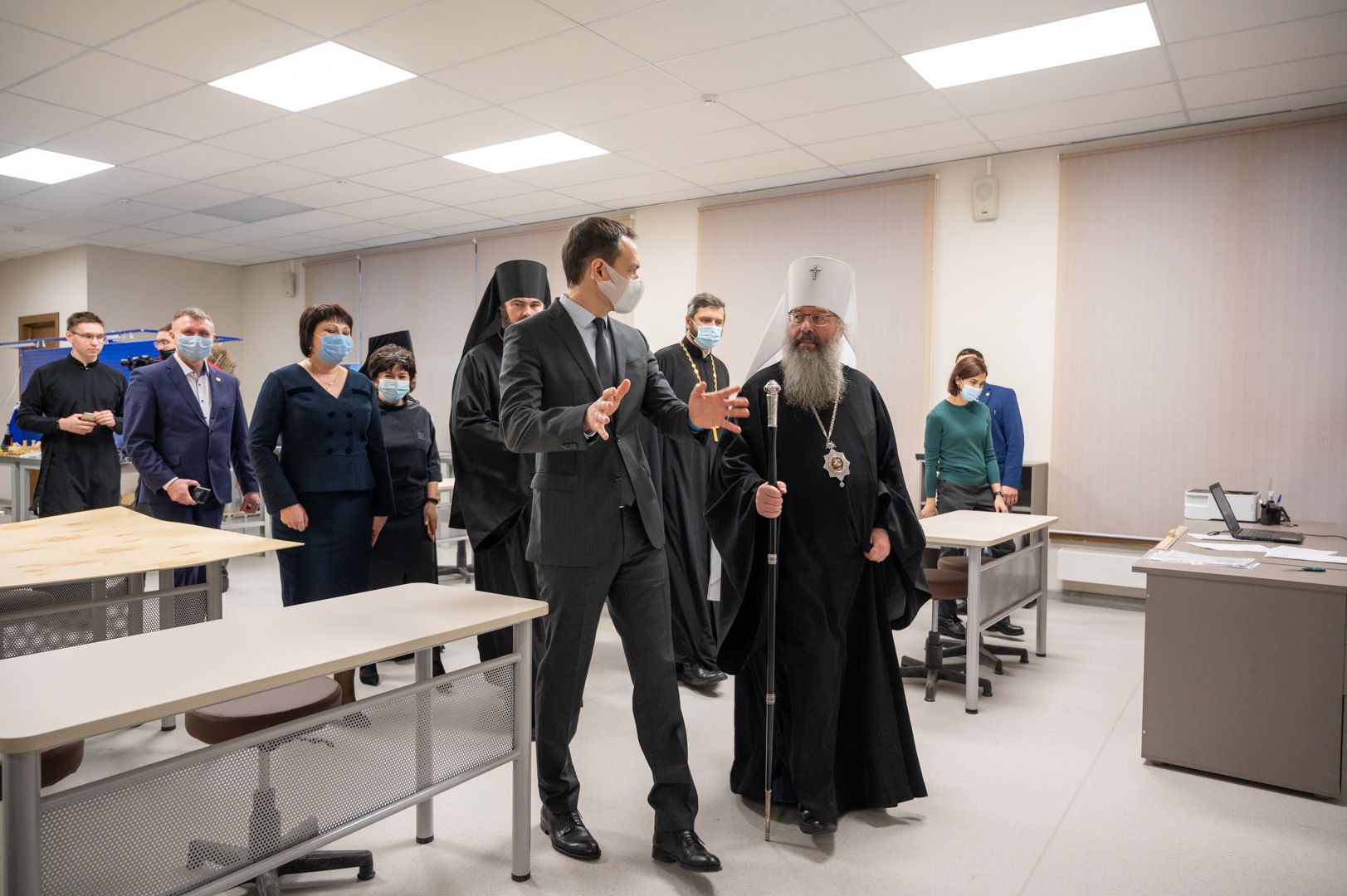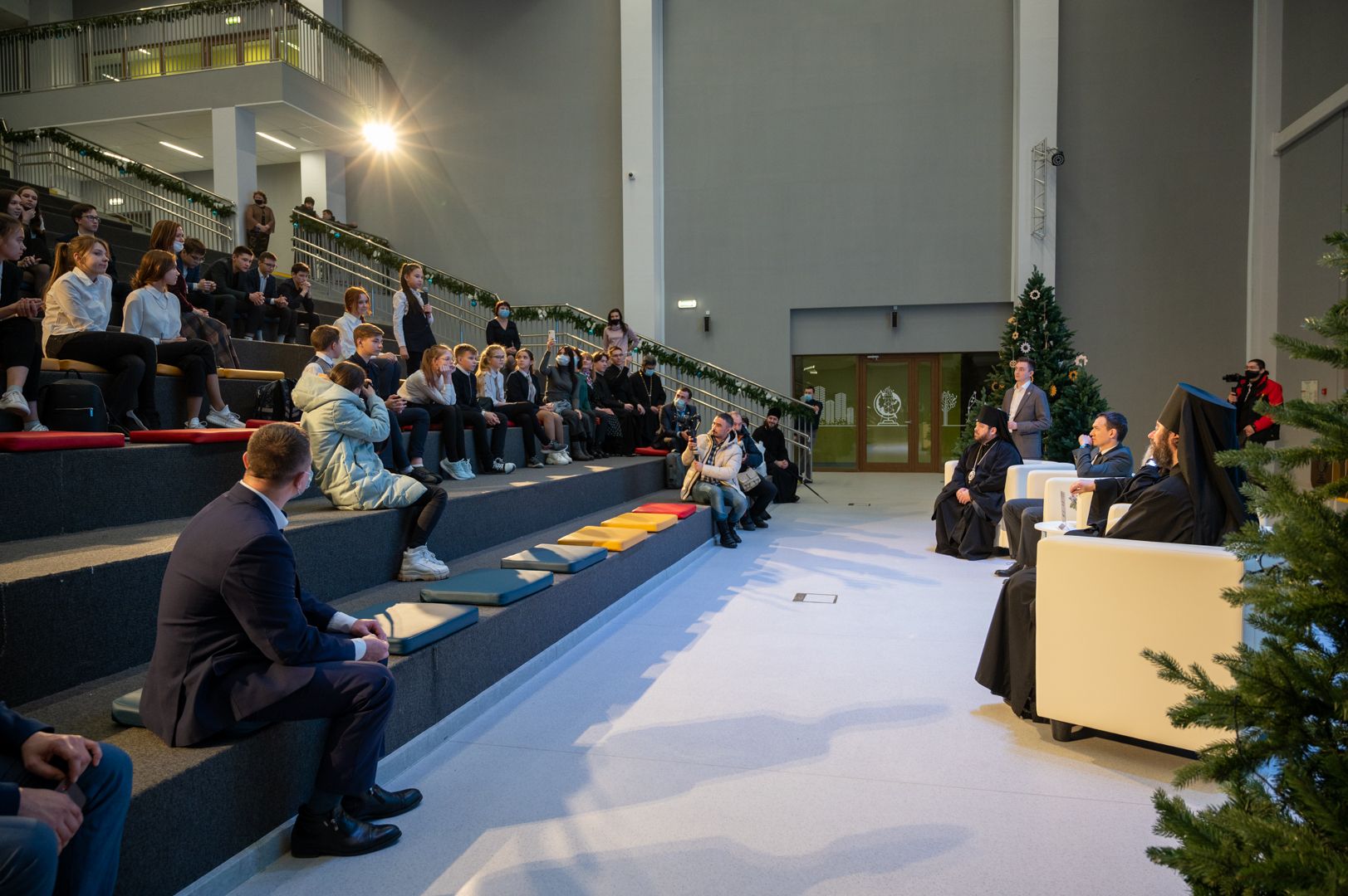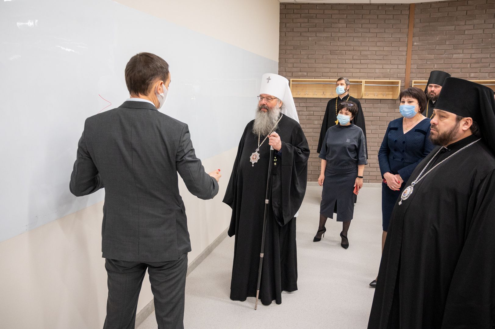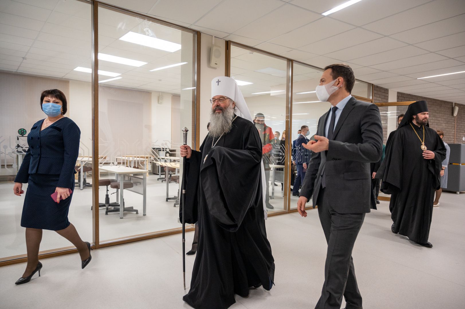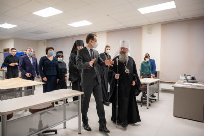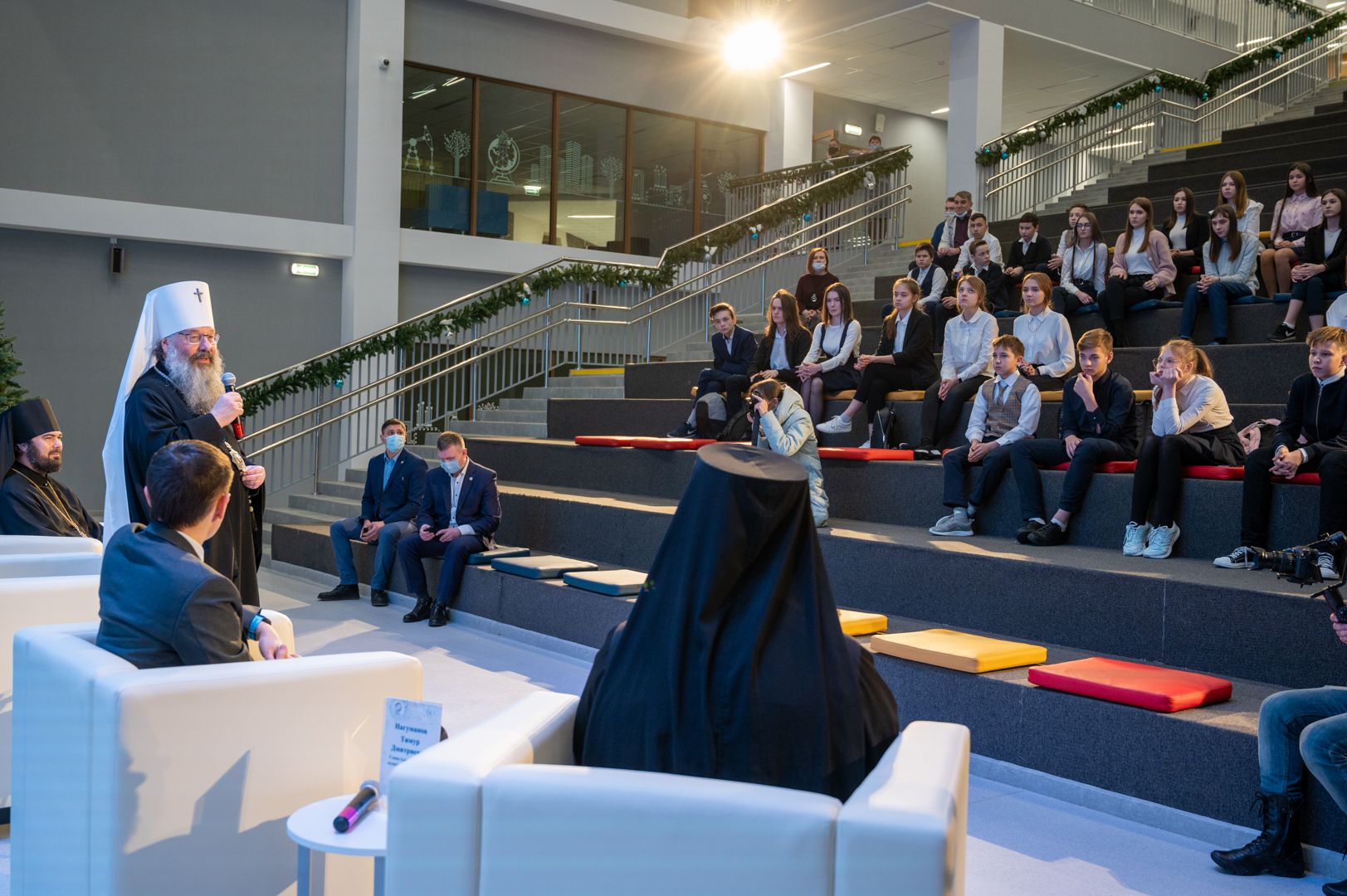 В рамках посещения Альметьевска состоялось ознакомление главы Татарстанской митрополии с работой Инженерного лицея. На площадях здания размещены 30 классов, хореографический зал, зал 3D-спорта, лаборатория робототехники, музей боевой славы, телестудия, книгохранилище, спортивный зал, бассейн, IT-полигон. С первого класса дети изучают информатику. В средней школе учебный план включает в себя наглядную физику и химию, инженерную графику и другие технологические предметы. В актовом зале лицея состоялось общение архипастыря с учащимися.