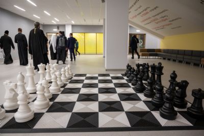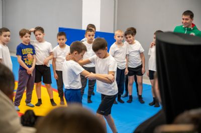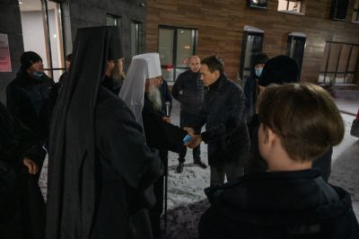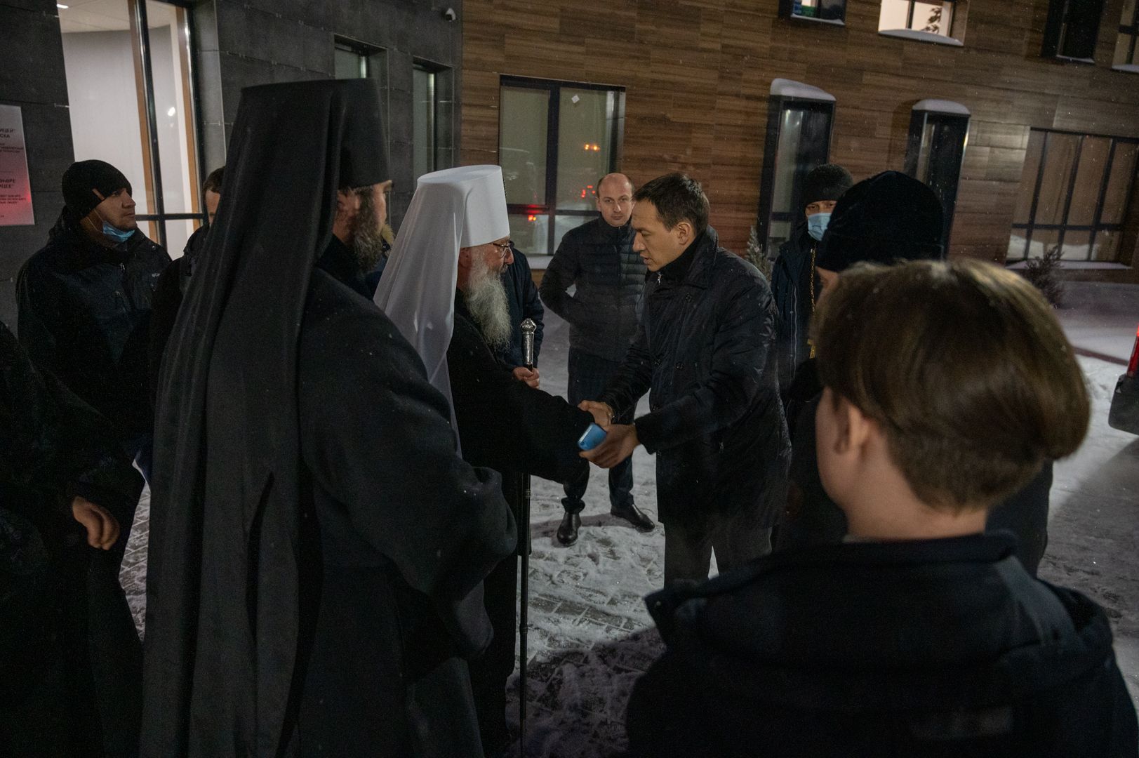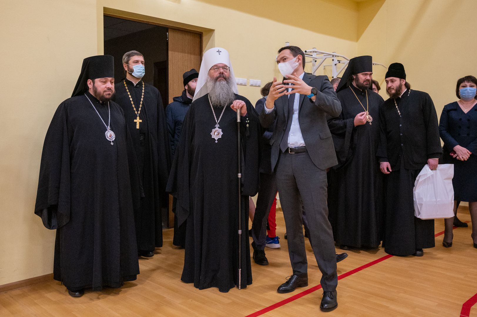 Вечером владыка Кирилл побывал во дворце спорта «Юбилейный» на игре местной хоккейной команды «Нефтяник».