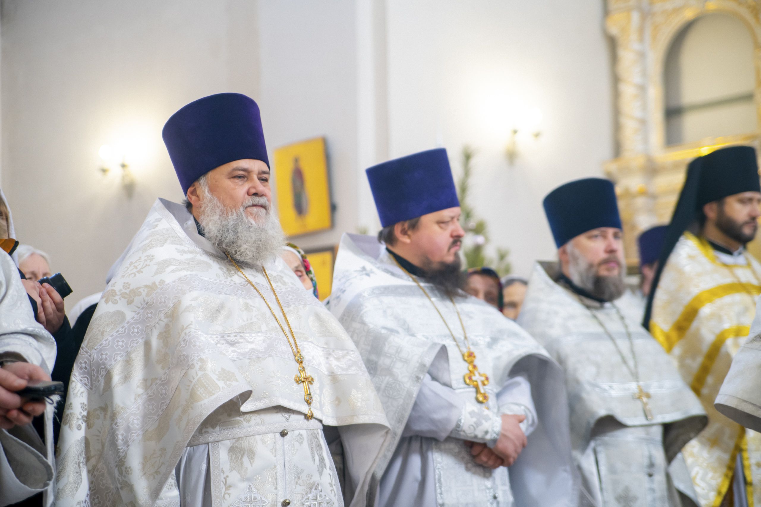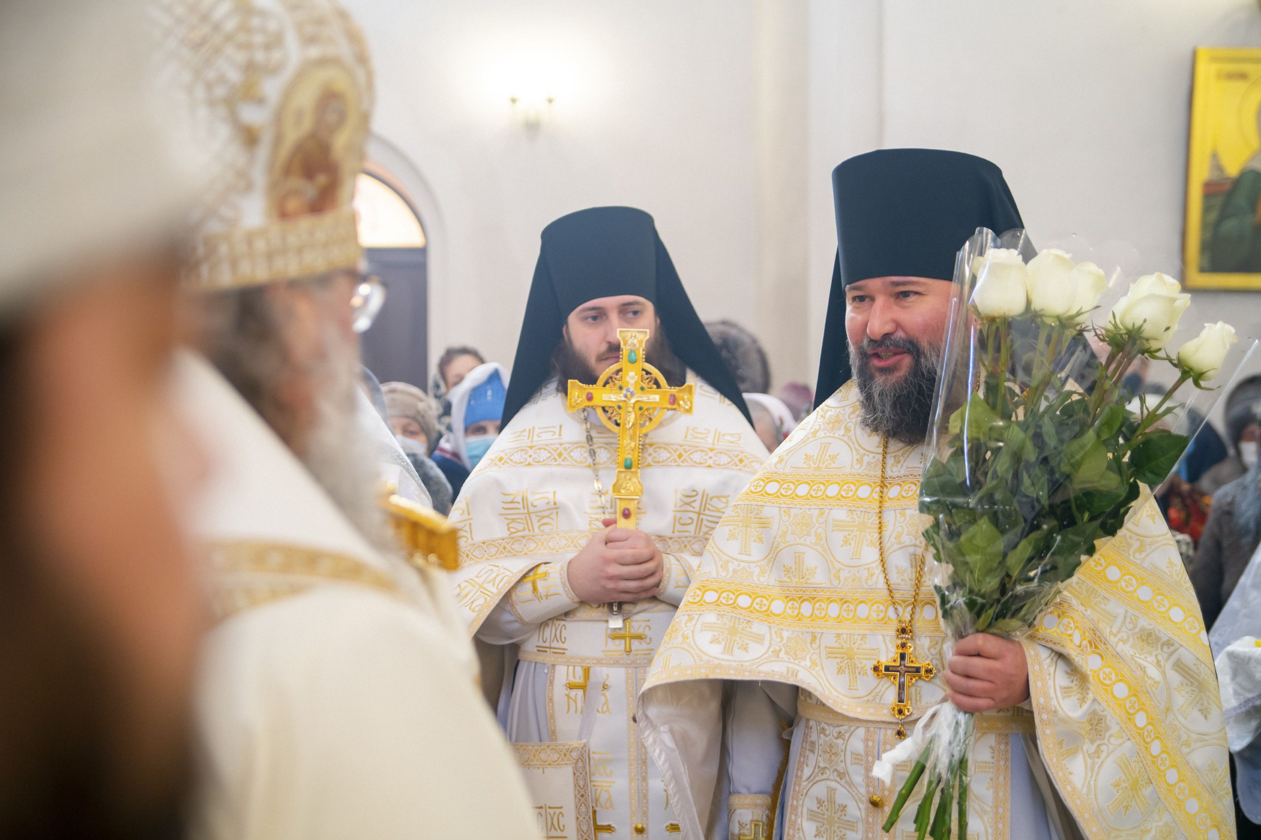 Архипастырям сослужили секретарь Татарстанской митрополии иеромонах Кирилл (Корытко), благочинный Закамского округа Казанской епархии протоиерей Андрей Дубровин, настоятель прихода Рождества Христова игумен Василий (Сардаев), настоятель Богоявленского собора города Казани протоиерей Алексий Державин, настоятель Троицкого храма села Большая Шильна протоиерей Рафаил Миронов, настоятель храма великомученика Георгия Победоносца города Набережные Челны протоиерей Валерий Каранаев, благочинный Елабужского округа Казанской епархии иерей Симеон Лепихин, настоятель прихода святителя Николая Чудотворца города Набережные Челны иерей Александр Ворошилов, иеромонах Алексий (Яцейко), клирик прихода Рождества Христова иерей Константин Кожевников.