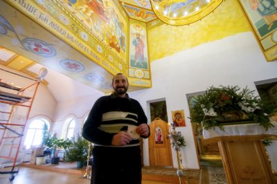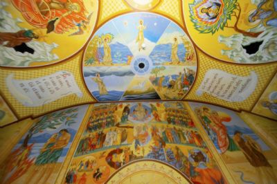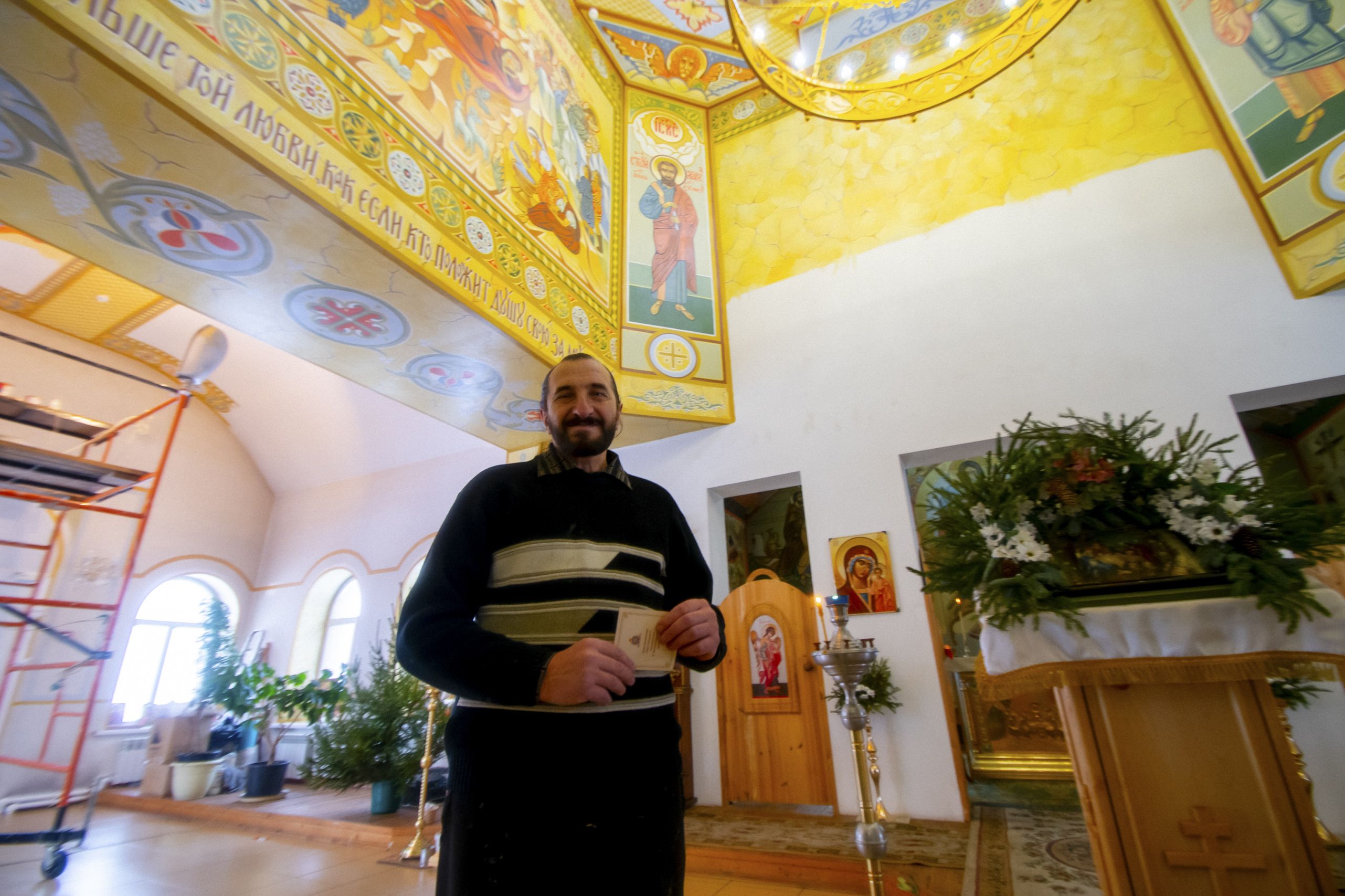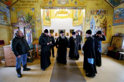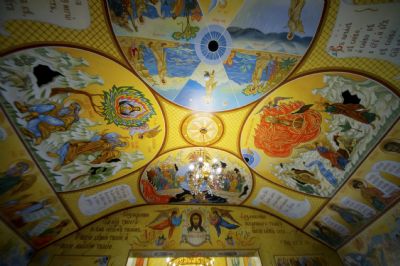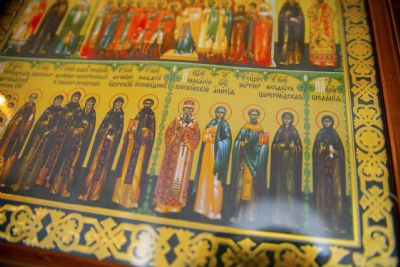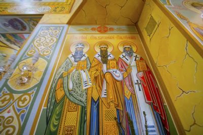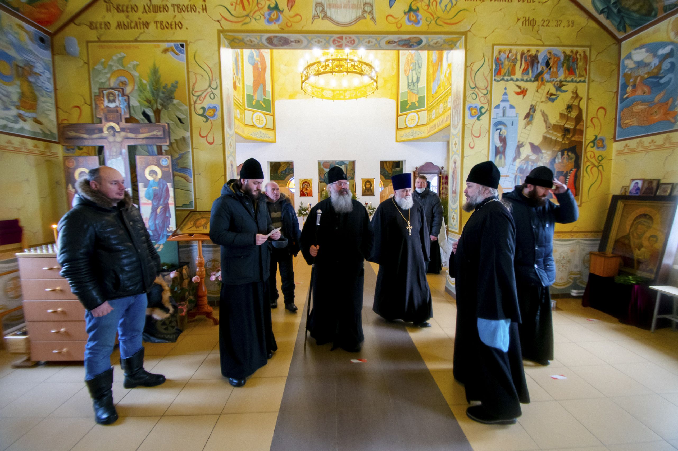 Правящий архиерей также побывал в церкви великомученика Георгия Победоносца, где ознакомился с работами челнинского иконописца Евгения Прохорова. В настоящее время мастер работает над росписью северного крыла церкви. В планах — завершить роспись к следующему году.