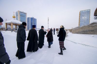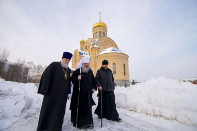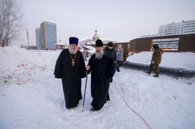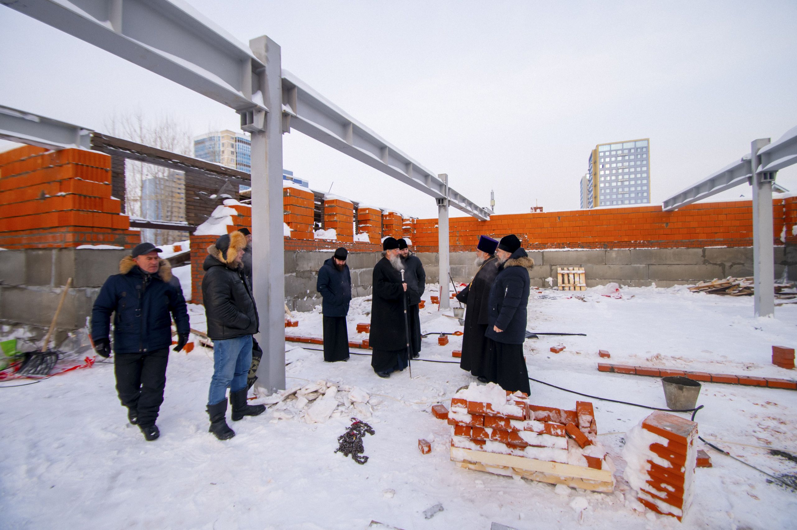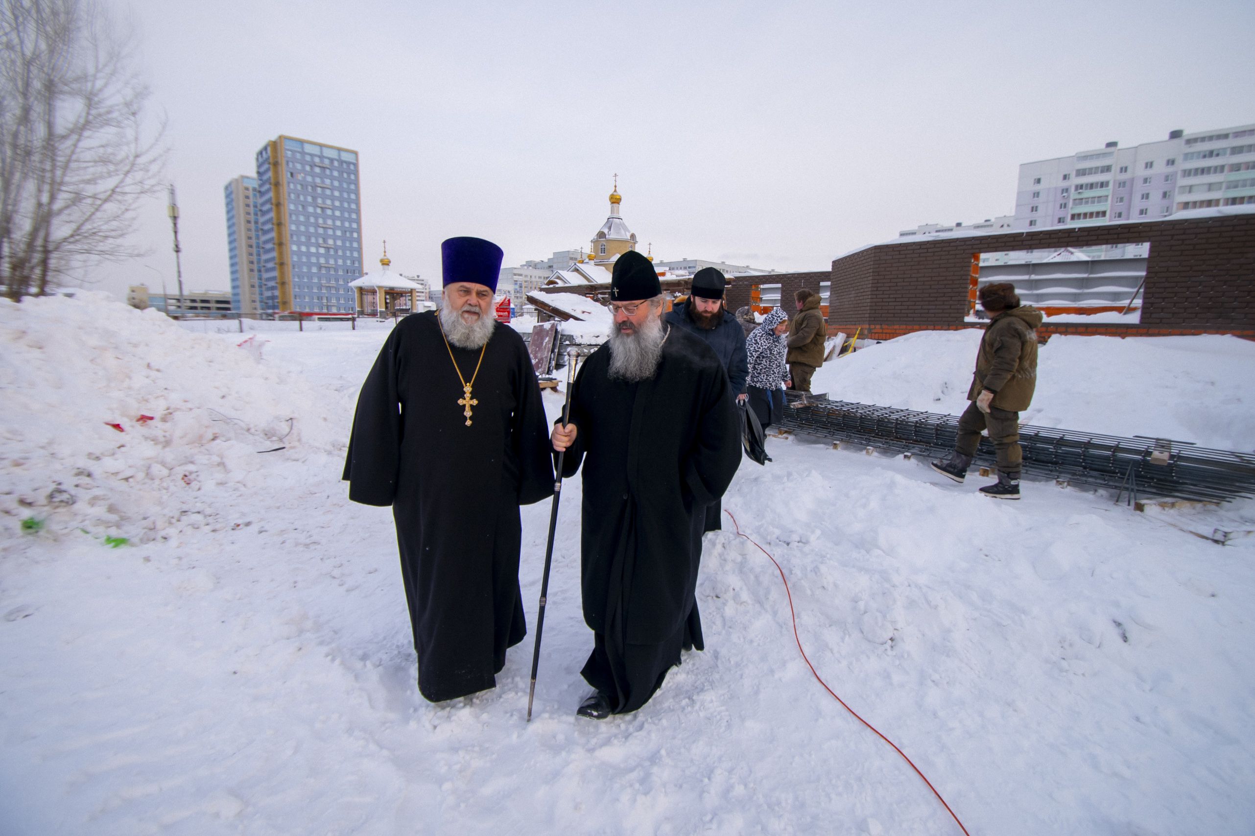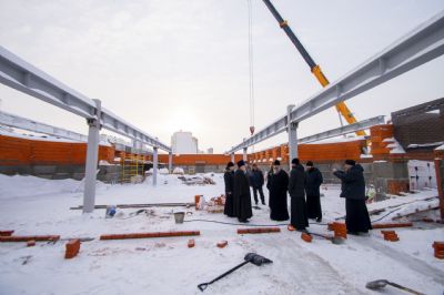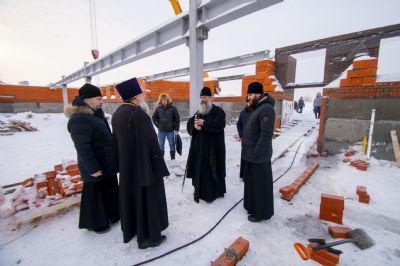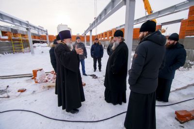 Далее митрополит Кирилл в сопровождении благочинного Закамского округа протоиерея Андрея Дубровина посетил строительную площадку православной гимназии на территории храма великомученика Георгия Победоносца. Отец Андрей рассказал Его Высокопреосвященству о текущих строительных работах. На данный момент строители практически закончили кладку стен цокольного этажа, в ближайшее время планируется положить плиты перекрытия. В планах на предстоящий год — строительство первого и второго этажа гимназии.