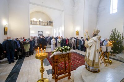 Богослужебные песнопения исполнил смешанный приходской хор под управлением Елены Головных. За Литургией молились прихожане набережночелнинских храмов. По запричастном стихе проповедь произнёс иерей Константин Кожевников. После отпуста духовенством на середине храма были пропеты тропарь, кондак и величание праздника Рождества Христова.