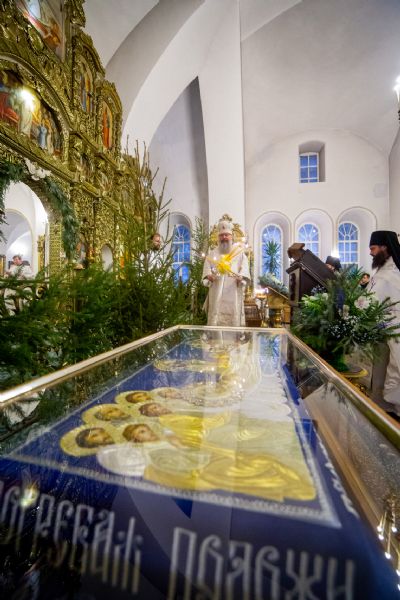 За Литургией Его Высокопреосвященству сослужили секретарь Татарстанской митрополии иеромонах Кирилл (Корытко), наместник Раифского монастыря игумен Гавриил (Рожнов), насельники обители в священном сане.