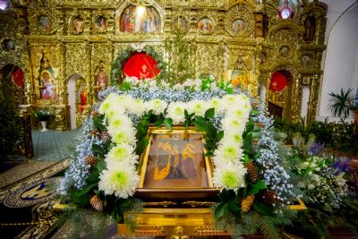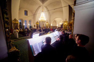 Песнопения исполнял монастырский мужской вокальный квартет «Притча» под управлением диакона Сергия Уренцева. За богослужением молились монашествующие, послушники, прихожане и паломники Раифской обители.