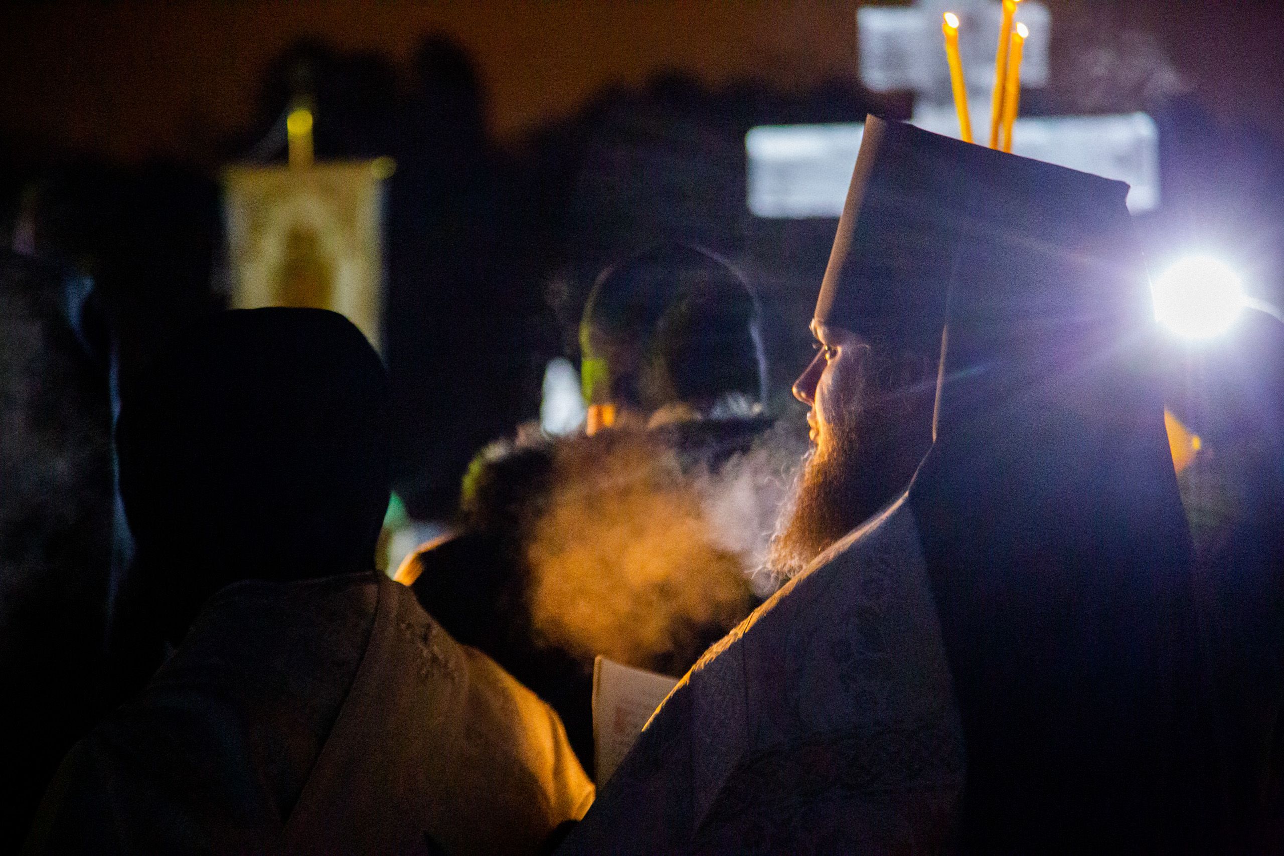 Затем духовенство и молящиеся во главе с архипастырем при пении праздничных стихир проследовали крестным ходом к Иордани на Раифское озеро.