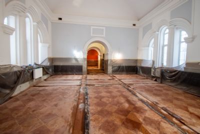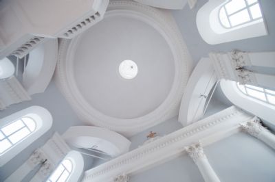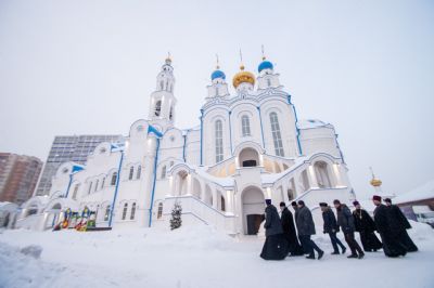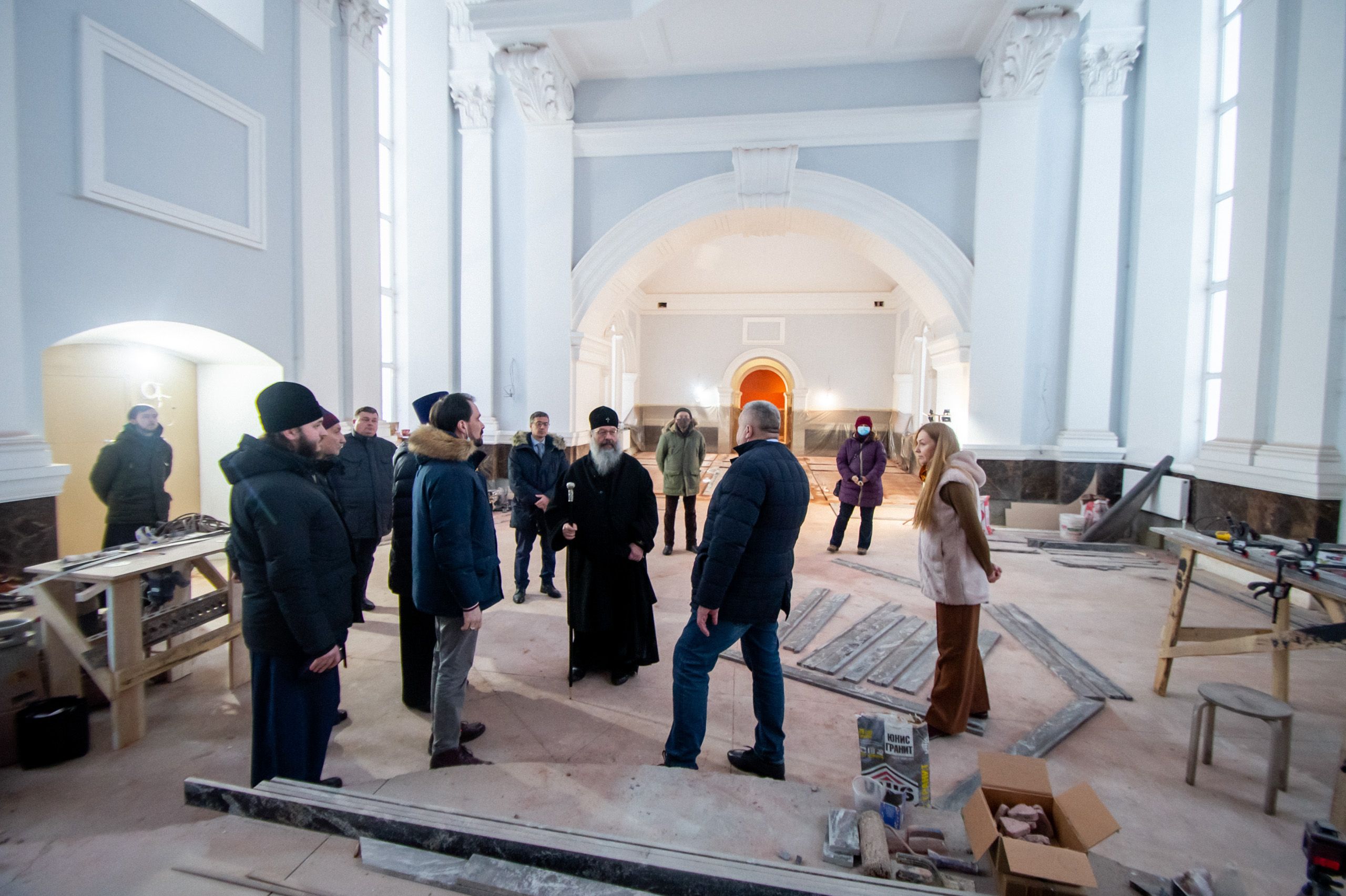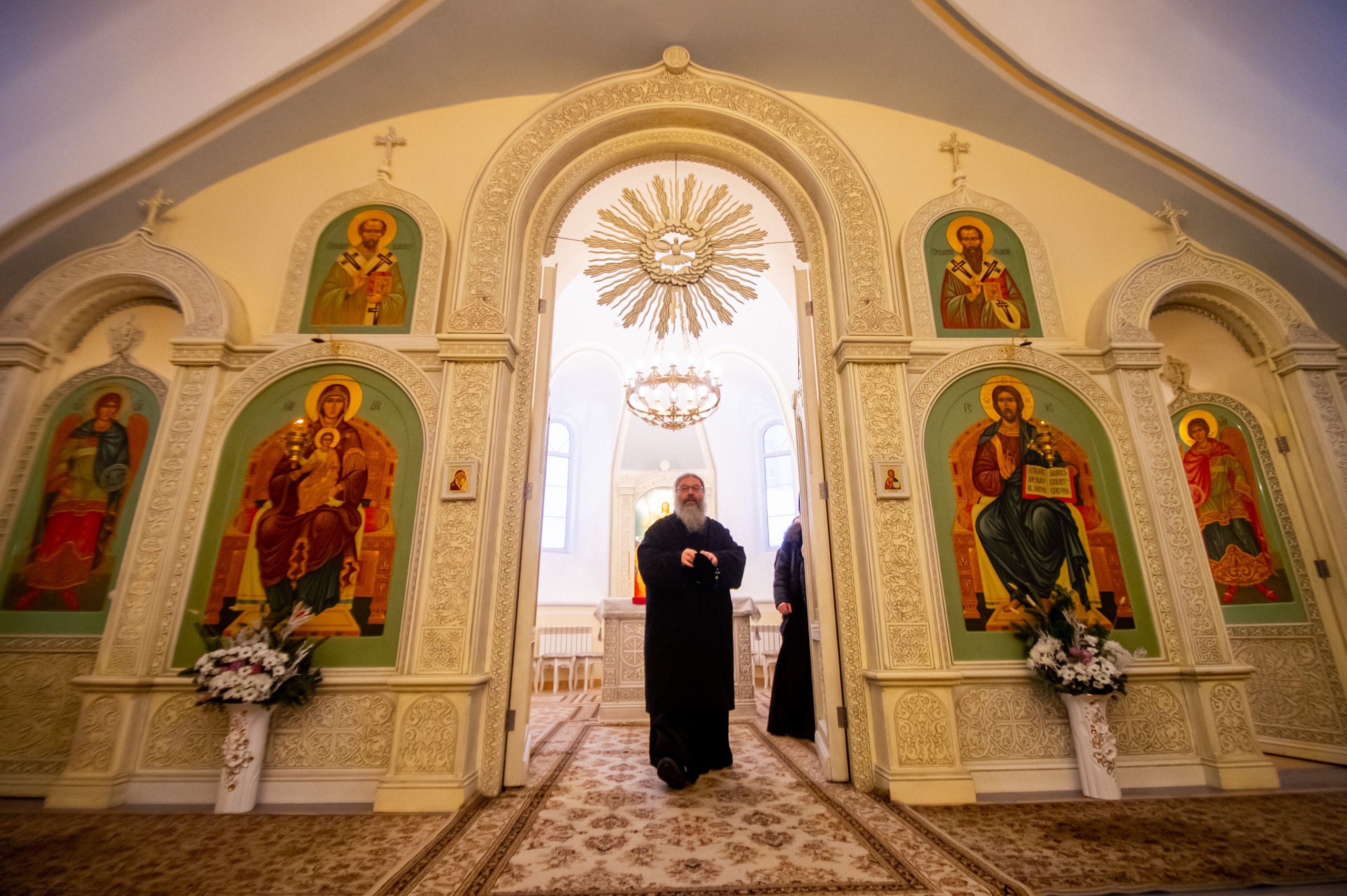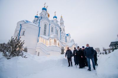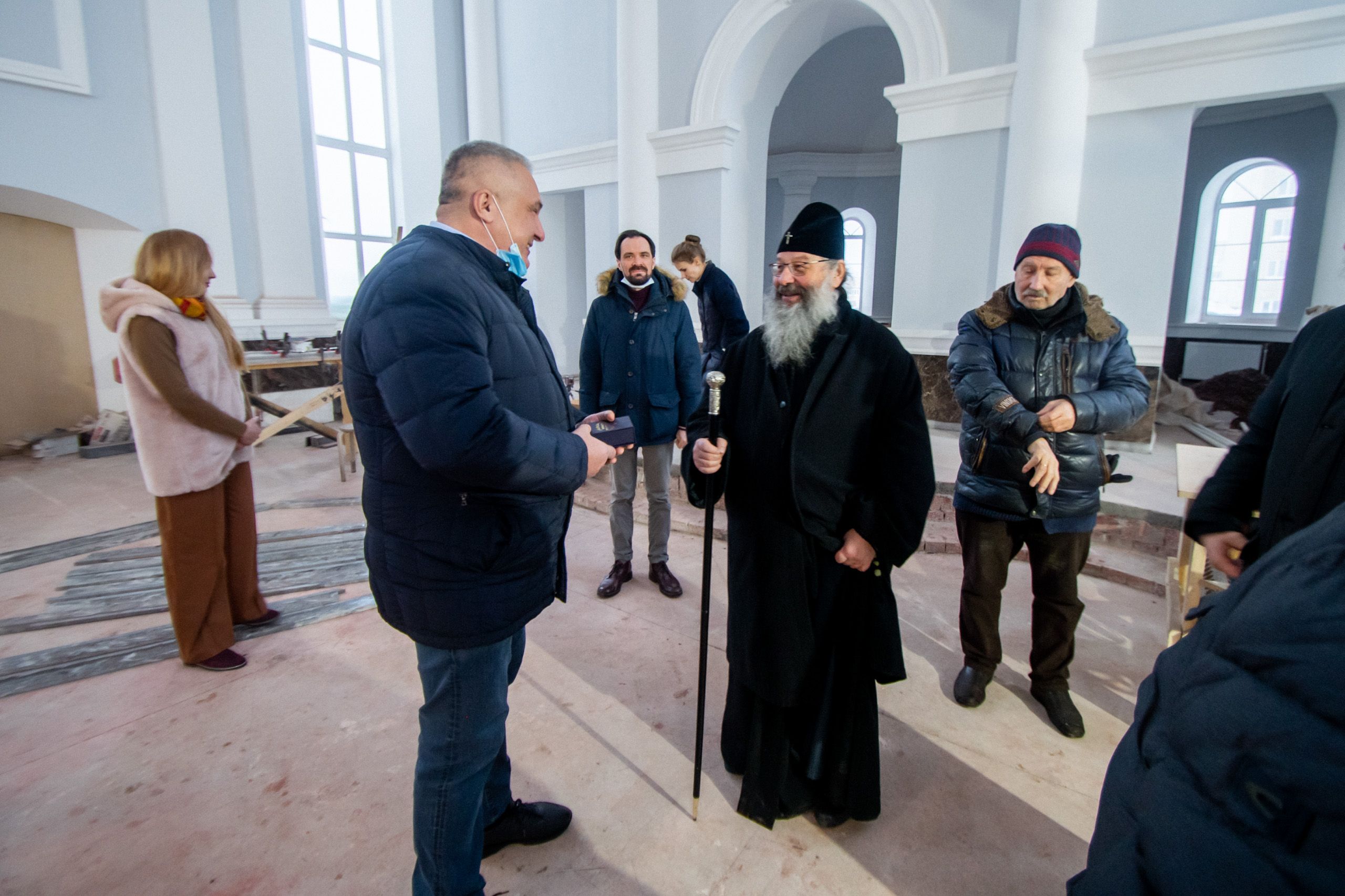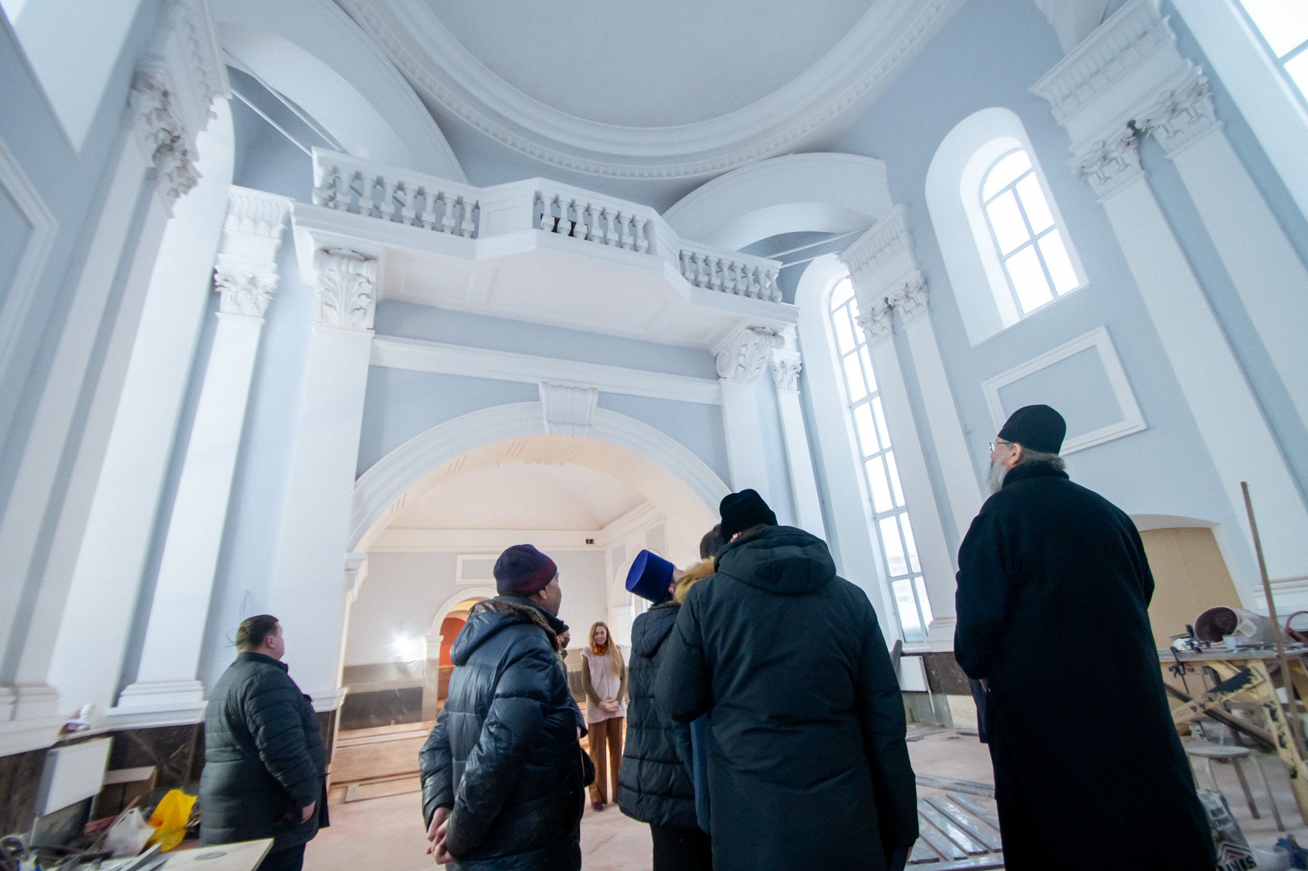 Далее правящий архиерей посетил нижний храм в честь преподобного Сергия Радонежского, где в настоящее время совершаются регулярные богослужения. Также он осмотрел строящийся дом причта, где будут находиться административно-хозяйственные помещения и учебные классы воскресной школы. Площадь возведённого здания составляет 480 квадратных метров.