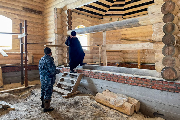 Храм заложили в августе минувшего года. Он представляет собой сруб с металлочерепичной кровлей, окрашенной в цвет медной патины. В настоящее время строители занимаются отделкой.