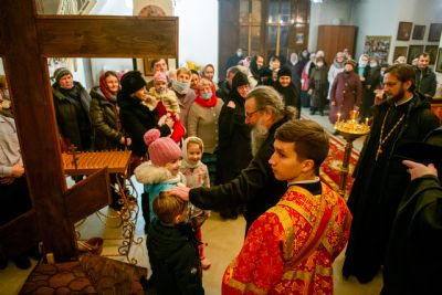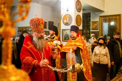 Его Высокопреосвященству сослужили настоятель храма протоиерей Андрей Лосык, ректор Екатеринбургской духовной семинарии иеромонах Корнилий (Зайцев), иеромонах Алексий (Яцейко), клирик прихода иерей Марк Александров.