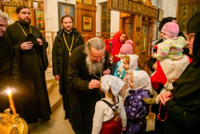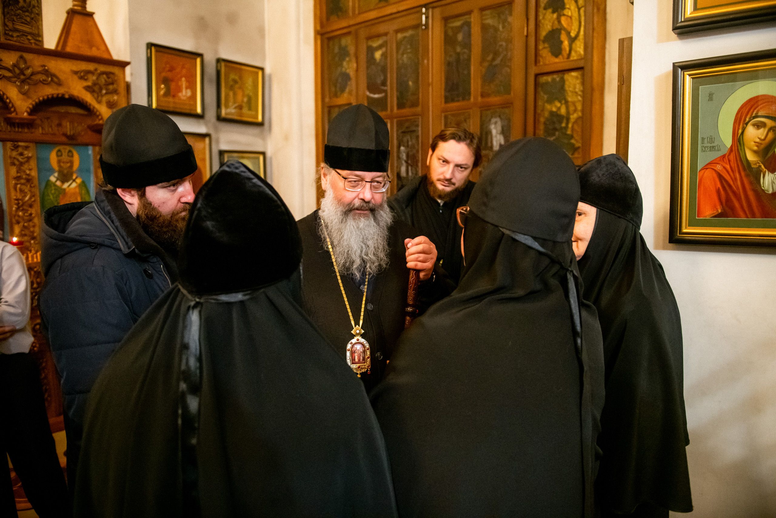 По окончании вечернего богослужения правящий архиерей осмотрел здания на территории прихода. Отец настоятель рассказал Его Высокопреосвященству о деятельности приходской воскресной школы и проектах возглавляемого им епархиального отдела религиозного образования.