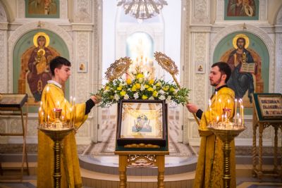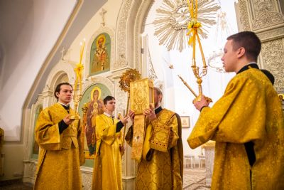 После богослужения владыка Кирилл поздравил духовенство и мирян с навечерием воскресного дня и поблагодарил за совместную молитву.