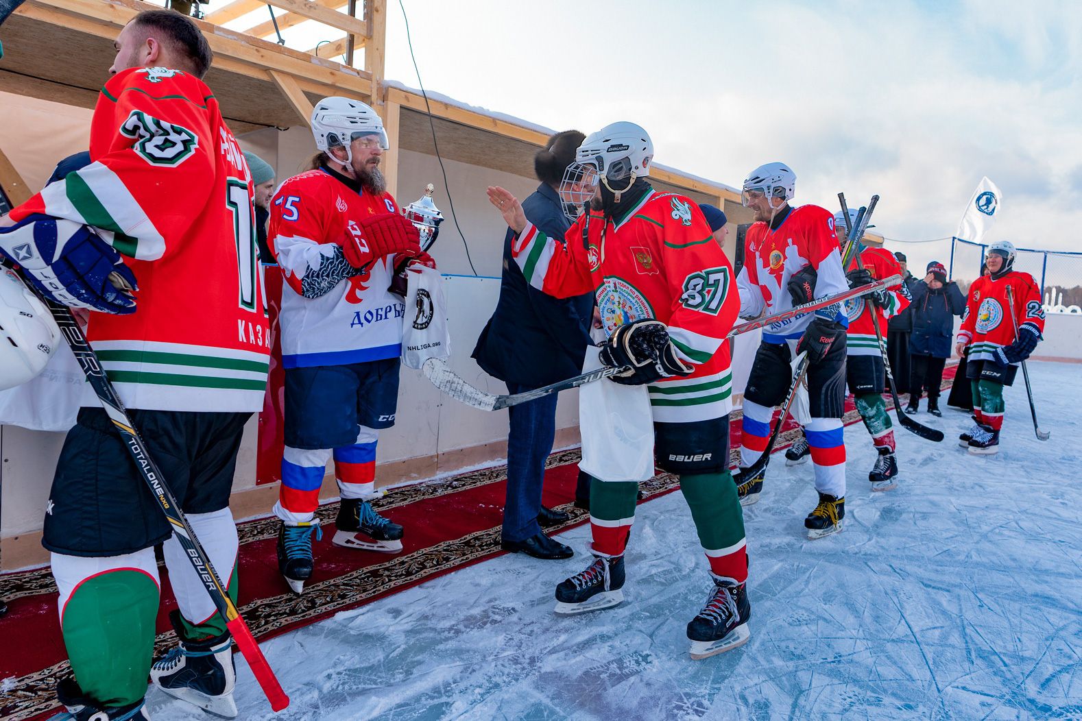 Матч состоялся после воскресной Литургии в Раифской обители, которую возглавил ее наместник игумен Гавриил (Рожнов). После службы игумен Гавриил, протоиерей Алексий Чубаков, иерей Сергий Подопрелов и иерей Валерий Кучин вышли на лед в свитерах команды «Дружба — Дуслык».