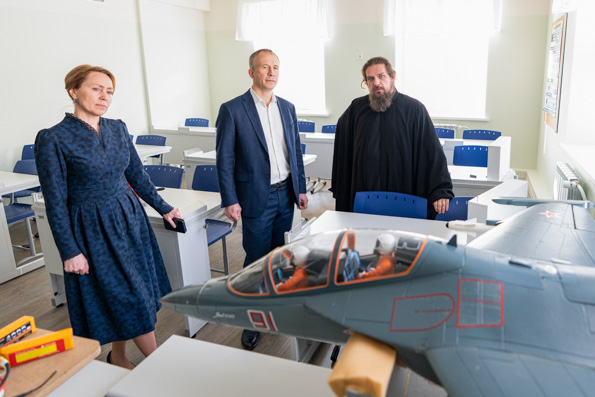 В сопровождении настоятеля Духосошественского прихода, благочинного I Казанского округа Алексия Чубакова Сергей Соловейчик осмотрел помещения гимназии и посетил храм.