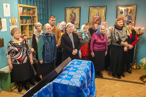 После службы духовенством было совершено славление Божией Матери. Затем иерей Алексий Тимофеев поздравил прихожан с престольным праздником, а причастников — с принятием Тела и Крови Христовых.