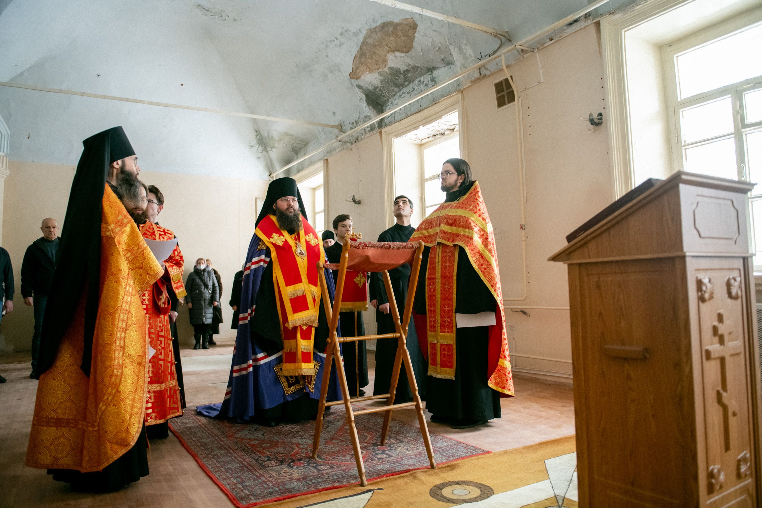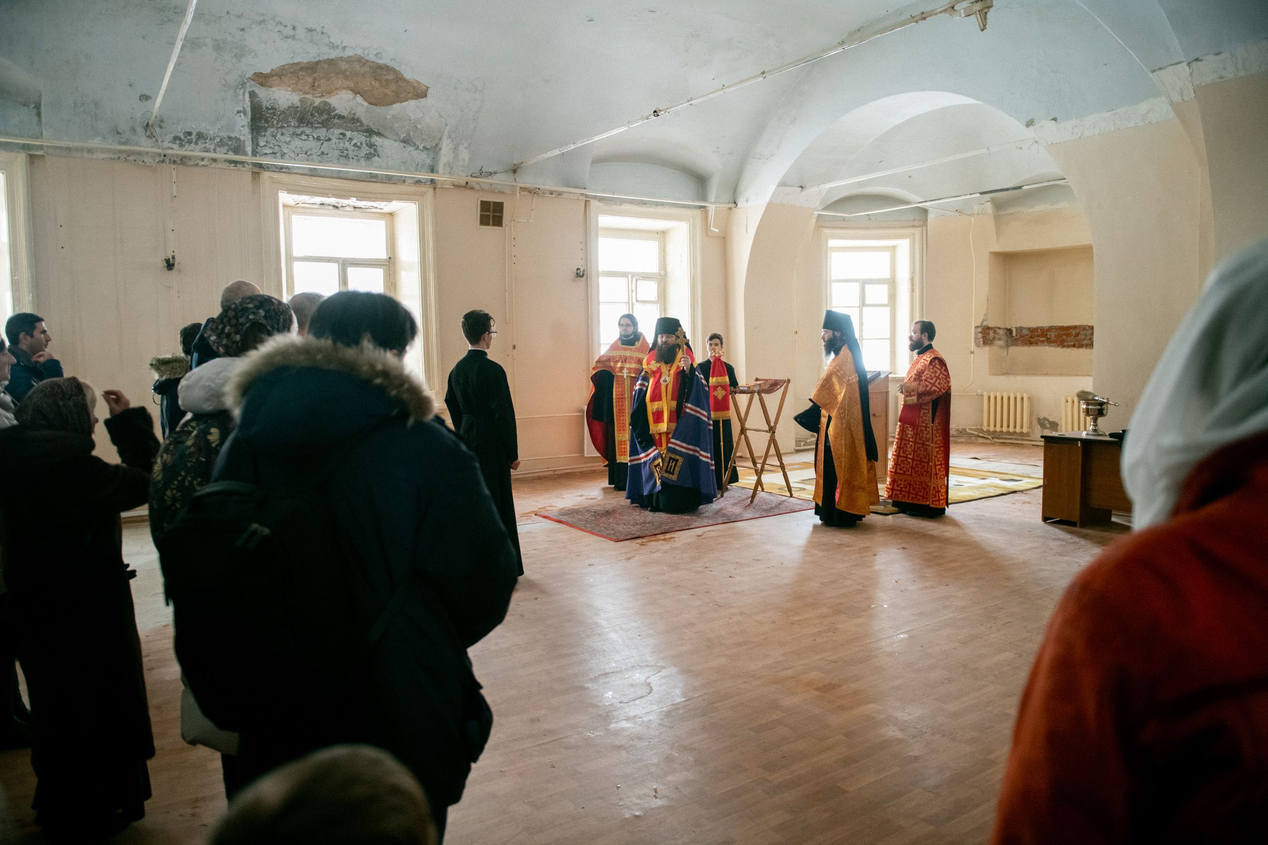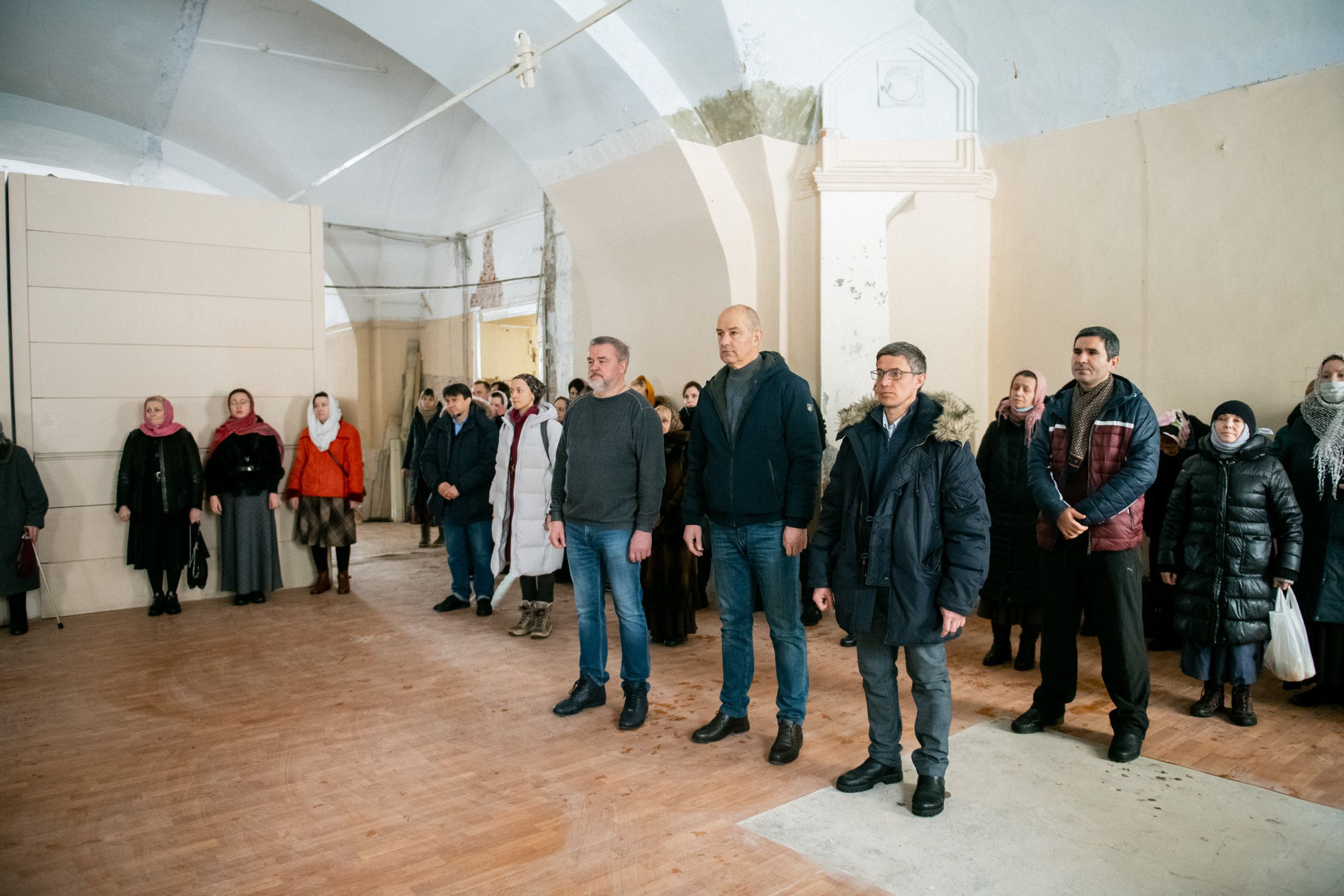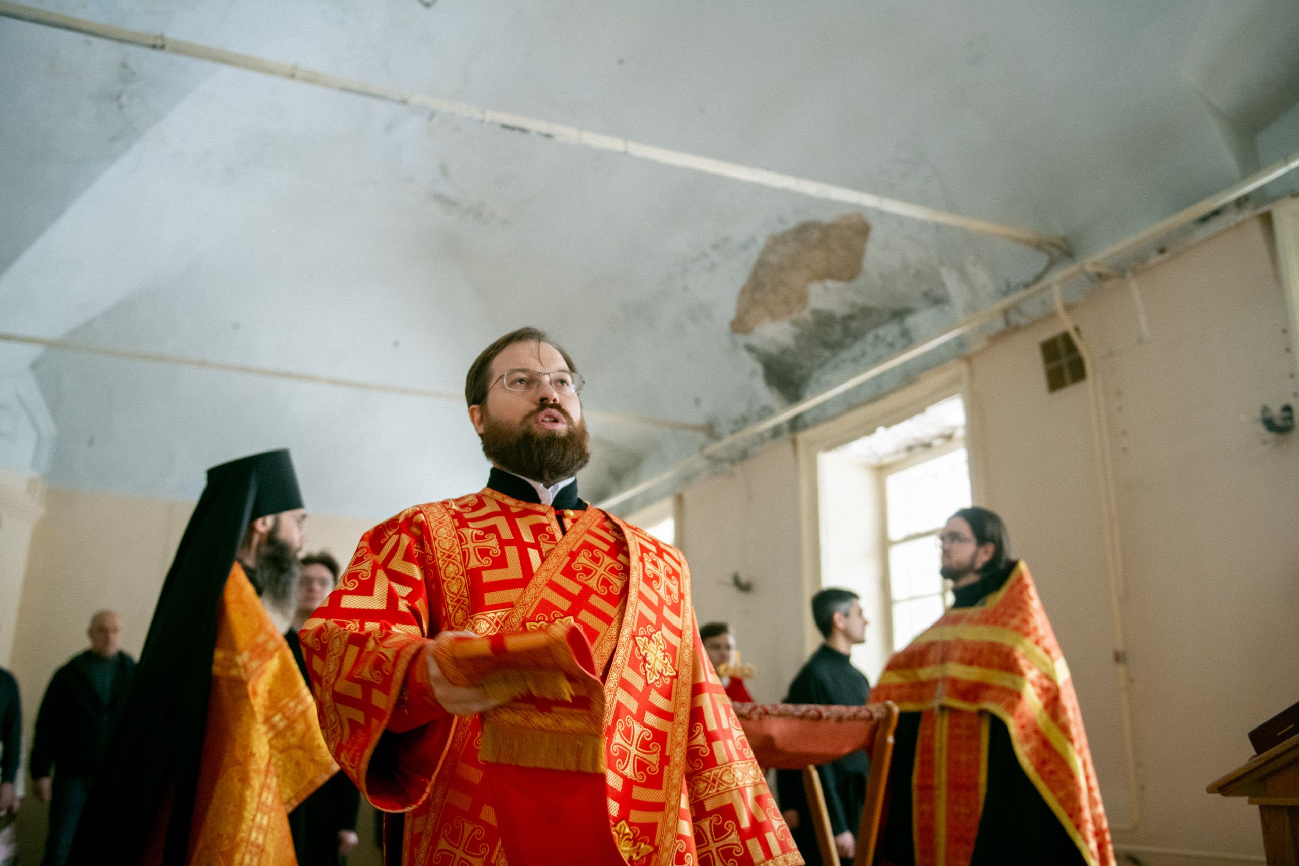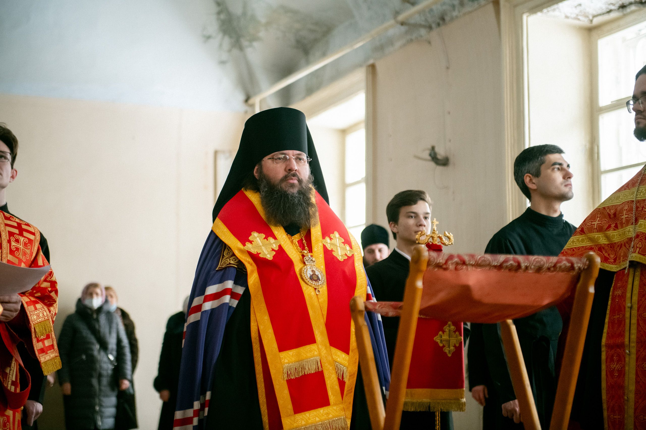Его Преосвященству сослужили благочинный монастырей Казанской епархии, настоятель Введенского Кизического мужского монастыря игумен Пимен (Ивентьев) и проректор по аккредитации и лицензированию Казанской духовной семинарии иерей Никита Кузнецов. Среди молившихся за богослужением были секретарь Татарстанской митрополии иеромонах Кирилл (Корытко), иеромонах Алексий (Яцейко), попечители и строители храма. Песнопения исполнил хор Казанской духовной семинарии под управлением Ксении Савочкиной.