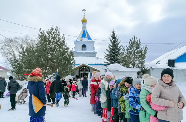 Участники праздника играли в русско-народные игры, о которых им рассказали старожилы села; перетягивали канат; штурмовали снежную крепость. Для детей было организовано катание на санях. Гости водили хороводы, пили чай из самовара, дегустировали блины и пироги, которые испекли прихожане Троицкого храма. Вместе с прихожанами Масленицу отмечали участники фольклорного ансамбля «Загудница», творческие коллективы сельского дома культуры, учащиеся сельской школы, сельчане, добровольцы из Казани и детсадовцы с родителями.