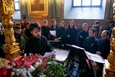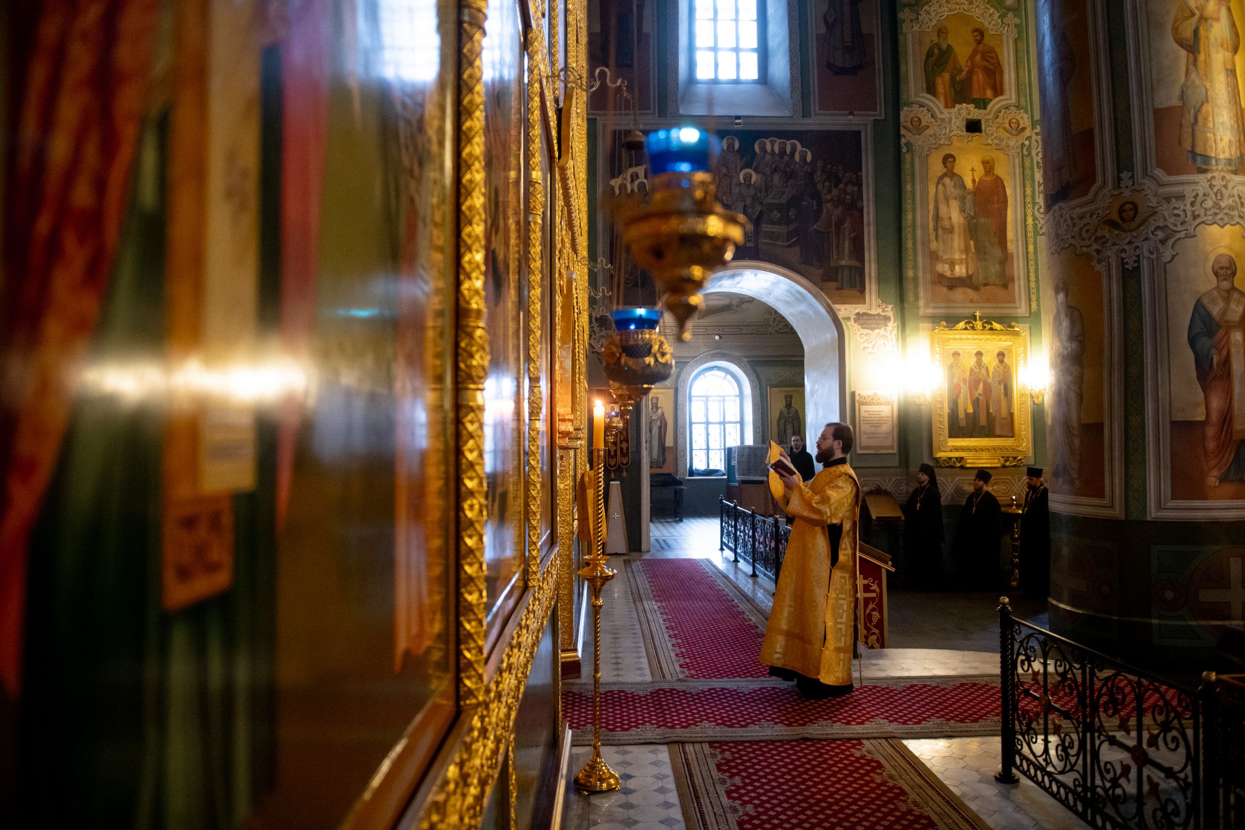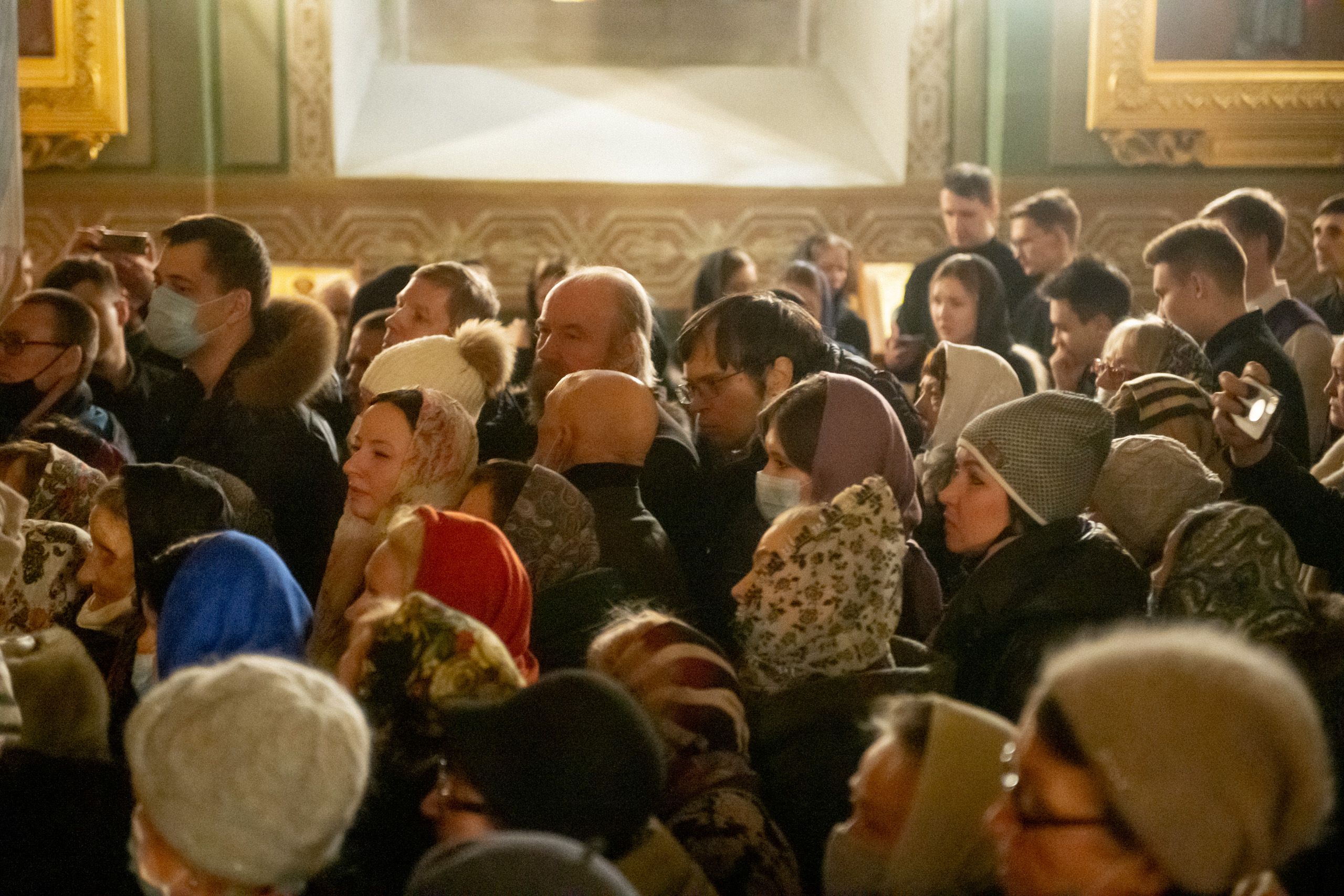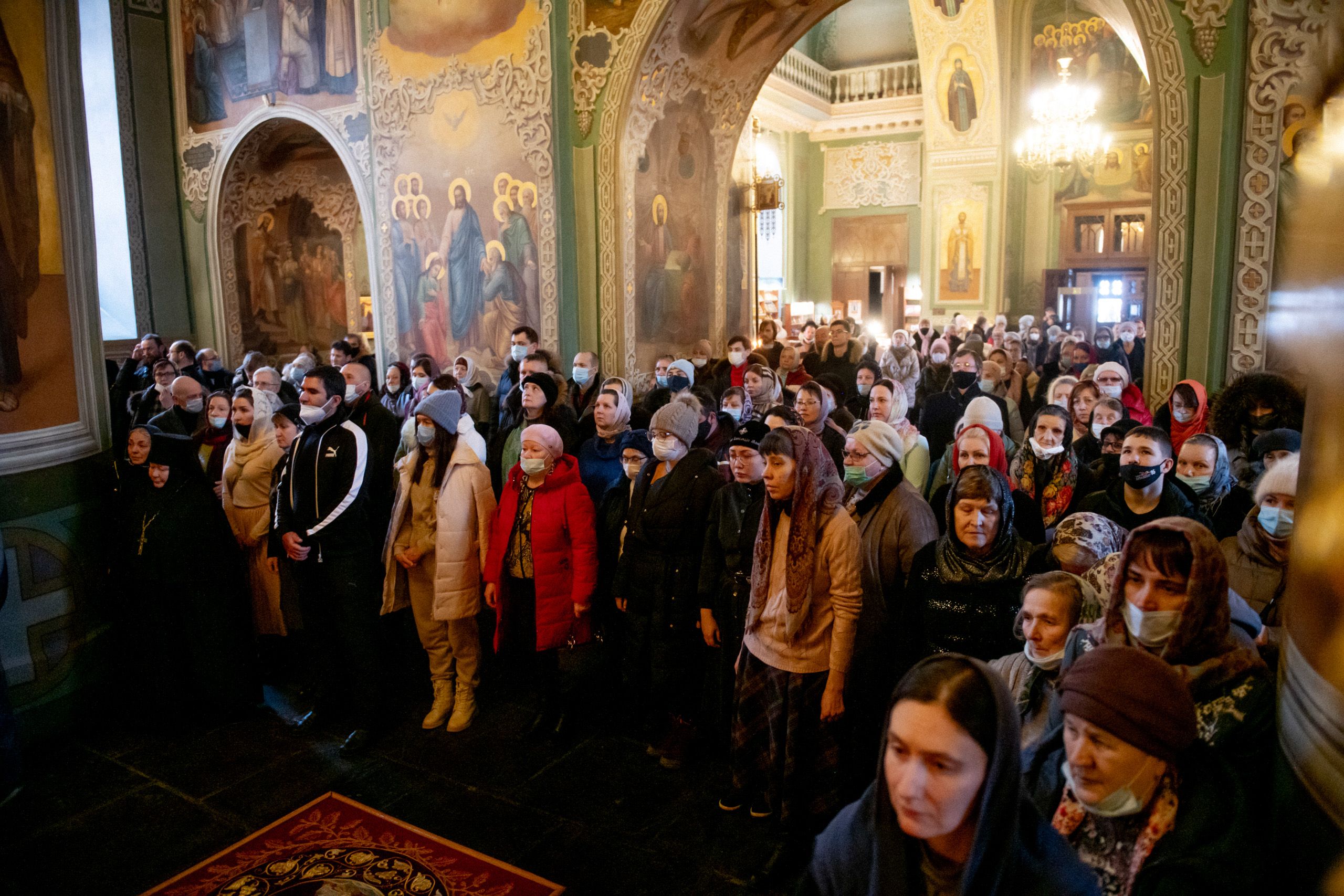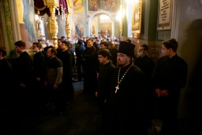 За богослужением молились наместники монастырей и благочинные округов Казанской епархии, настоятели храмов и духовенство Казани, монашествующие. Богослужебные песнопения исполнил архиерейский мужской хор под управлением Дениса Рогова и смешанный студенческий хор Казанской духовной семинарии под управлением Ксении Савочкиной и Полины Минеевой.