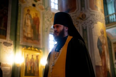 Его Высокопреосвященству сослужили секретарь Татарстанской митрополии иеромонах Кирилл (Корытко) и ключарь Благовещенского собора иерей Виктор Бельских.