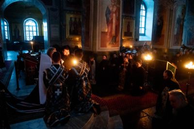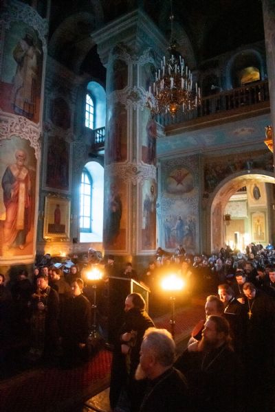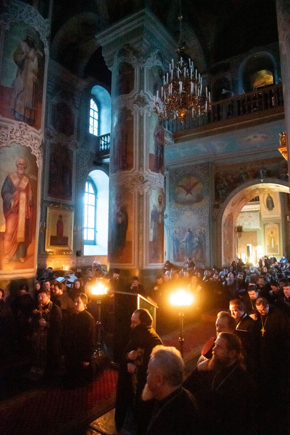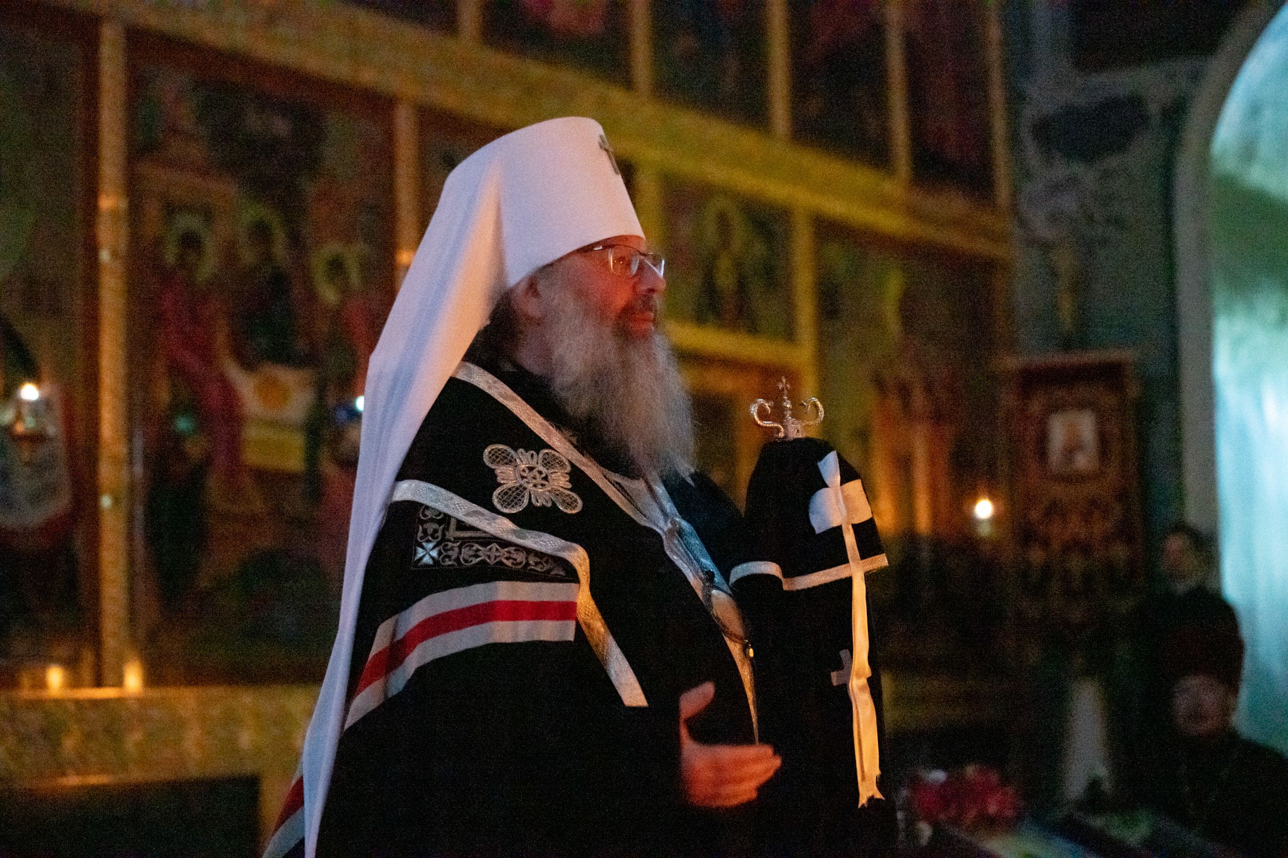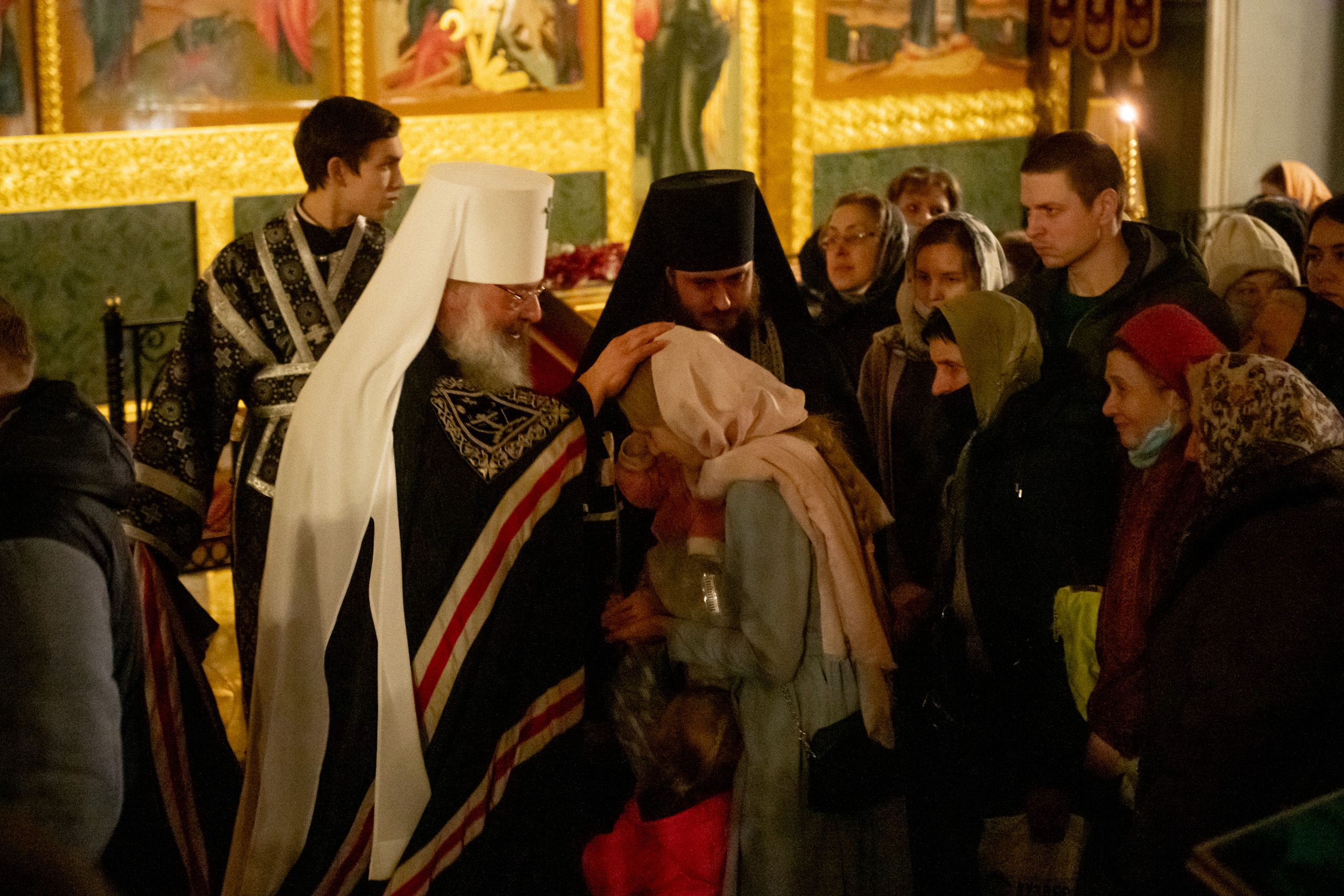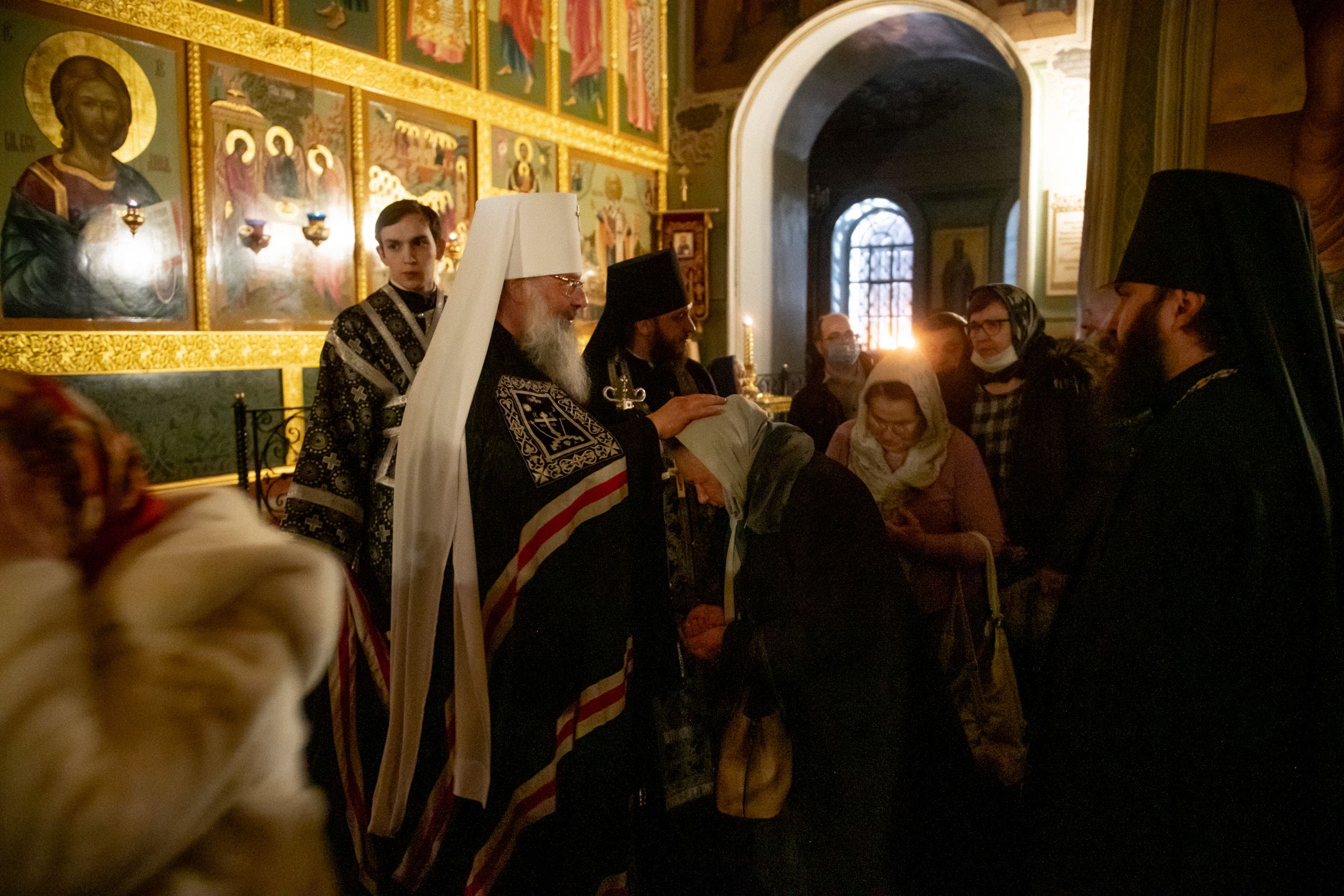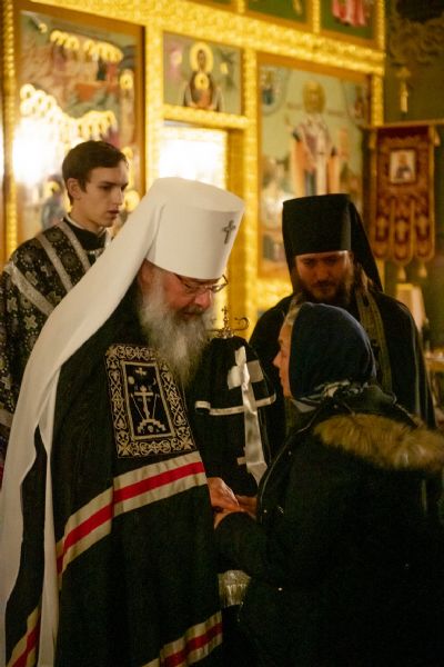 После великого прокимна «Не отврати лица Твоего...» служащее духовенство переоблачилось в чёрные ризы. В конце вечерни архипастырь прочитал молитвы, испросив у Господа благословения на начало Великого поста. Далее правящий архиерей обратился к духовенству и мирянам со словом: