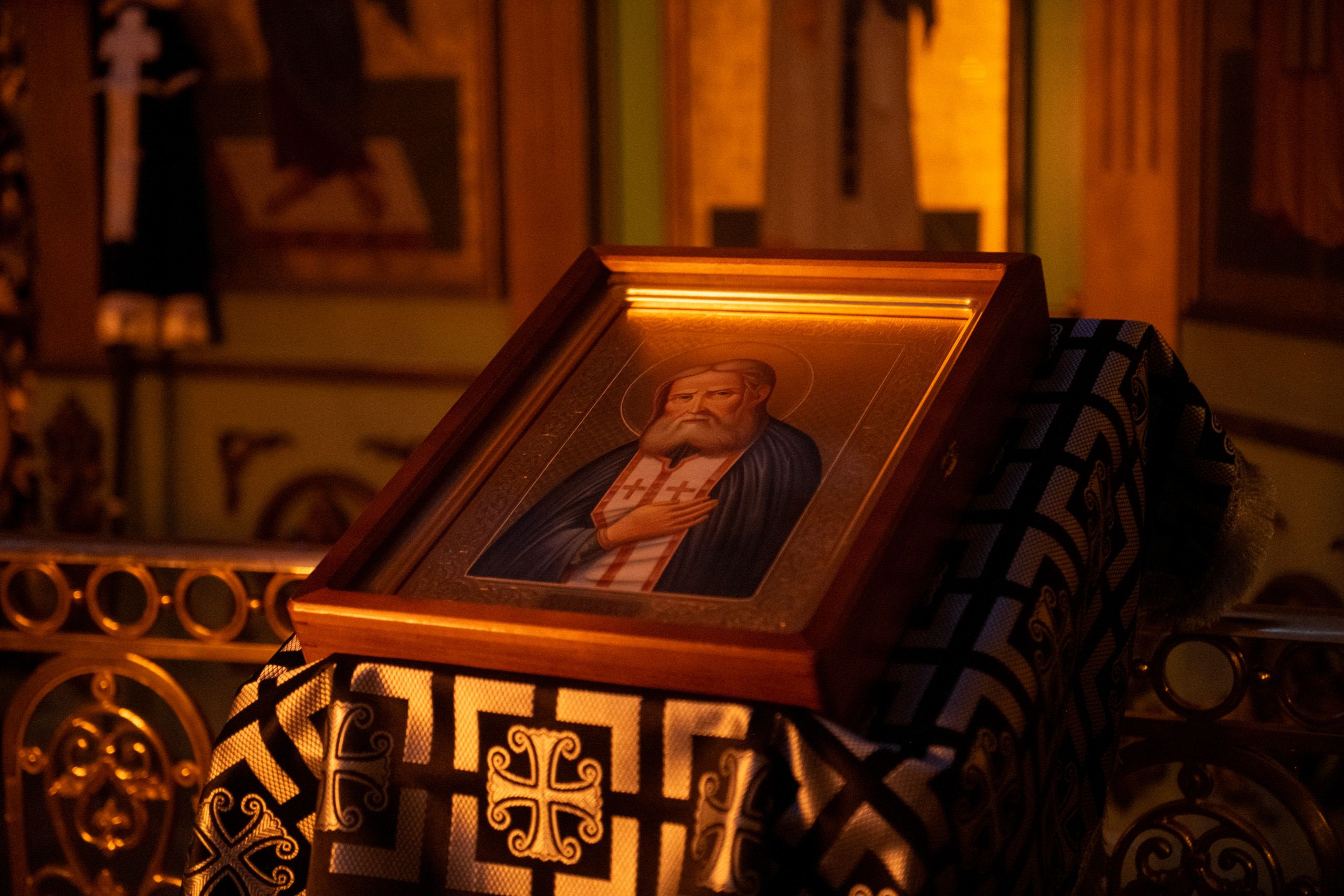 За богослужением молились клирики и прихожане Серафимовской церкви. Песнопения исполнил приходской смешанный хор под управлением Елены Васильевой.