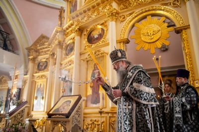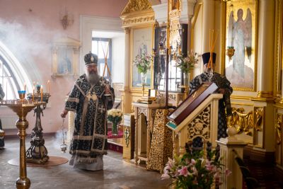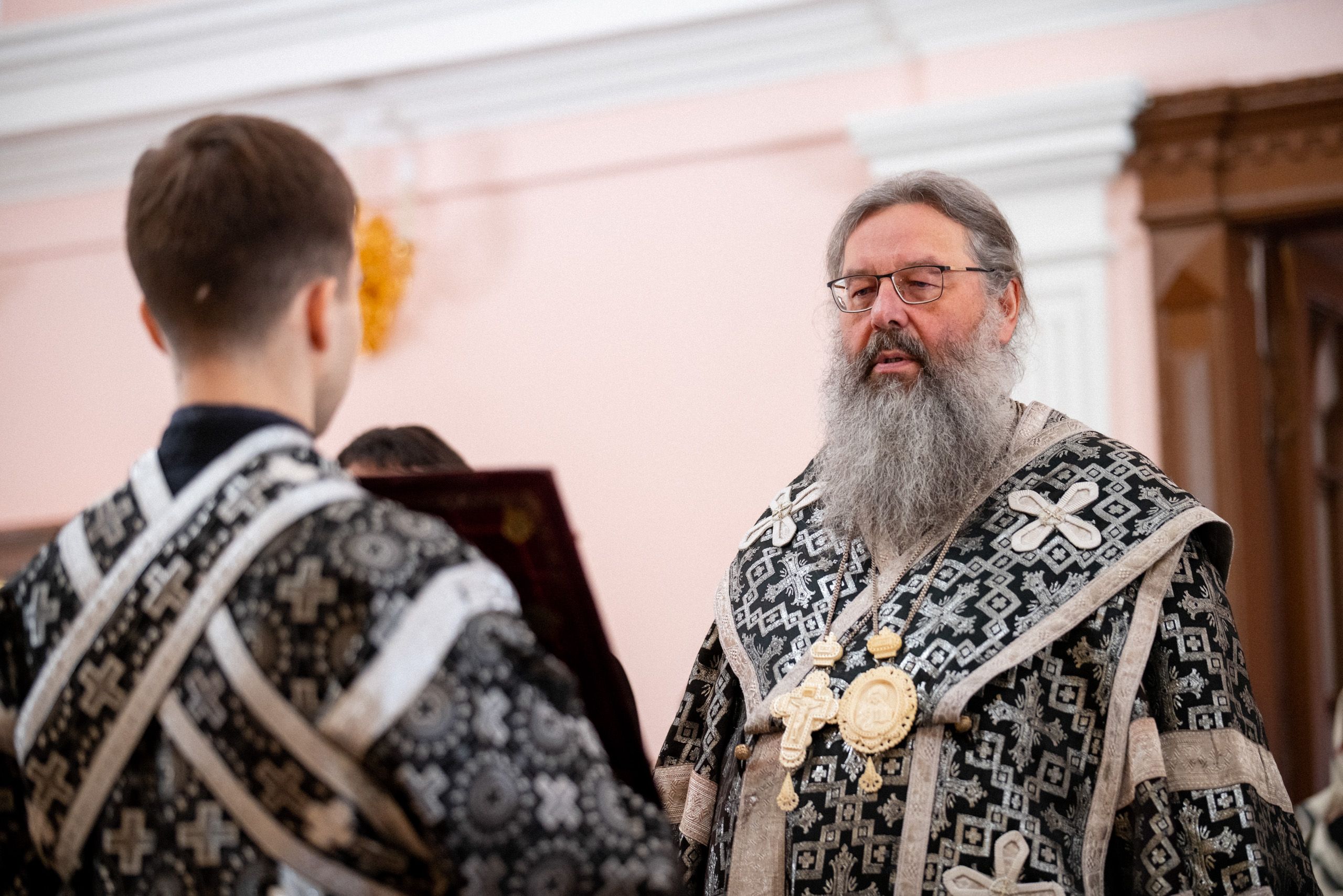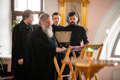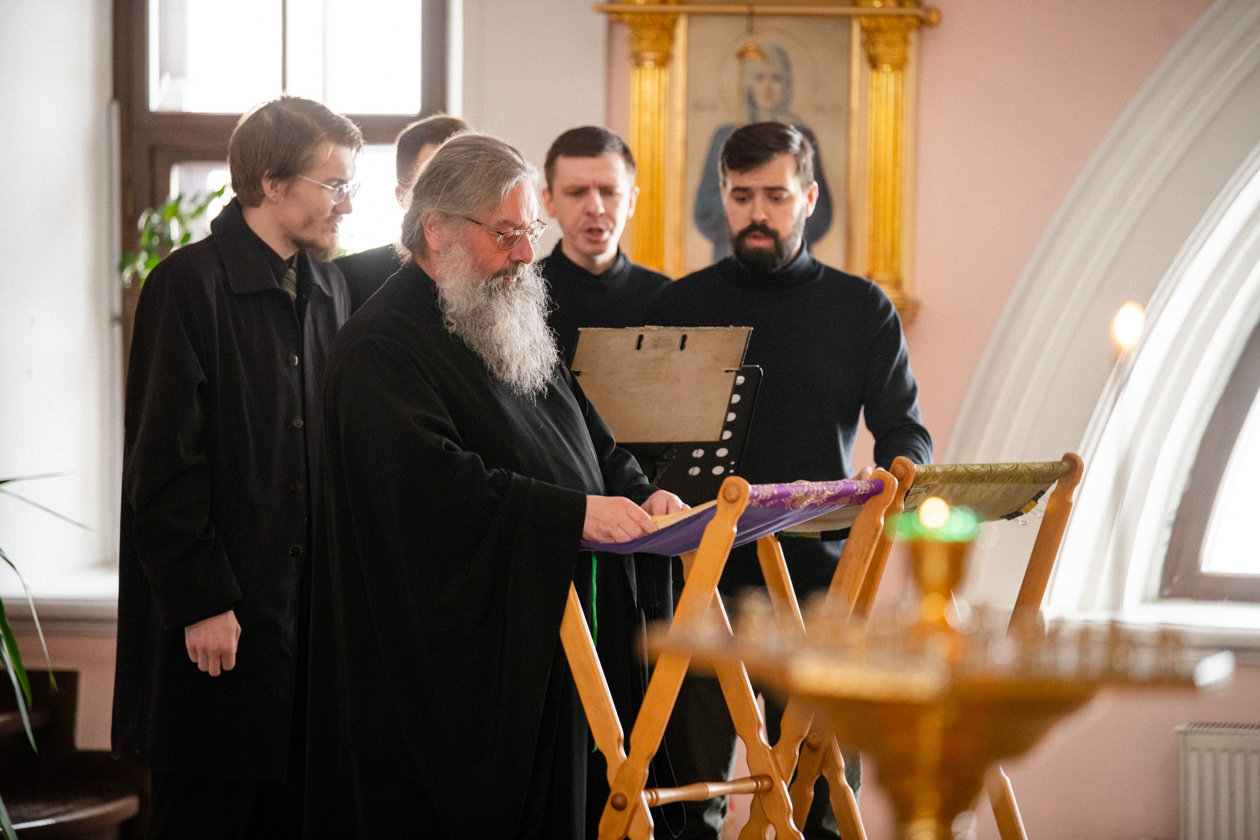 Перед Литургией правящий архиерей молился за утреней, часами и изобразительными. Его Высокопреосвященству сослужили наместник игумен Марк (Виленский) с братией обители. Богослужебные песнопения исполнил архиерейский мужской хор под управлением Дениса Рогова. Проповедь после запричастного стиха произнёс иеромонах Гурий (Рассыпнинский).