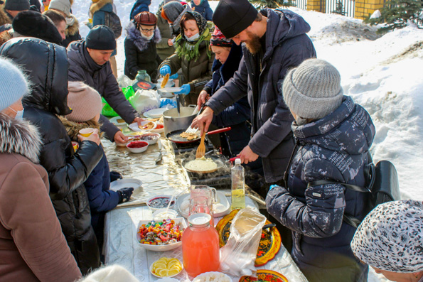 Утром на территории архиерейского подворья была развернута походная кухня. Гости праздника могли не только отведать горячих блинов, но и самостоятельно их испечь. Для детей было организовано катание на пони. В организации праздника приняли участие клирики храма, прихожане, учащиеся и преподаватели воскресной школы «Апостол».
