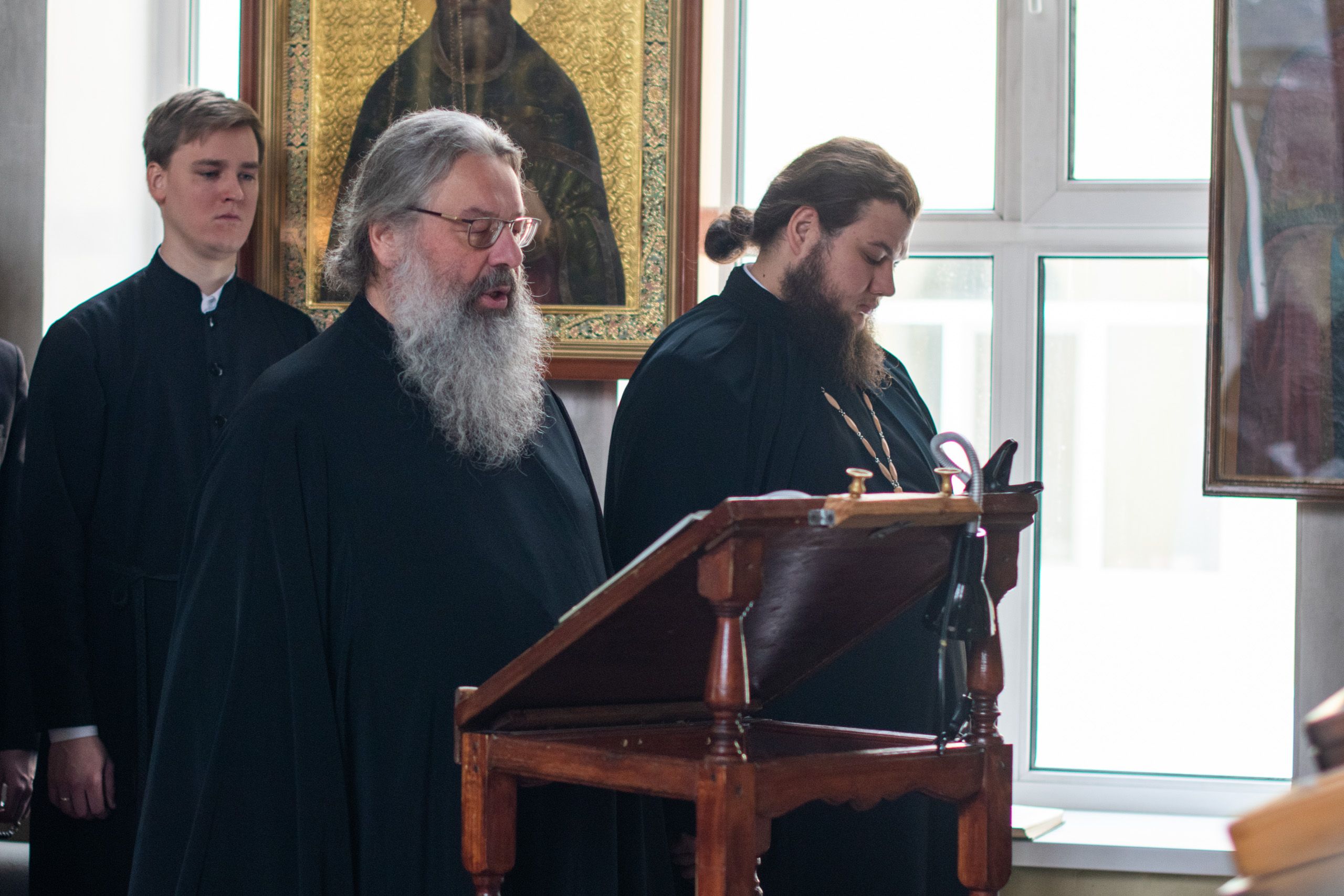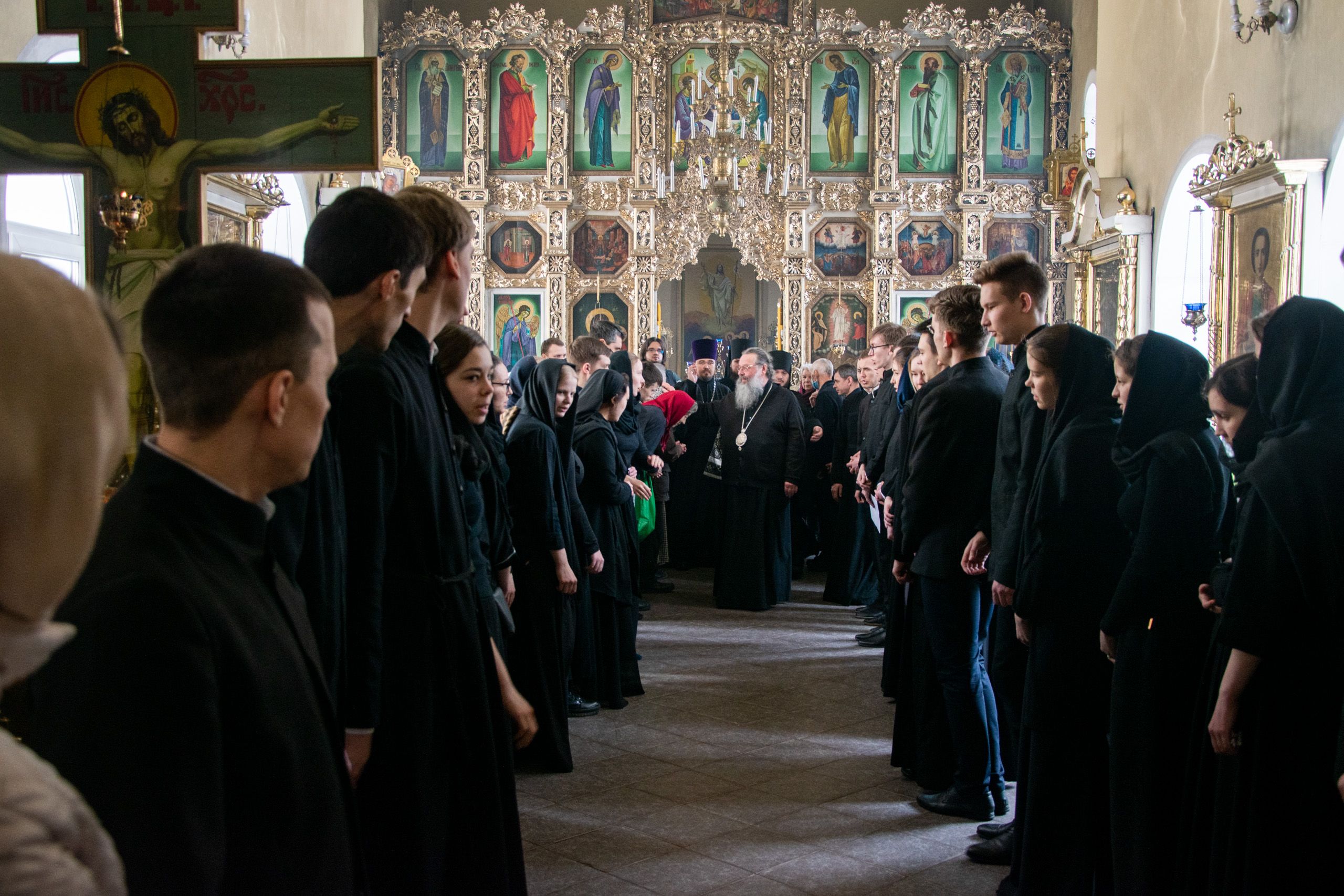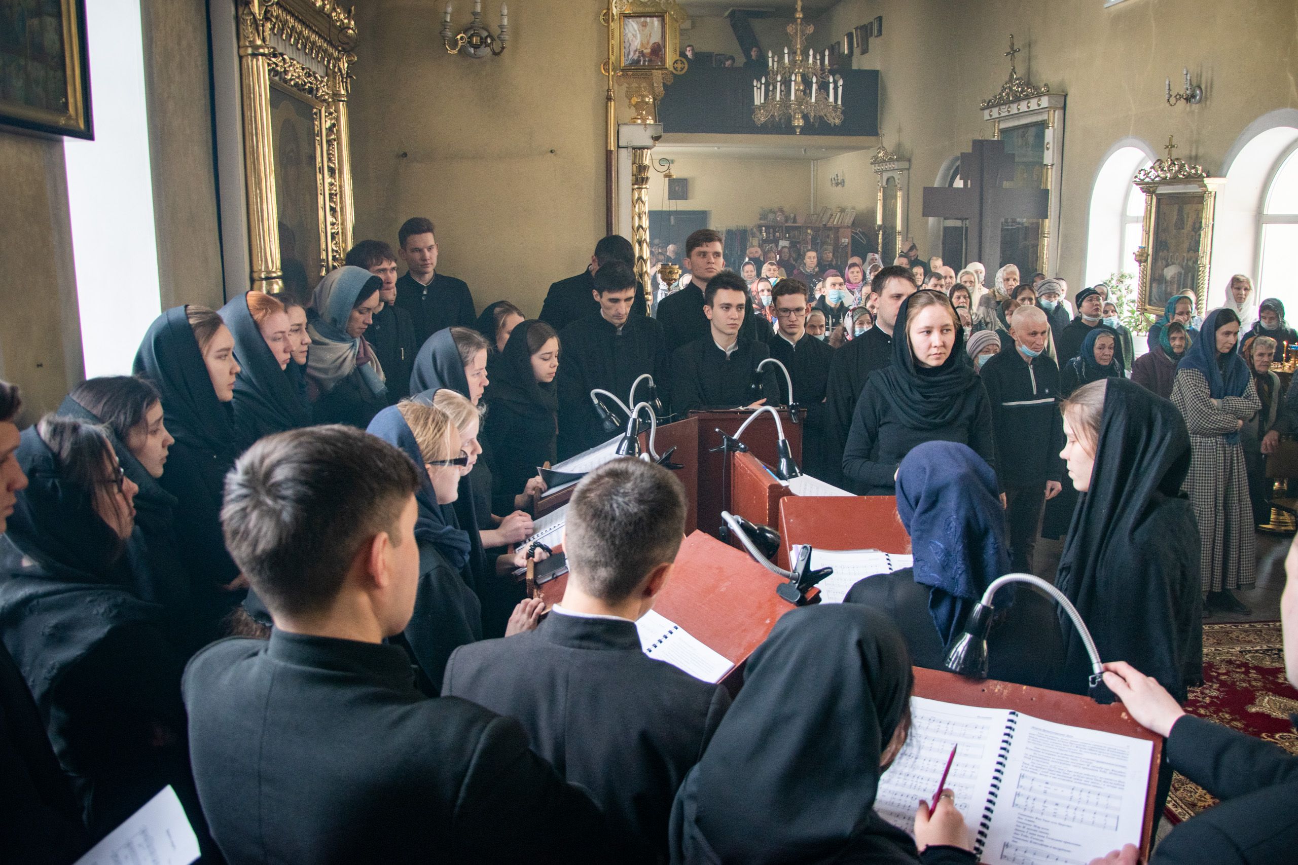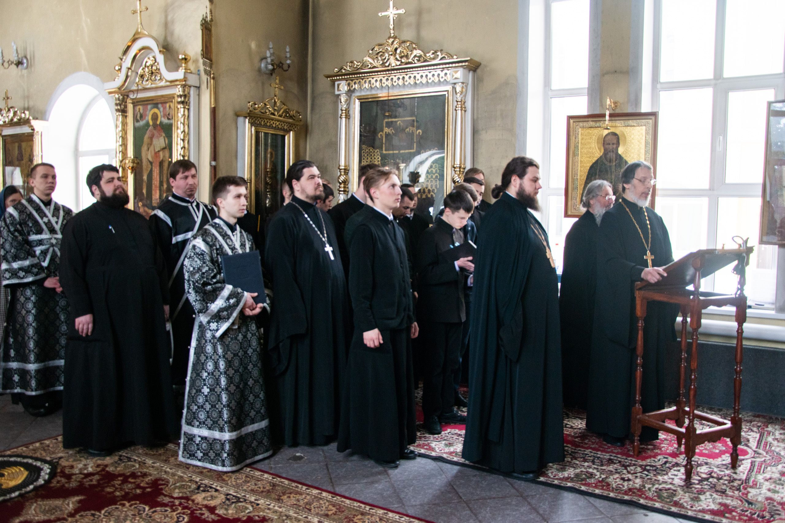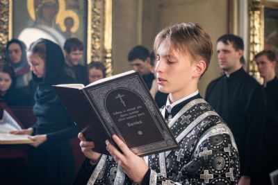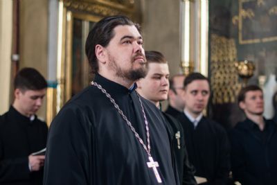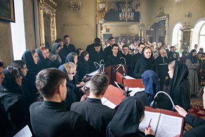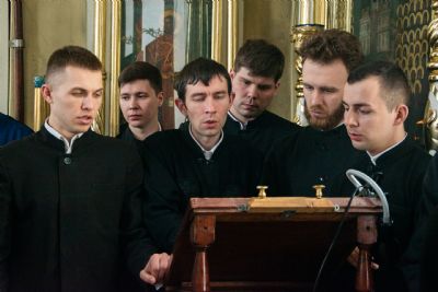 Песнопения исполнили студенческие хоры под управлением Полины Минеевой. Среди молившихся за богослужением были преподаватели и студенты духовной школы, прихожане семинарского храма.