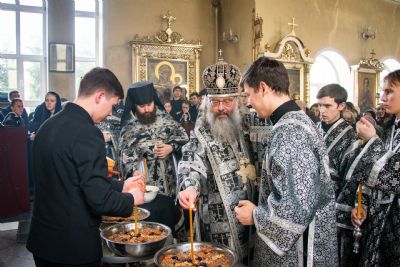 По окончании Литургии владыка Кирилл совершил молебное пение великомученику Феодору Тирону и чин благословения колива. Затем архипастырь обратился к верующим со словом: