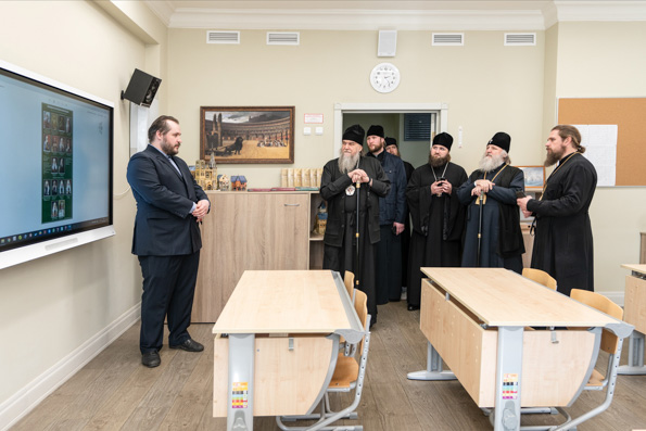 Протоиерей Алексий Чубаков провел для архипастырей ознакомительную экскурсию по гимназии и рассказал о программе «Русская классическая школа».