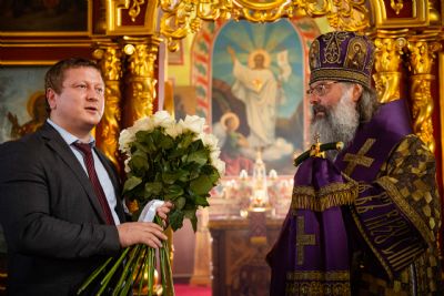 Затем Вадим Никитин преподнёс архипастырю букет цветов и от имени главы и жителей района поблагодарить Его Высокопреосвященство за архипастырский визит в Мамадыш. Владыка Кирилл в свою очередь поблагодарил руководство района за заботу о жителях и доброе сотрудничество с Церковью. От лица прихожан митрополита Кирилла приветствовал настоятель храма иерей Олег Малышев.