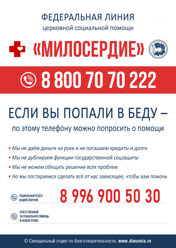 Проживающим за пределами епархии нужно позвонить по телефону 8 800 70 70 222.