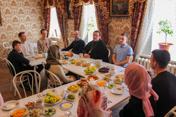 После экскурсии в трапезной храма состоялись обед и чаепитие. Зеленодольская молодежь познакомилась с настоятелем Петропавловского собора, руководителем миссионерского отдела Казанской епархии протоиереем Сергием Титовым. Священник рассказал ребятам о деятельности отдела, отметив, что молодежь играет важную роль в реализации миссии Церкви. Отец Сергий ответил на их вопросы и призвал их соблюдать заповеди Христовы.